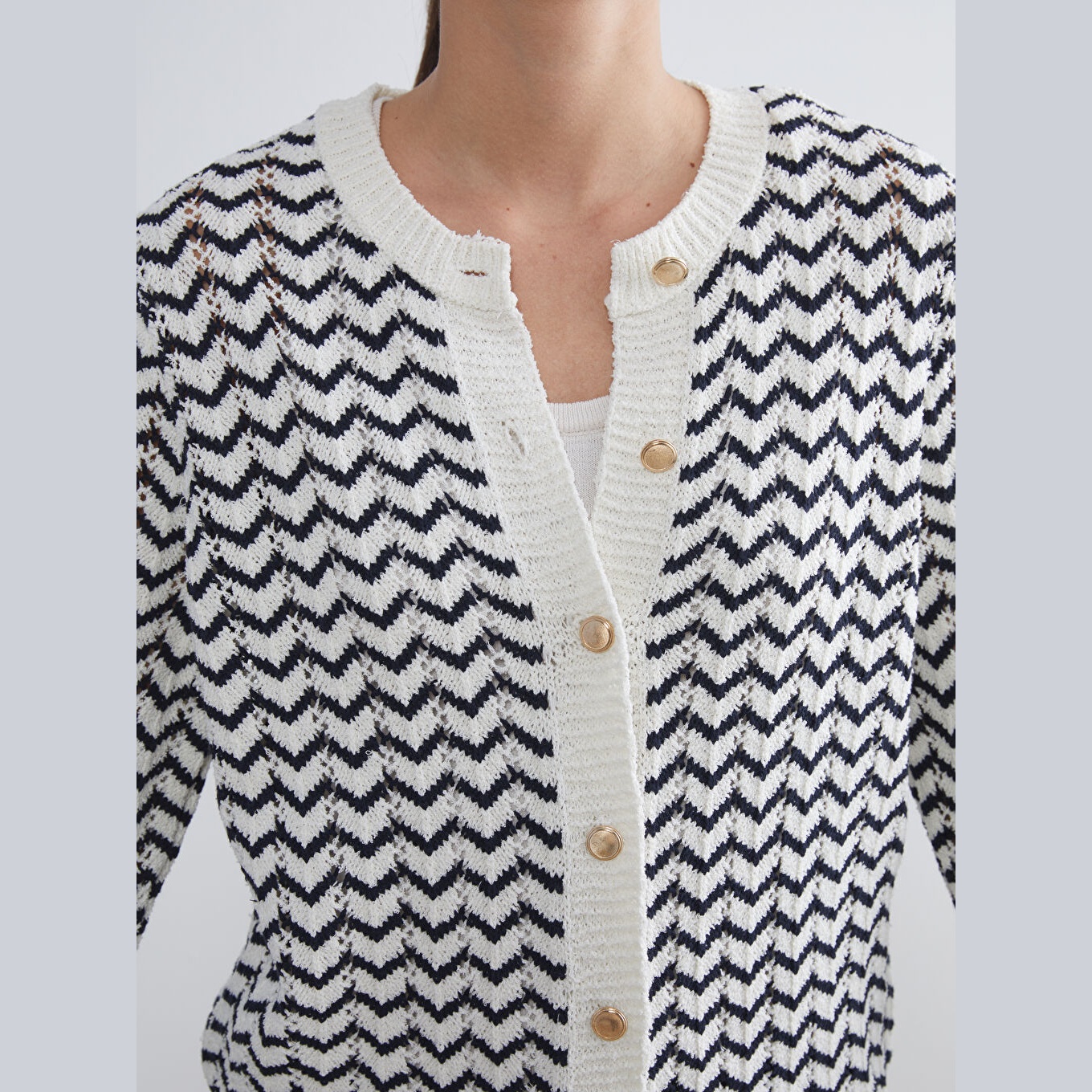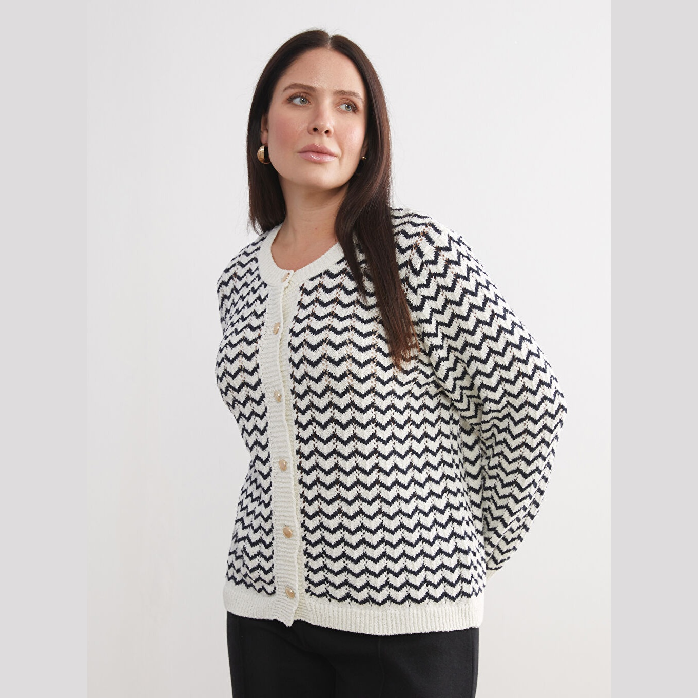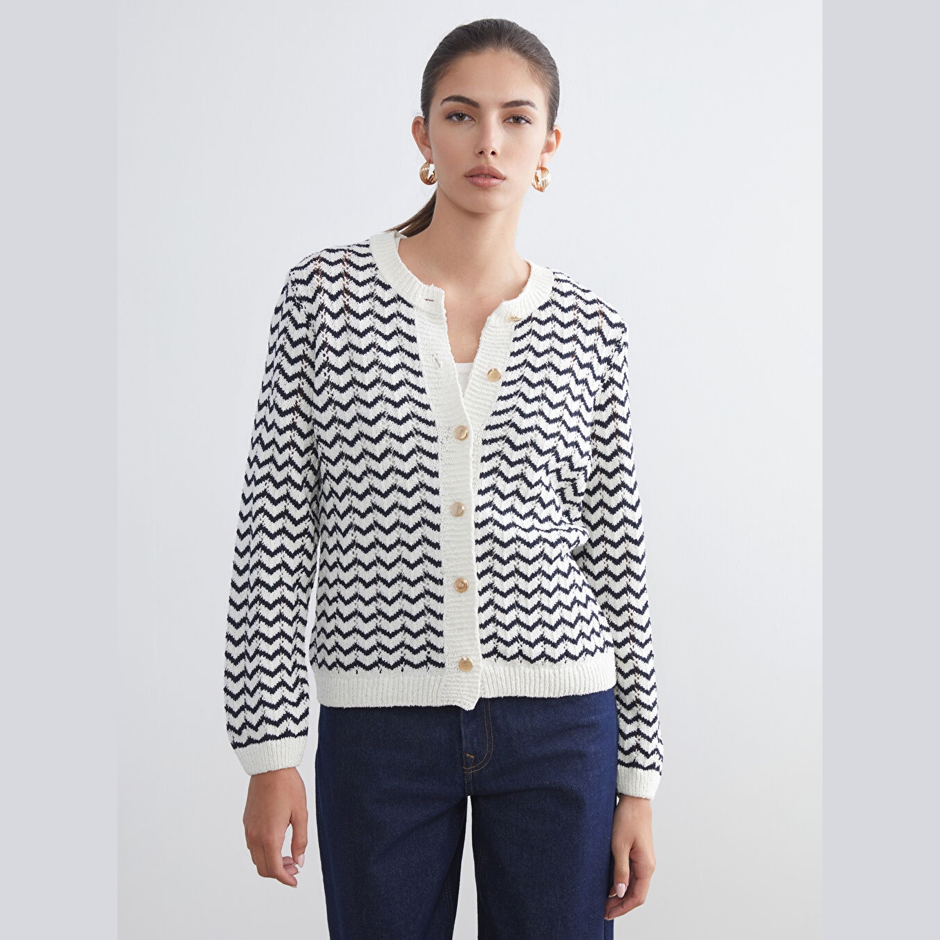 كارديغان نسائي Ajurlu بياقة دائرية من LCWAIKIKI Classic – إكرو (قصة ضيقة، تصميم مخرم بخطوط، خامة تريكو متوسطة السماكة)