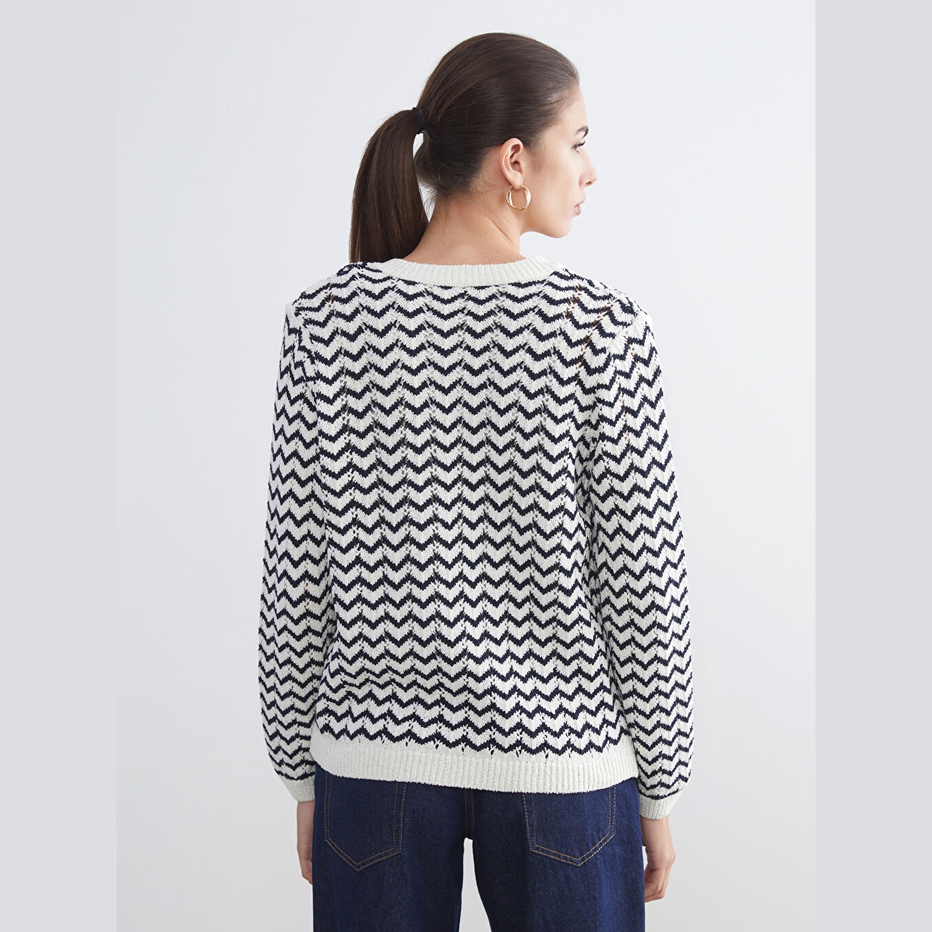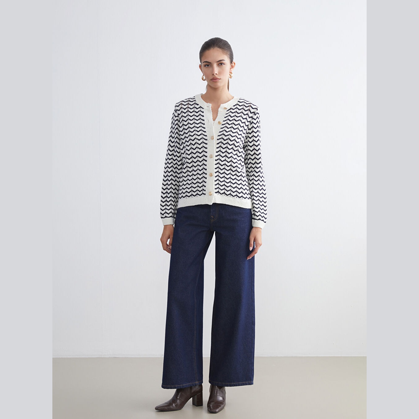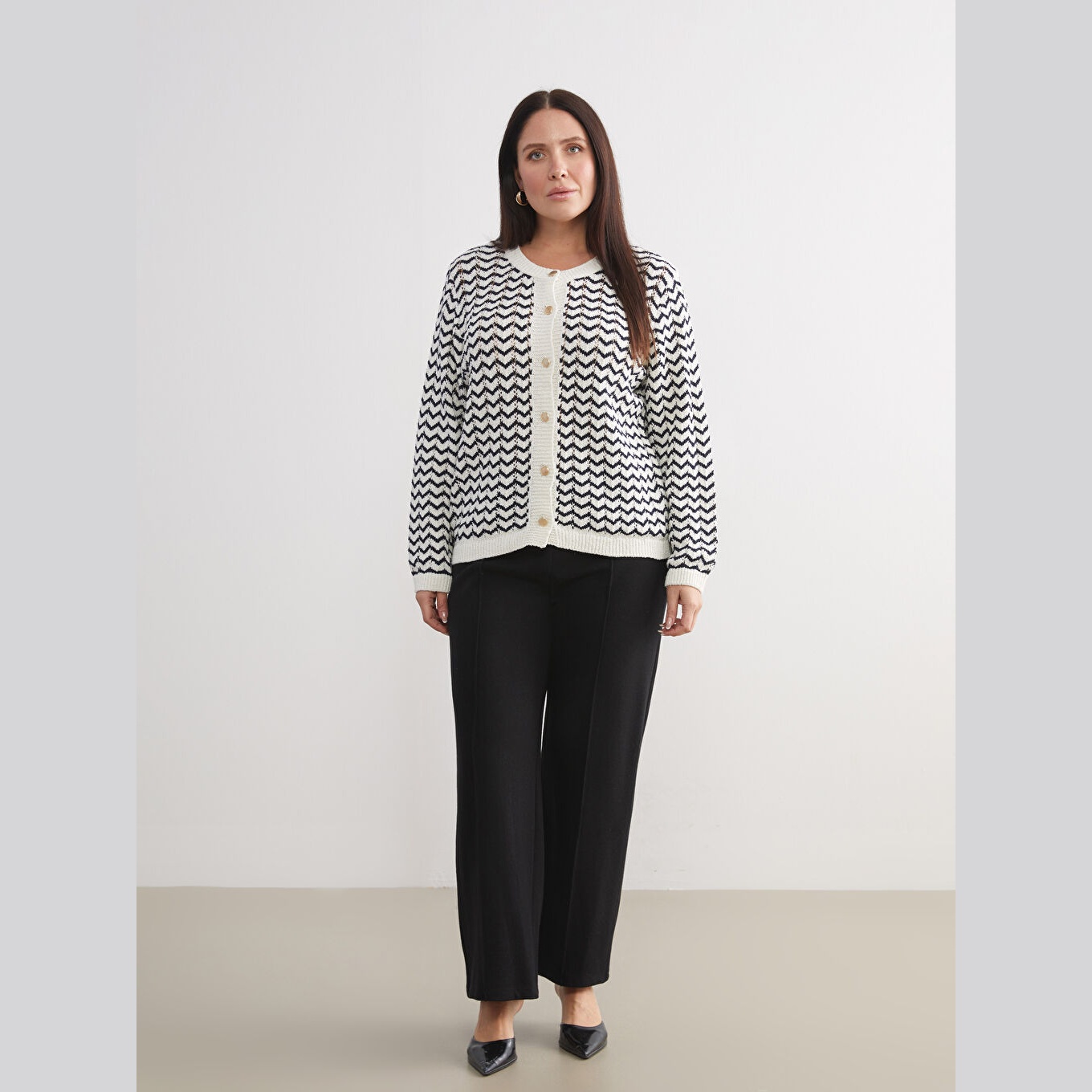 كارديغان نسائي Ajurlu بياقة دائرية من LCWAIKIKI Classic – إكرو (قصة ضيقة، تصميم مخرم بخطوط، خامة تريكو متوسطة السماكة)
