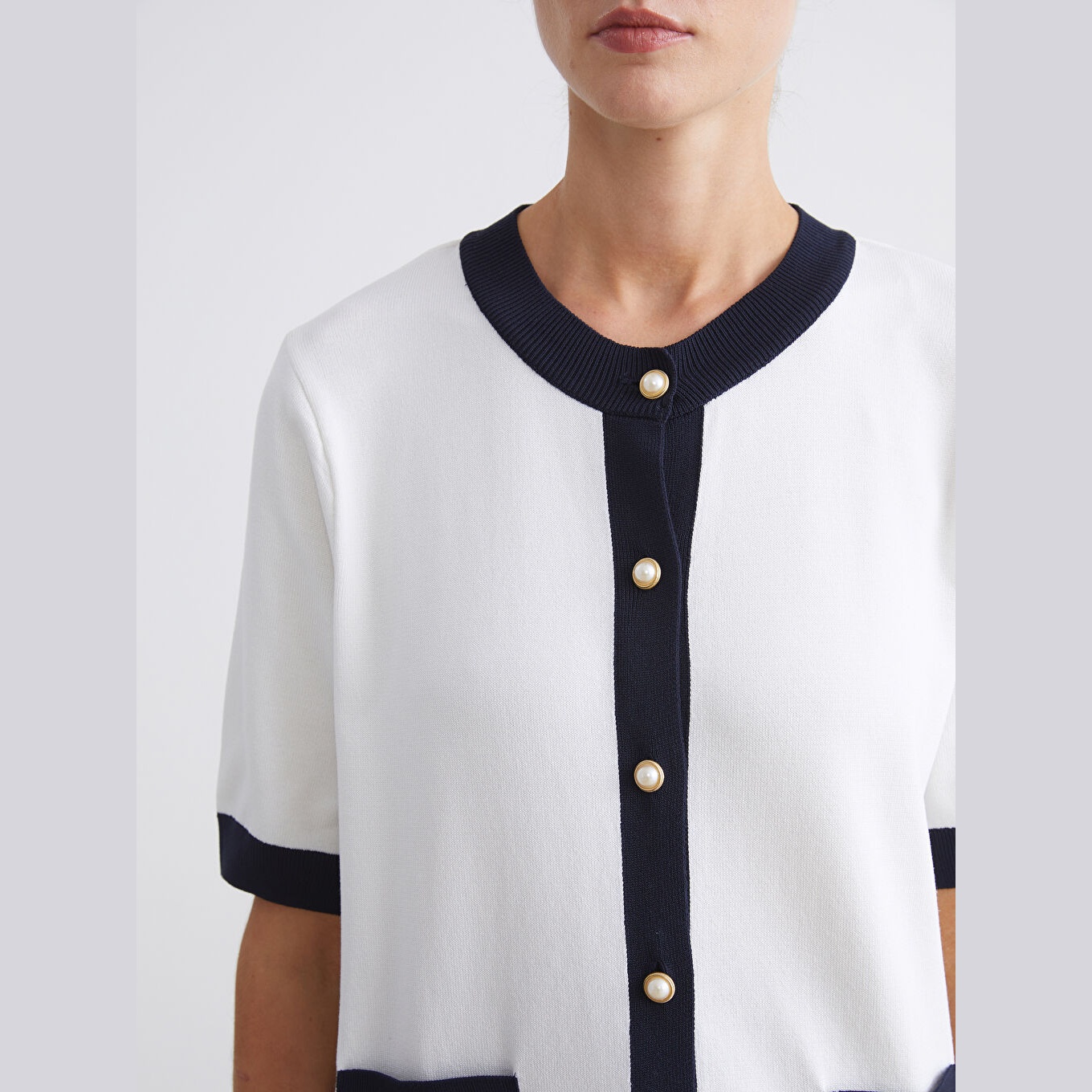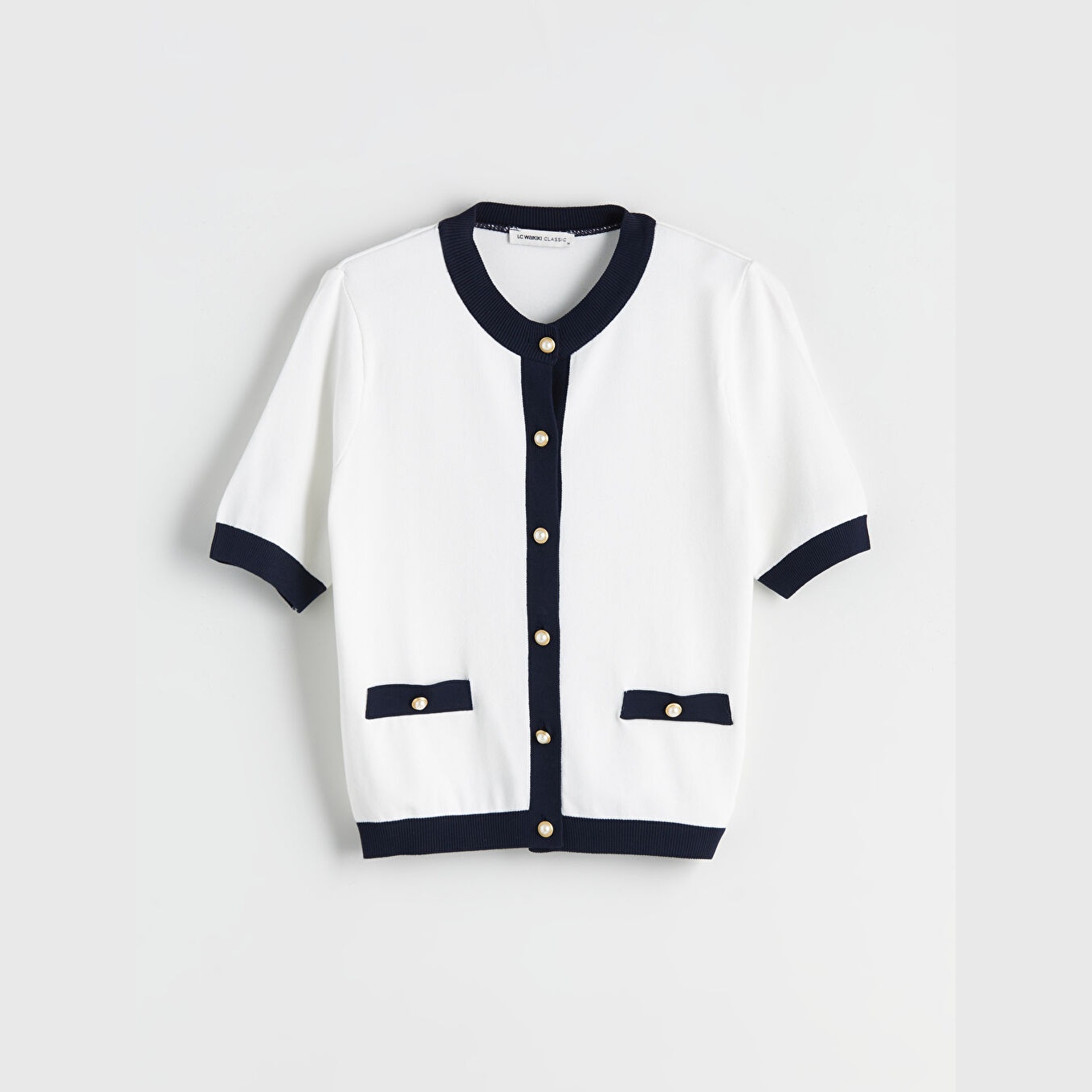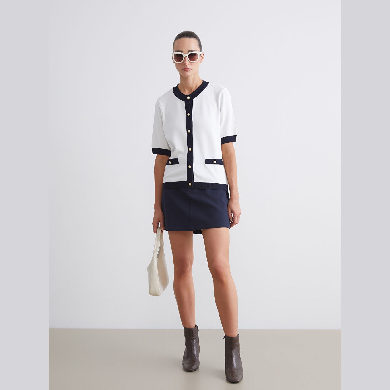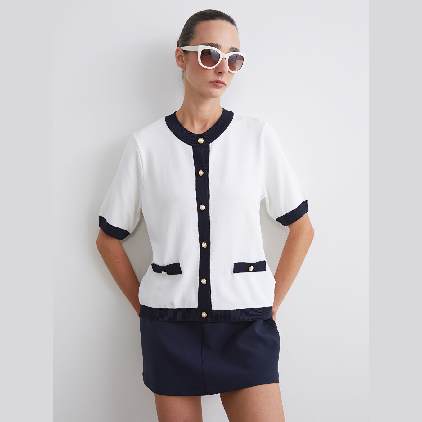 كارديغان نسائي بياقة دائرية من LCWAIKIKI Classic – إكرو (قصة ضيقة، خامة تريكو خفيفة، تصميم سادة، أكمام قصيرة)