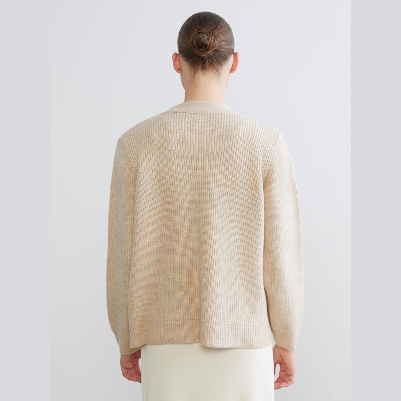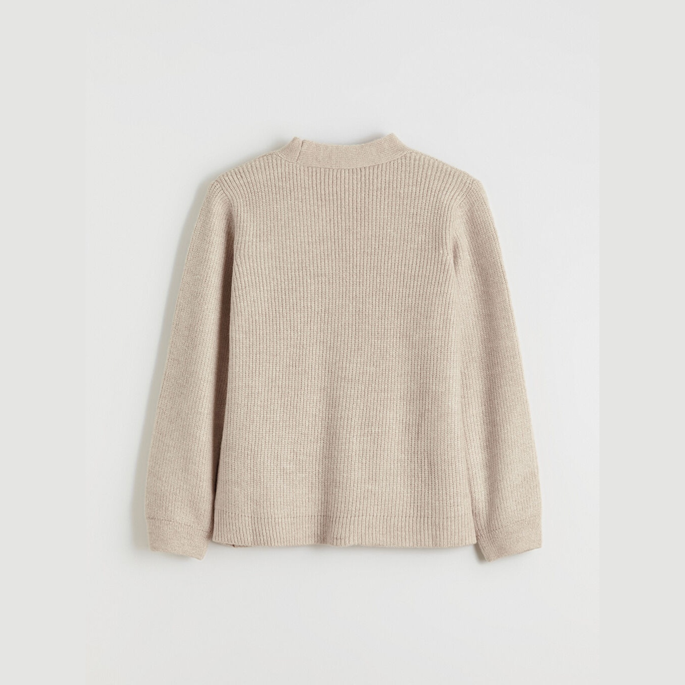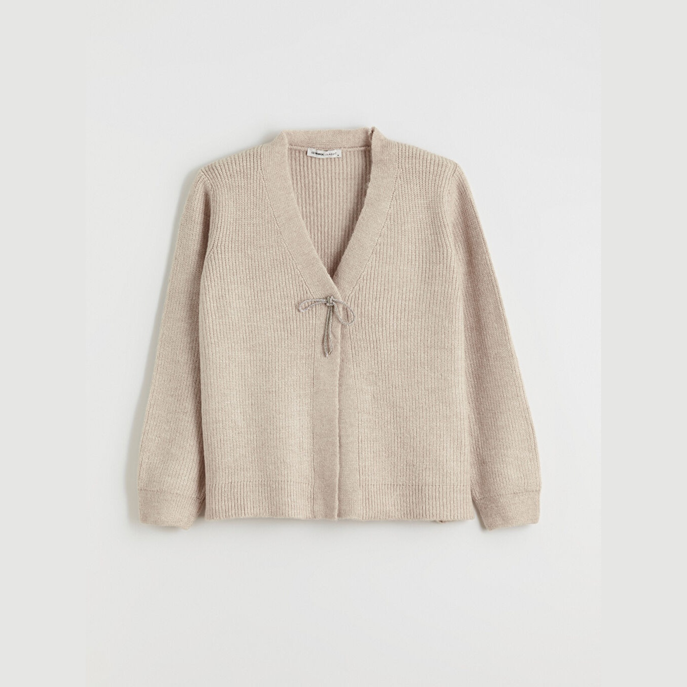 كارديغان نسائي بياقة V من LCWAIKIKI Classic – بيج (قصة واسعة، خامة تريكو متوسطة السماكة، تصميم سادة، ملمس Fitilli)