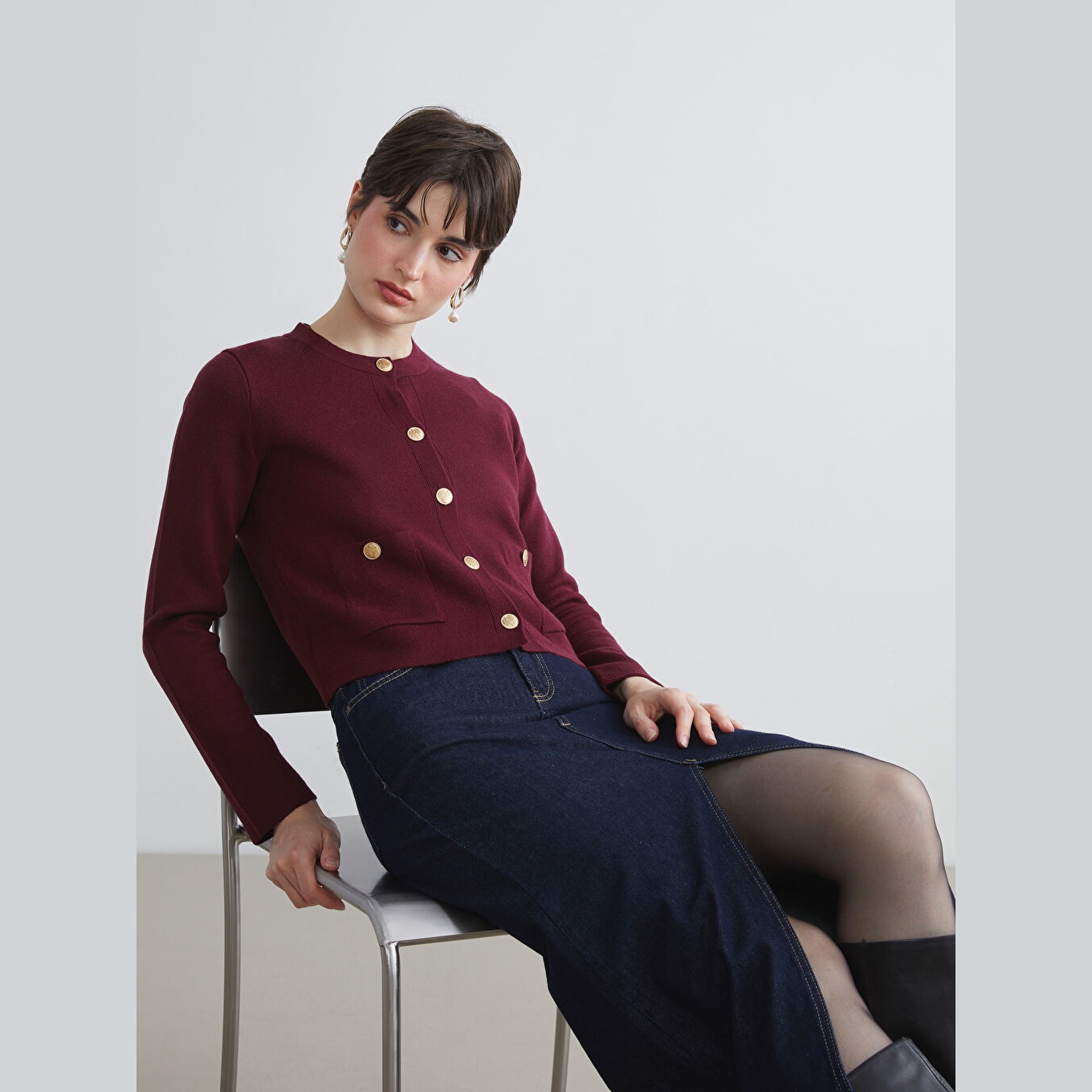 كارديغان عملي من مجموعة LCW Vision بلون بوردو غني، مصمم بياقة دائرية (Bisiklet Yaka)، أكمام طويلة، قصة Standart & Regular تمنحك مظهرًا مريحًا ومتوازنًا، تصميم سادة بدون نقوش، خامة Triko متوسطة السماكة بتركيبة تحتوي على %100 أكريليك، مزود بأزرار أمامية للإغلاق، بطول يُقاس من الكتف، مثالي للتنسيق مع بناطيل قماش أو تنانير لإطلالة خريفية أو مكتبية أنيقة.