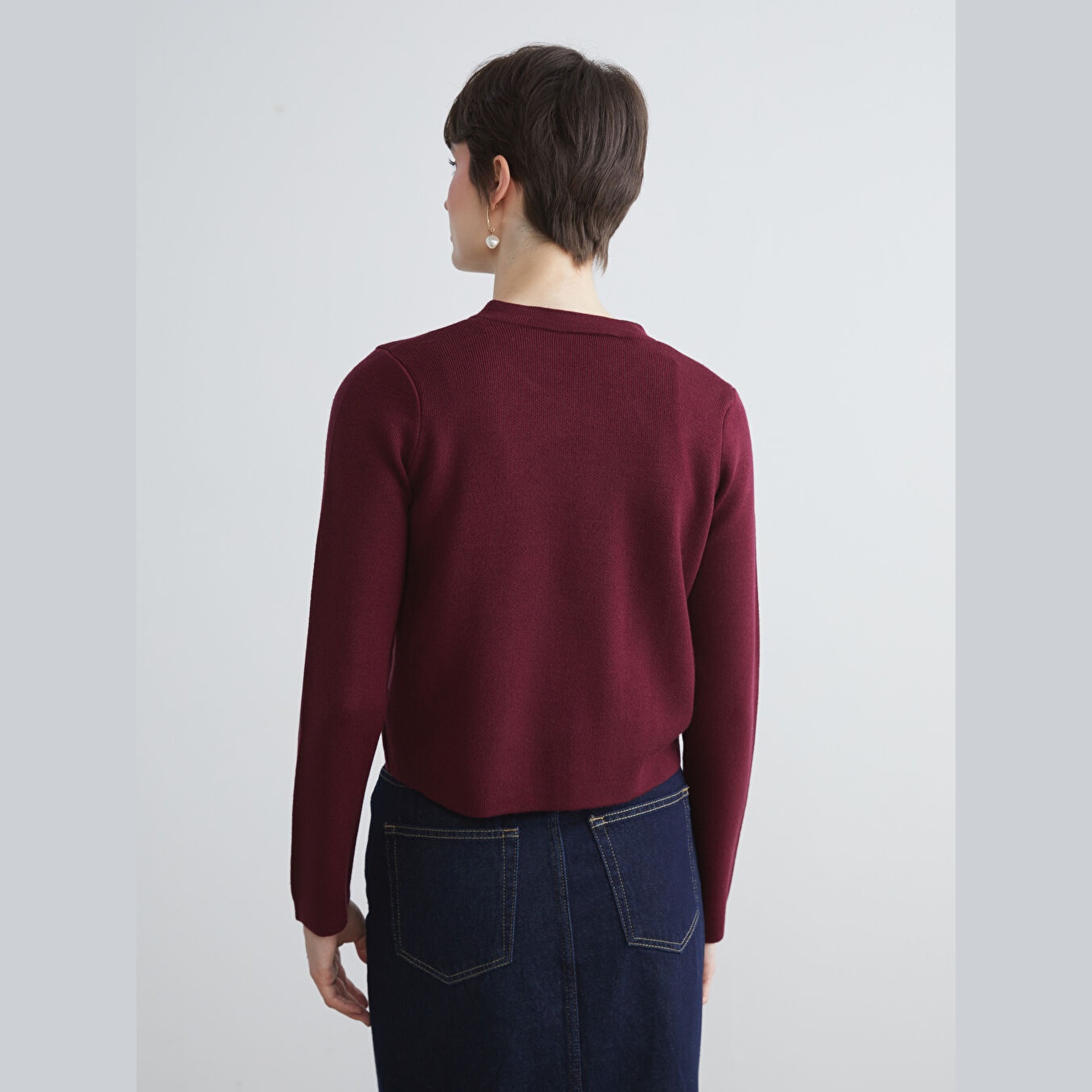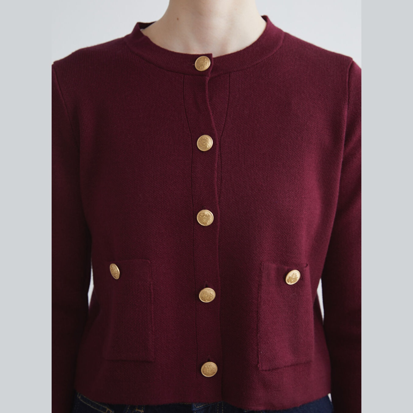 كارديغان نسائي بياقة دائرية من LCW Vision – بوردو (قصة قياسية، خامة تريكو متوسطة السماكة، تصميم سادة، بزر أمامي)