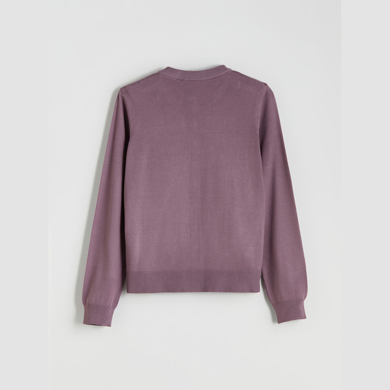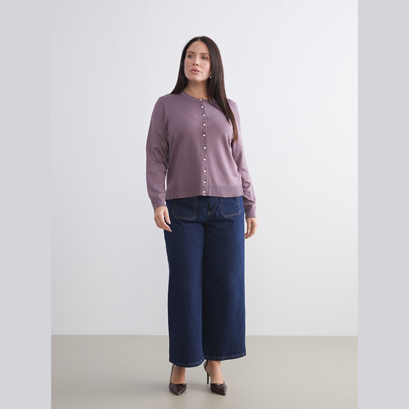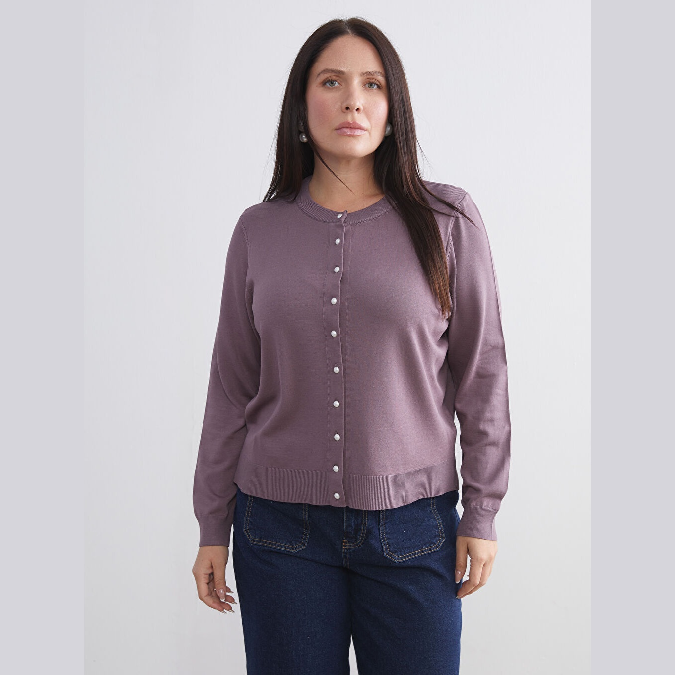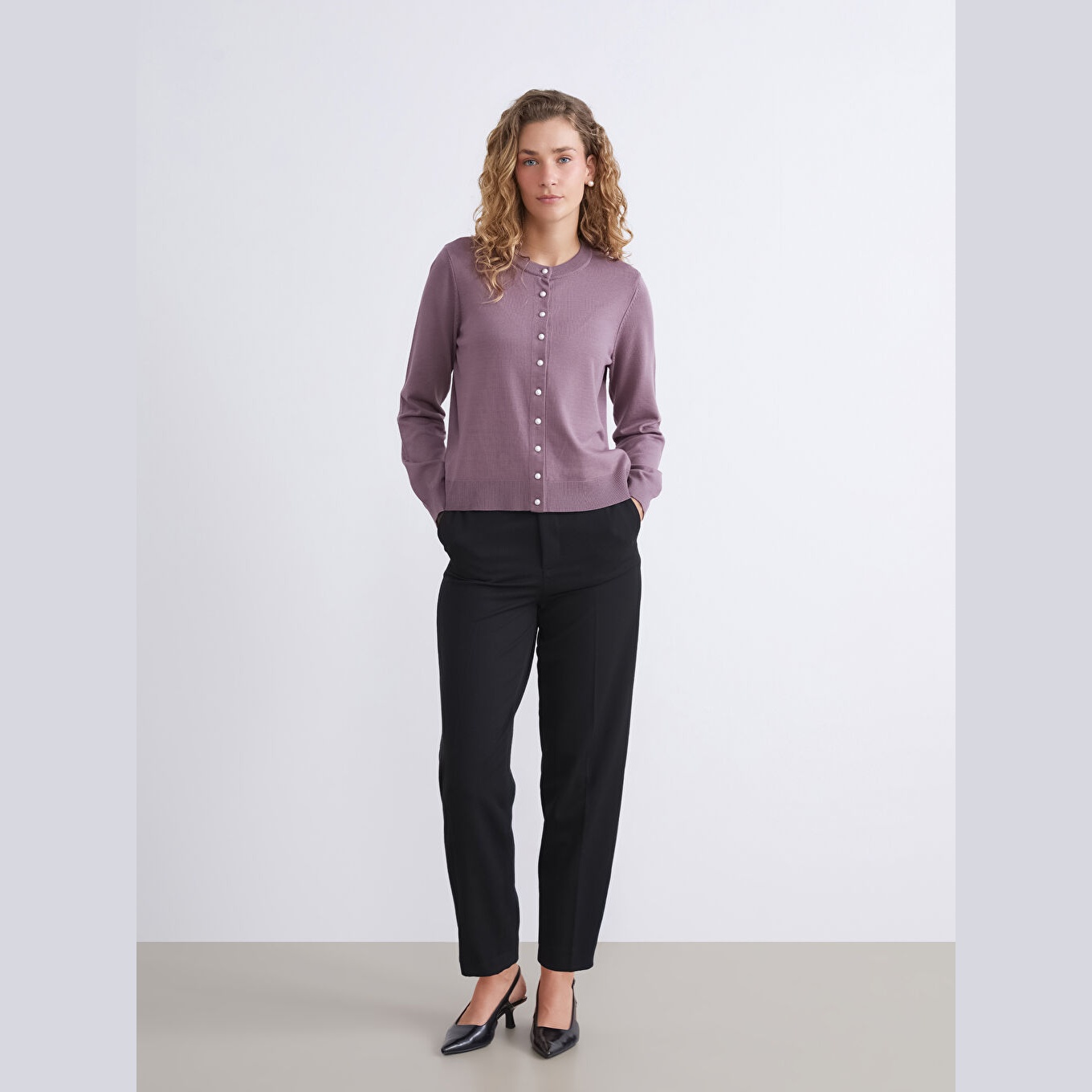 كارديغان نسائي بياقة دائرية قصير من LCW Modest – بنفسجي (قصة قياسية، خامة تريكو خفيفة، تصميم سادة، أزرار لؤلؤية، طول قصير)