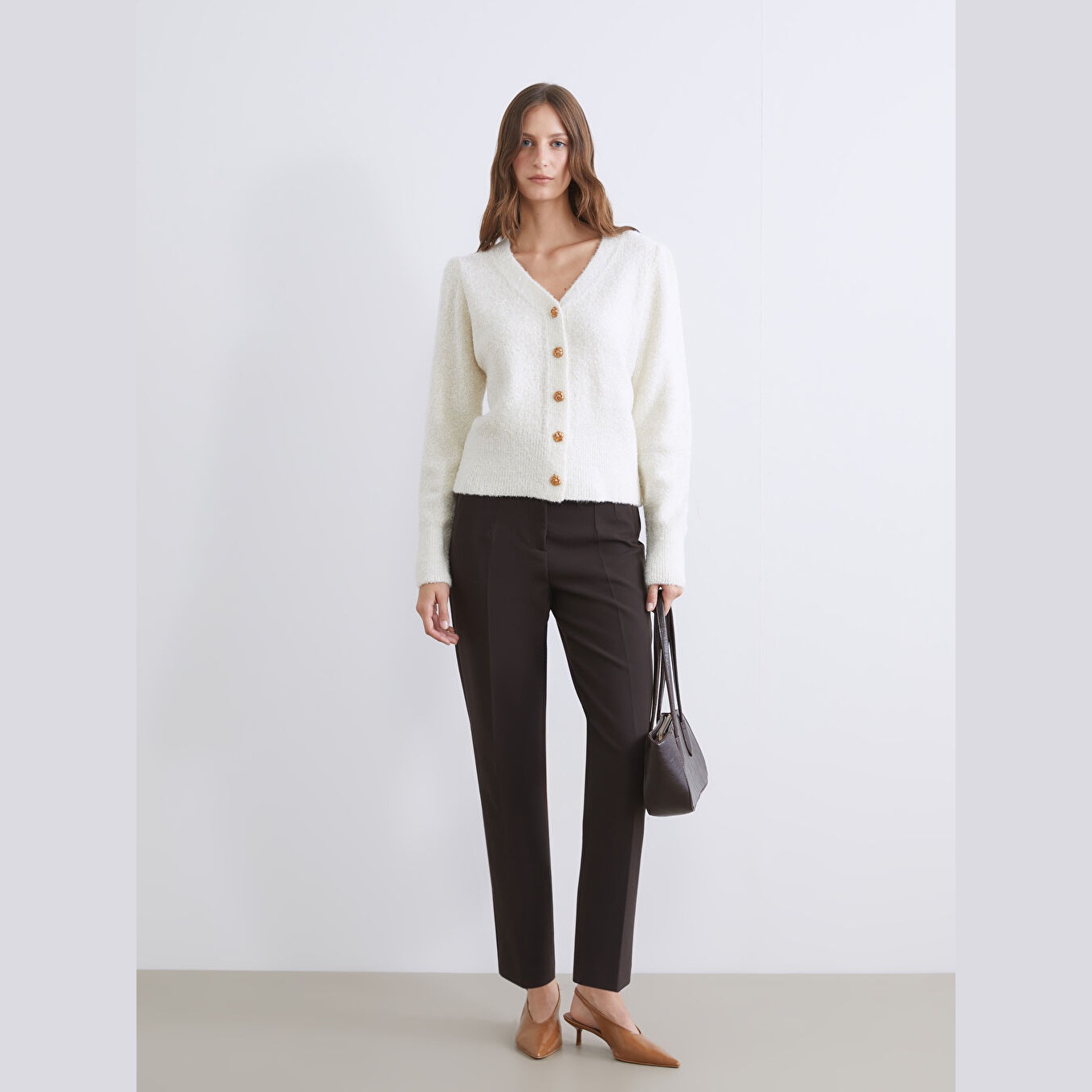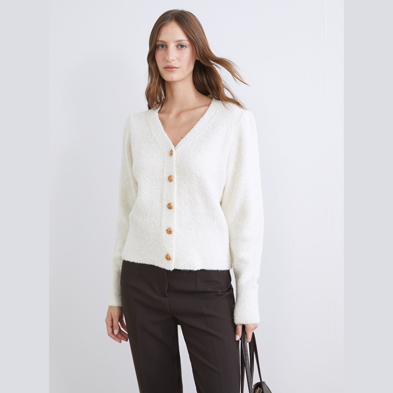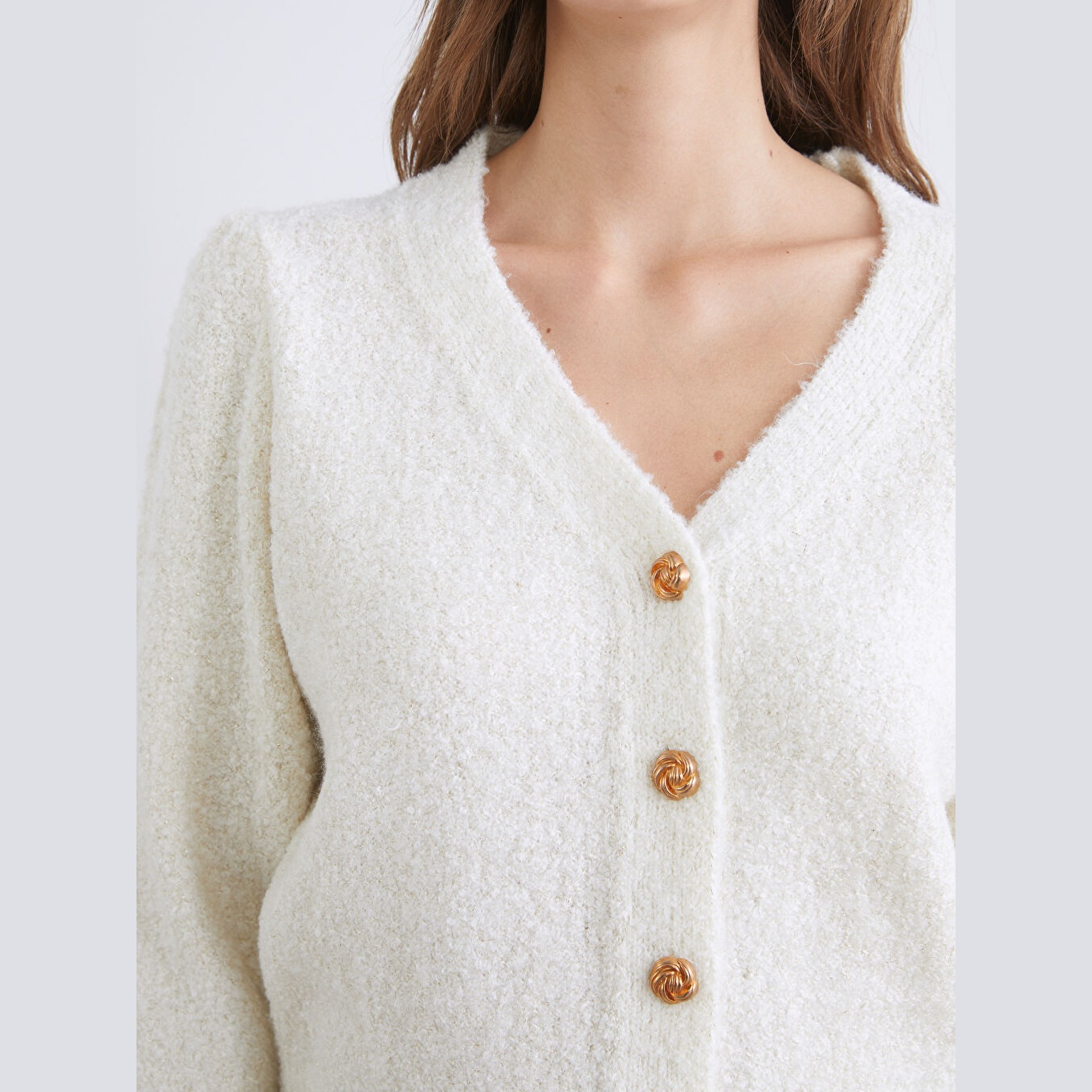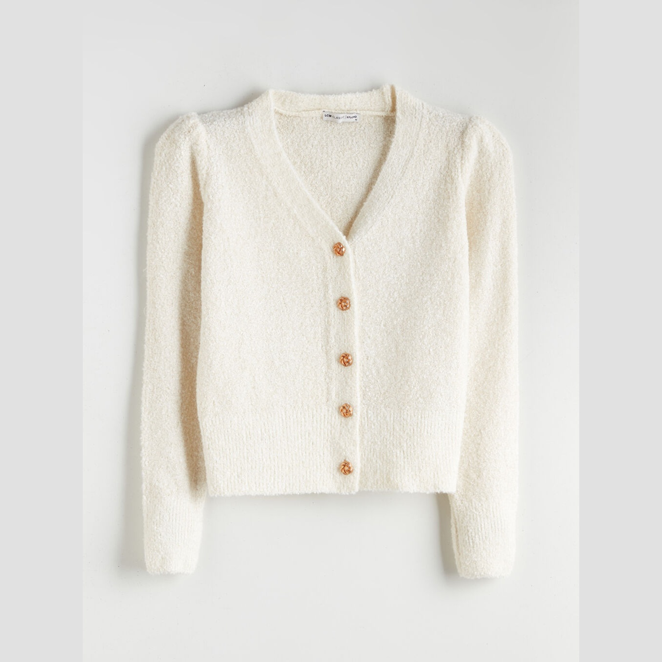 كارديغان أنيق من مجموعة LCWAIKIKI Classic بلون بيج هادئ، مصمم بياقة V (V Yaka) تضيف لمسة أنثوية ناعمة، أكمام طويلة، قصة Standart & Regular تمنحك مظهرًا مريحًا ومتوازنًا، تصميم سادة (Düz) مع خيوط ميتاليك تضيف لمسة لامعة ناعمة، خامة Triko متوسطة السماكة بتركيبة تحتوي على %76 أكريليك، %22 بوليستر، %2 خيوط ميتاليك، مزود بأزرار أمامية للإغلاق، بطول يُقاس من الكتف، مثالي للتنسيق مع بناطيل قماش أو تنانير لإطلالة يومية أو مكتبية أنيقة.