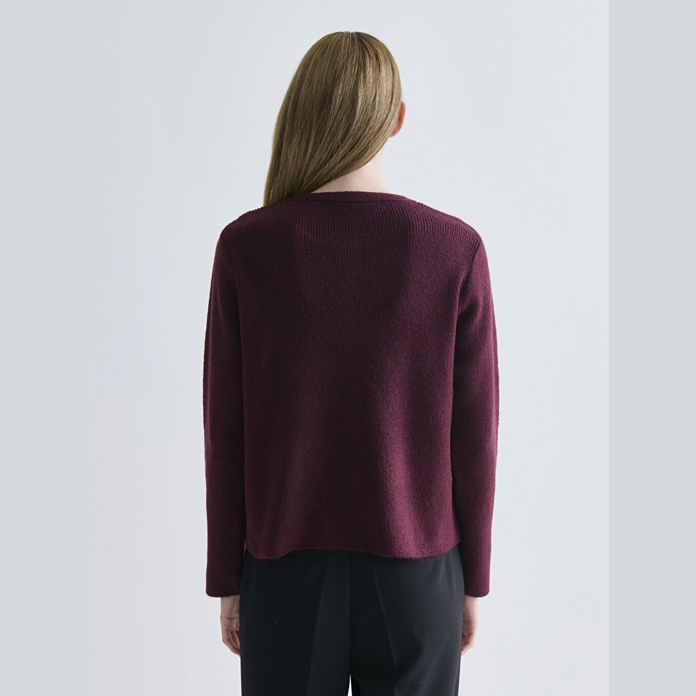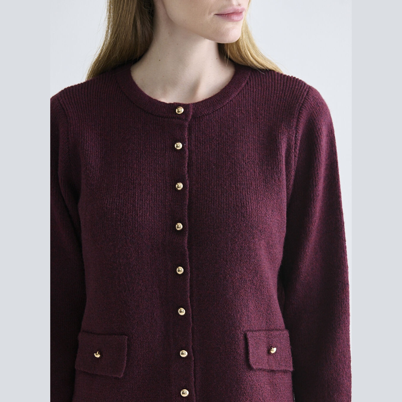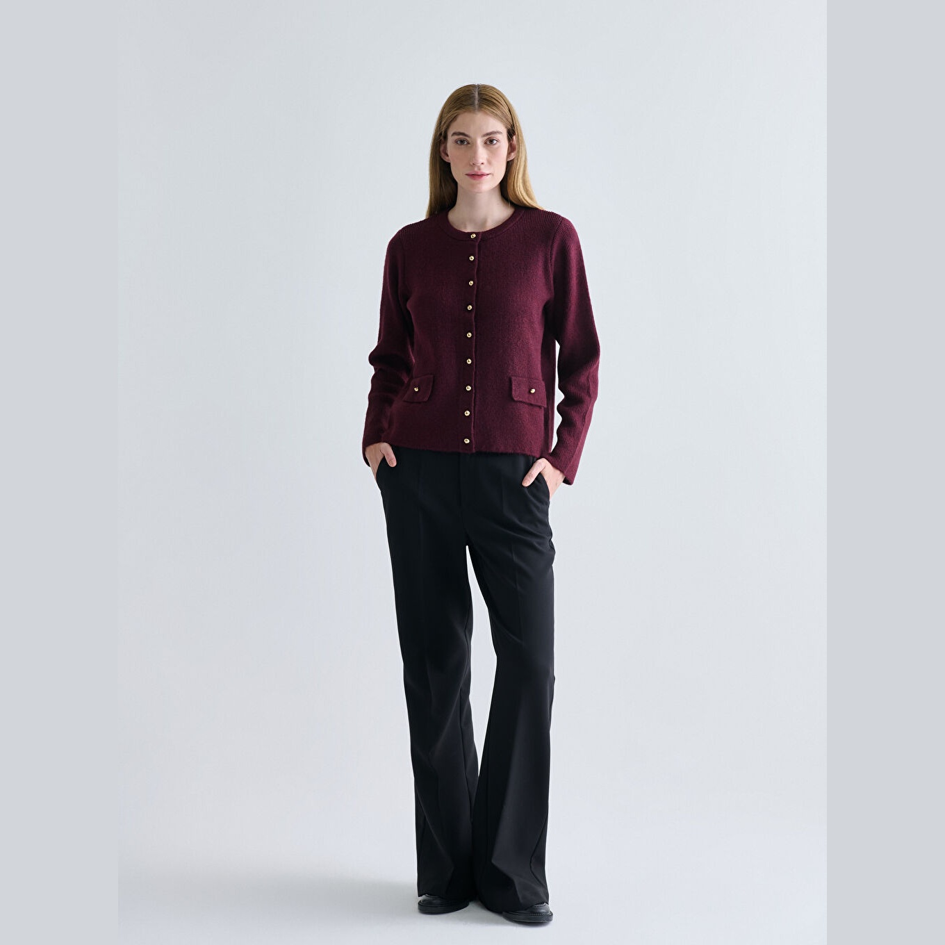 كارديغان نسائي بياقة دائرية من LCW Classic – بوردو (قصة قياسية، خامة تريكو متوسطة السماكة، تصميم سادة، أزرار أمامية)