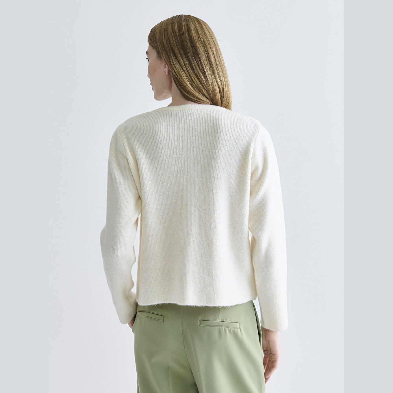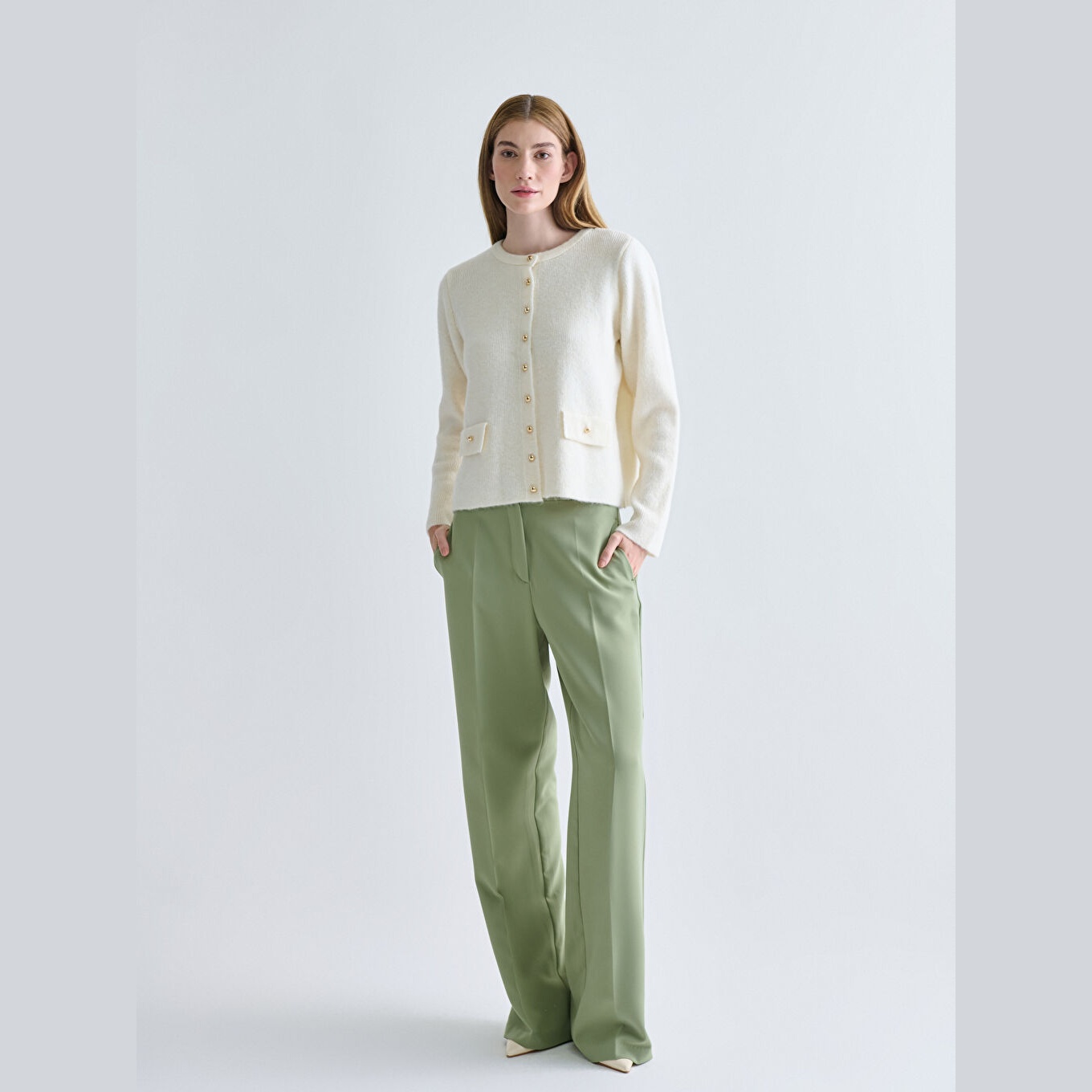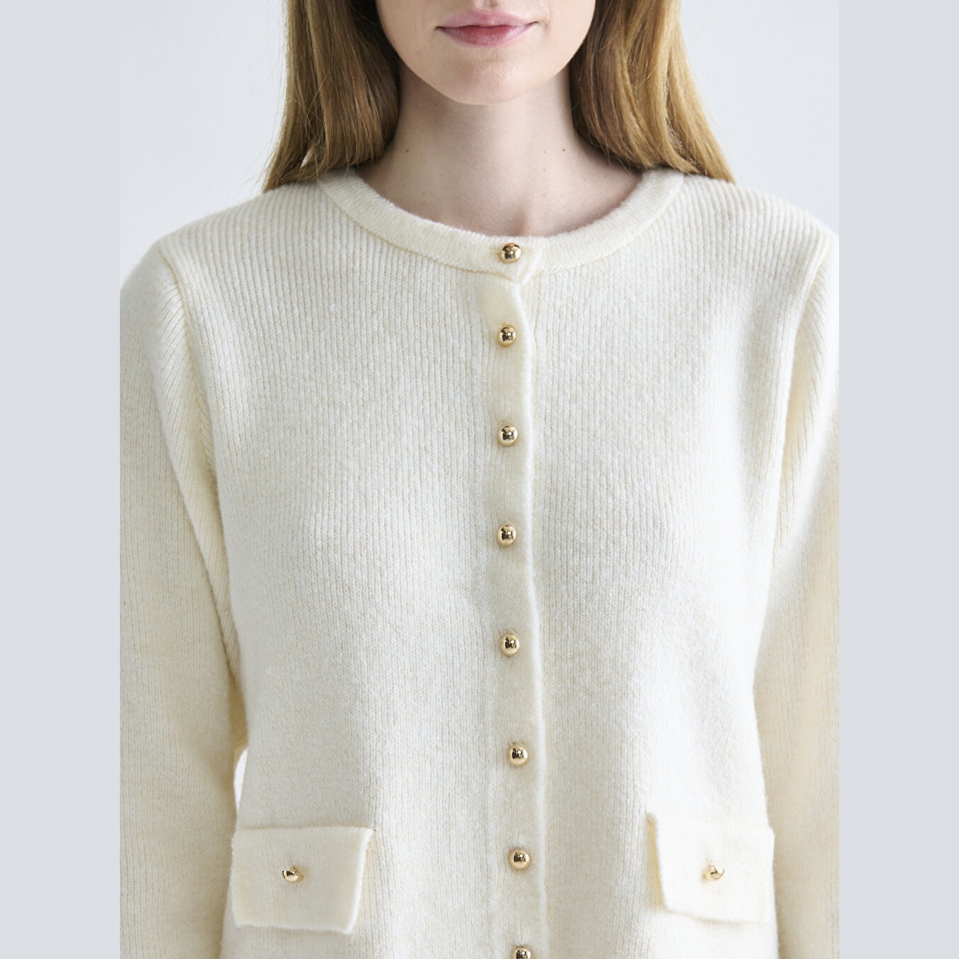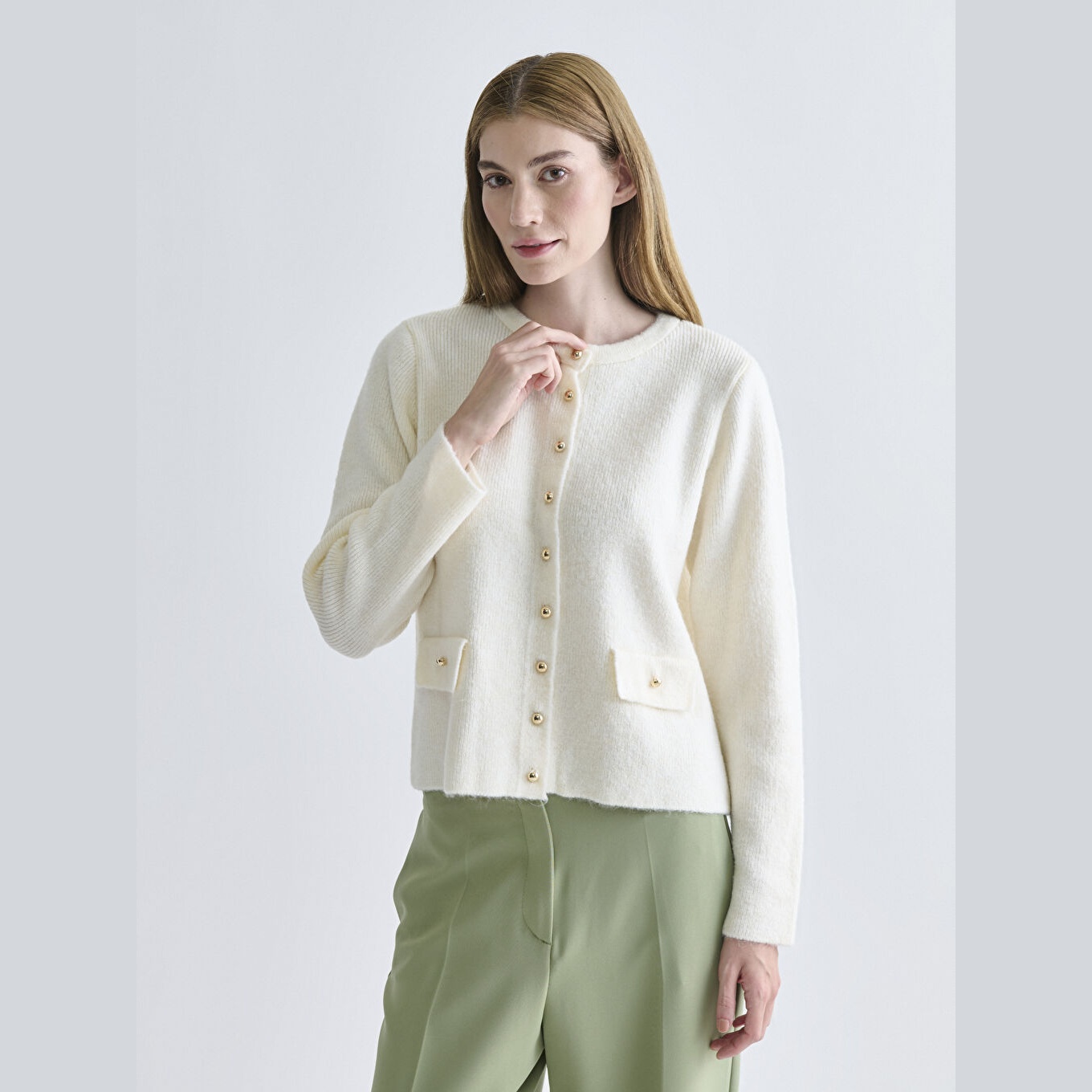 كارديغان نسائي بياقة دائرية من LCW Classic – إكرو (قصة قياسية، خامة تريكو متوسطة السماكة، تصميم سادة، أزرار أمامية)