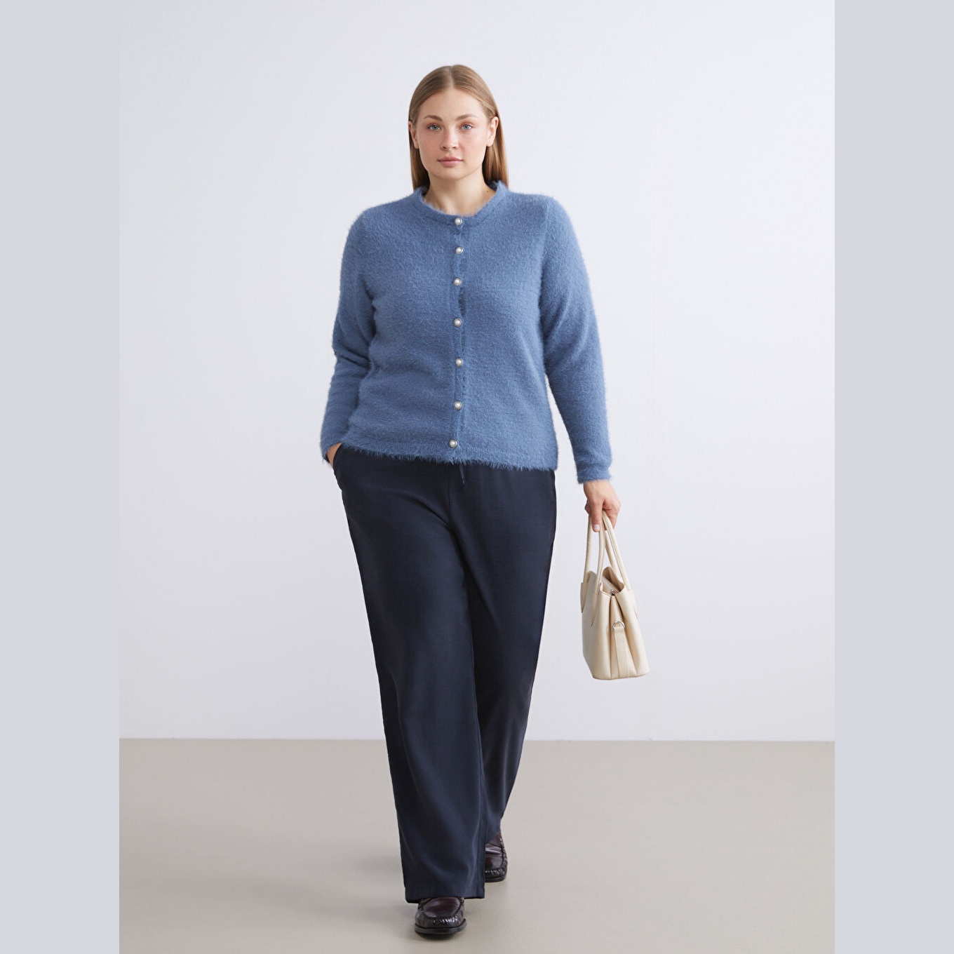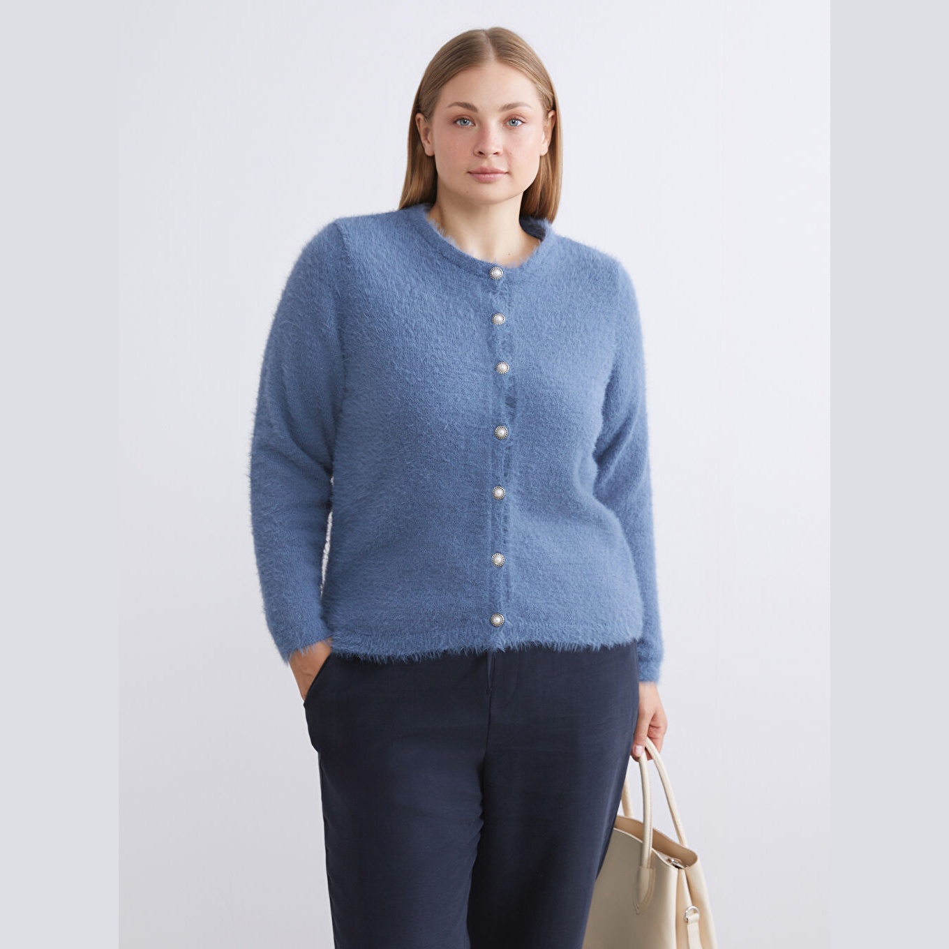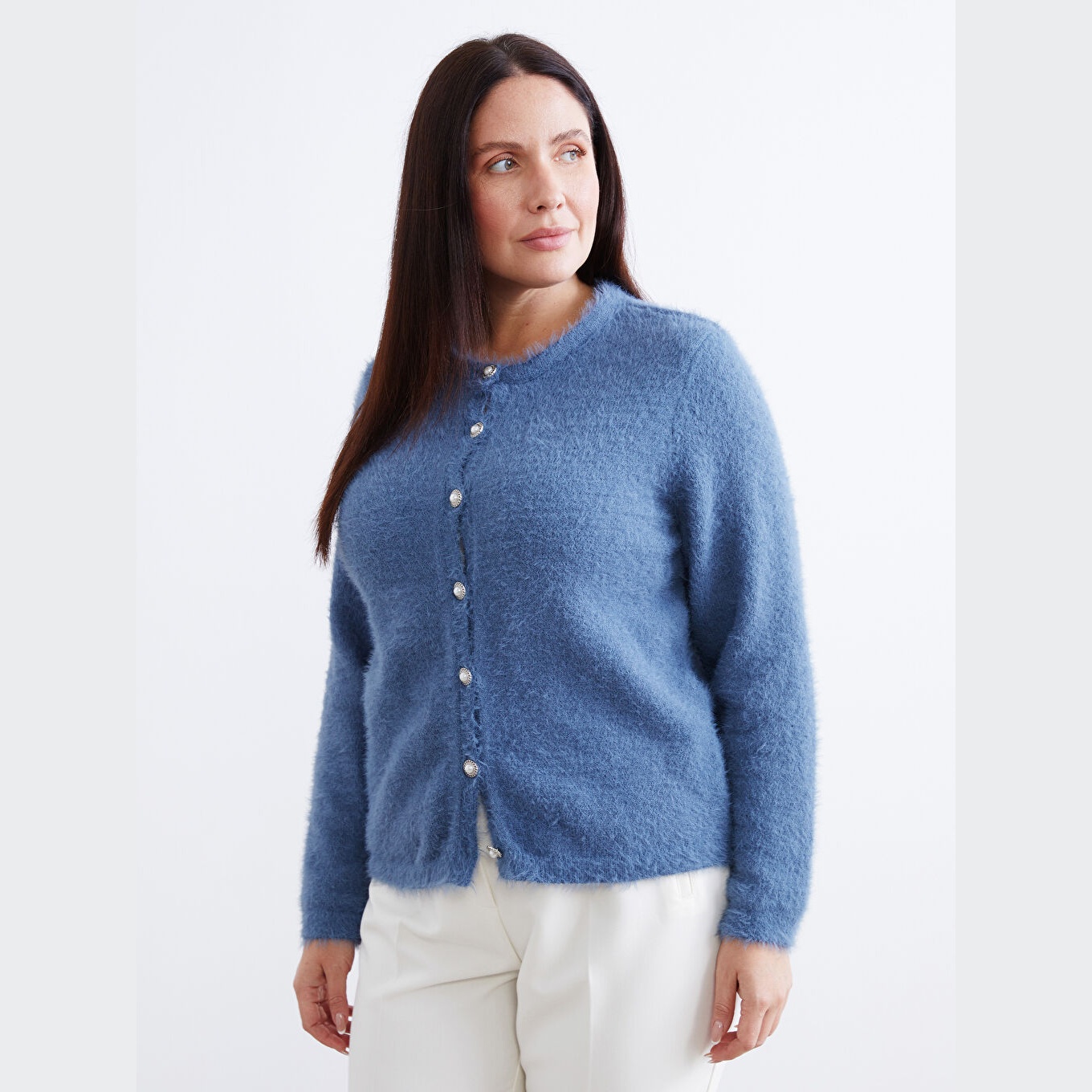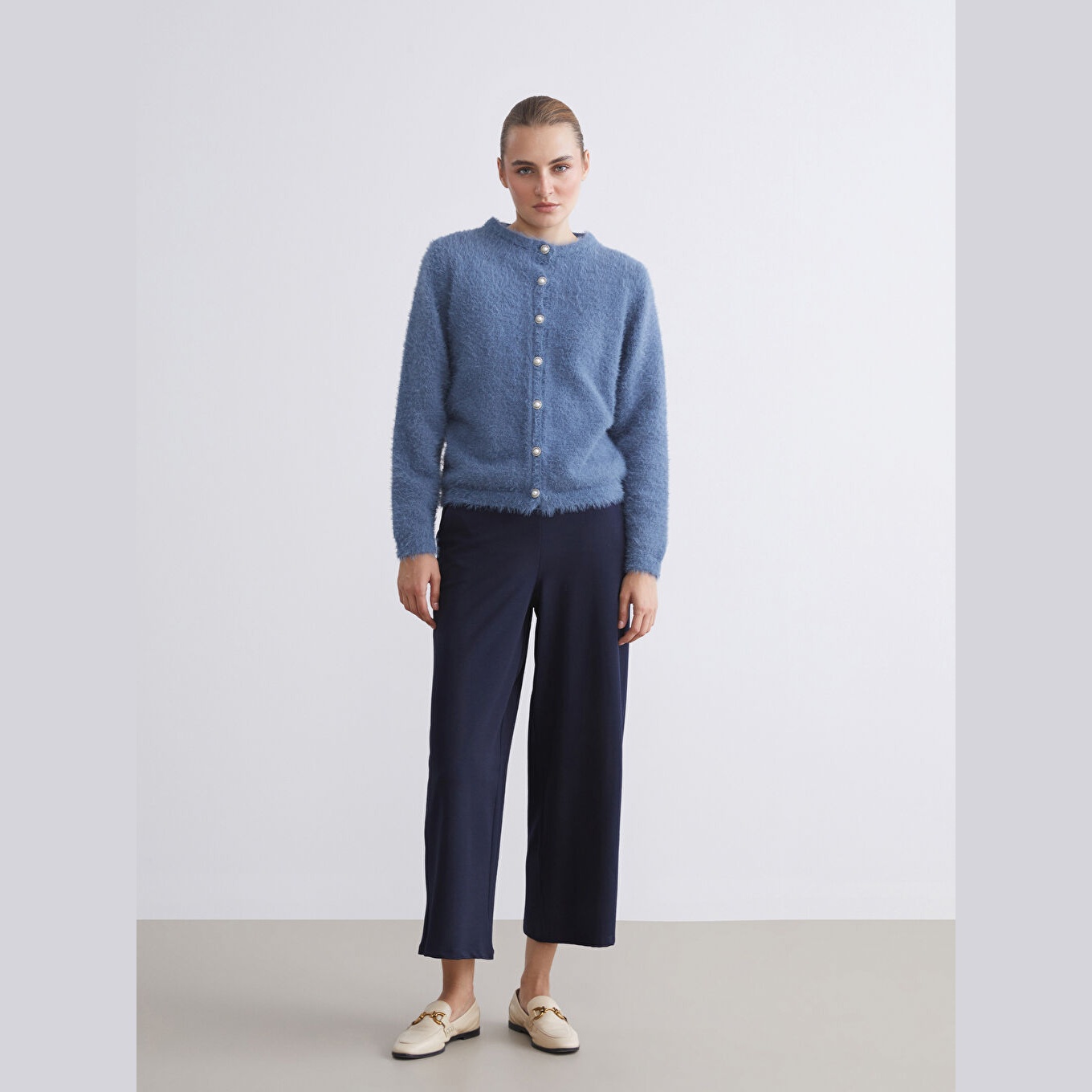كارديغان نسائي بياقة دائرية من LCW Classic – أزرق (قصة ضيقة، خامة تريكو متوسطة السماكة، تصميم سادة، أزرار أمامية)
