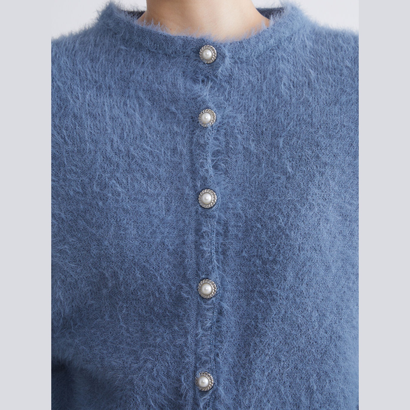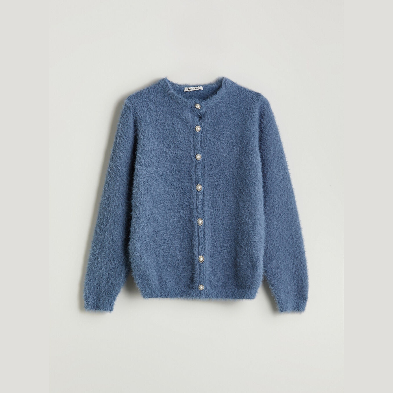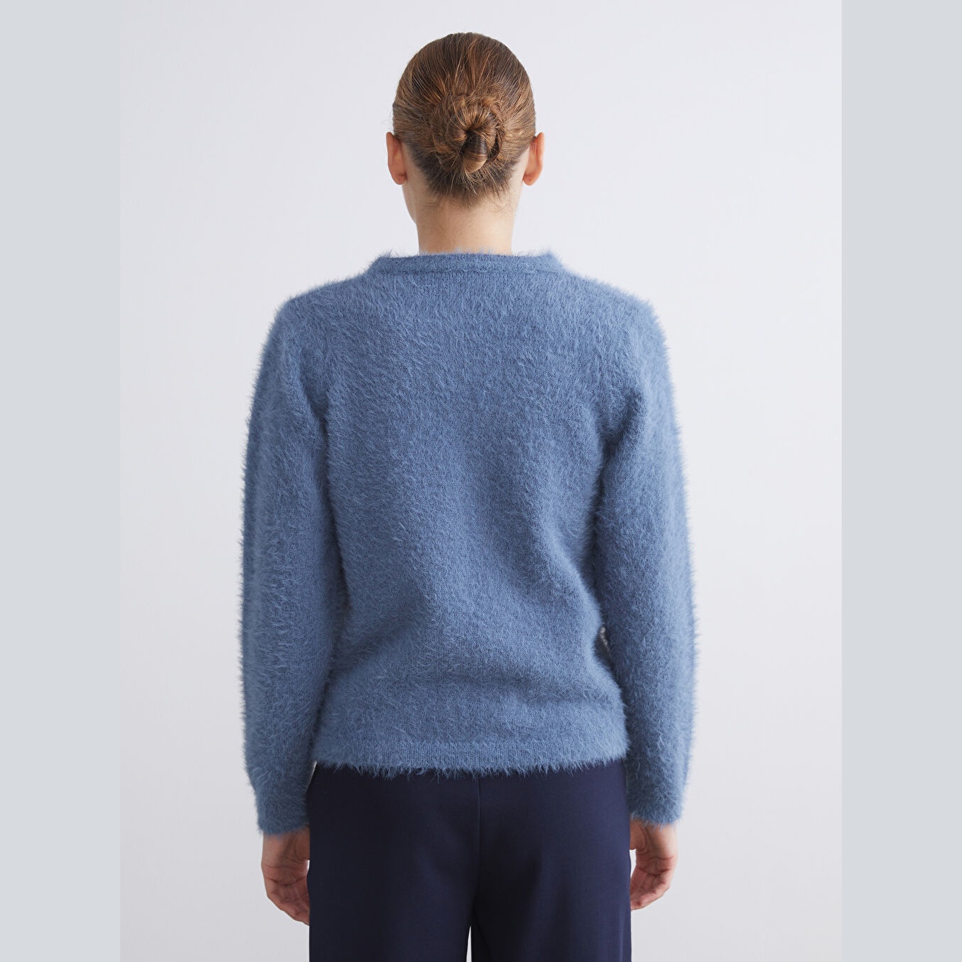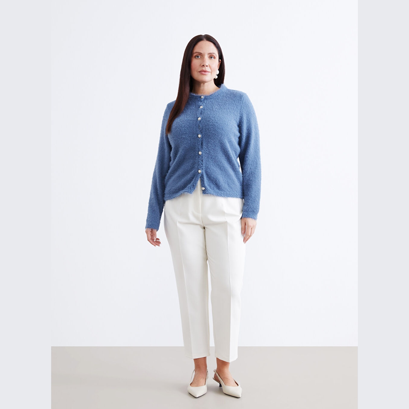 كارديغان نسائي بياقة دائرية من LCW Classic – أزرق (قصة ضيقة، خامة تريكو متوسطة السماكة، تصميم سادة، أزرار أمامية)