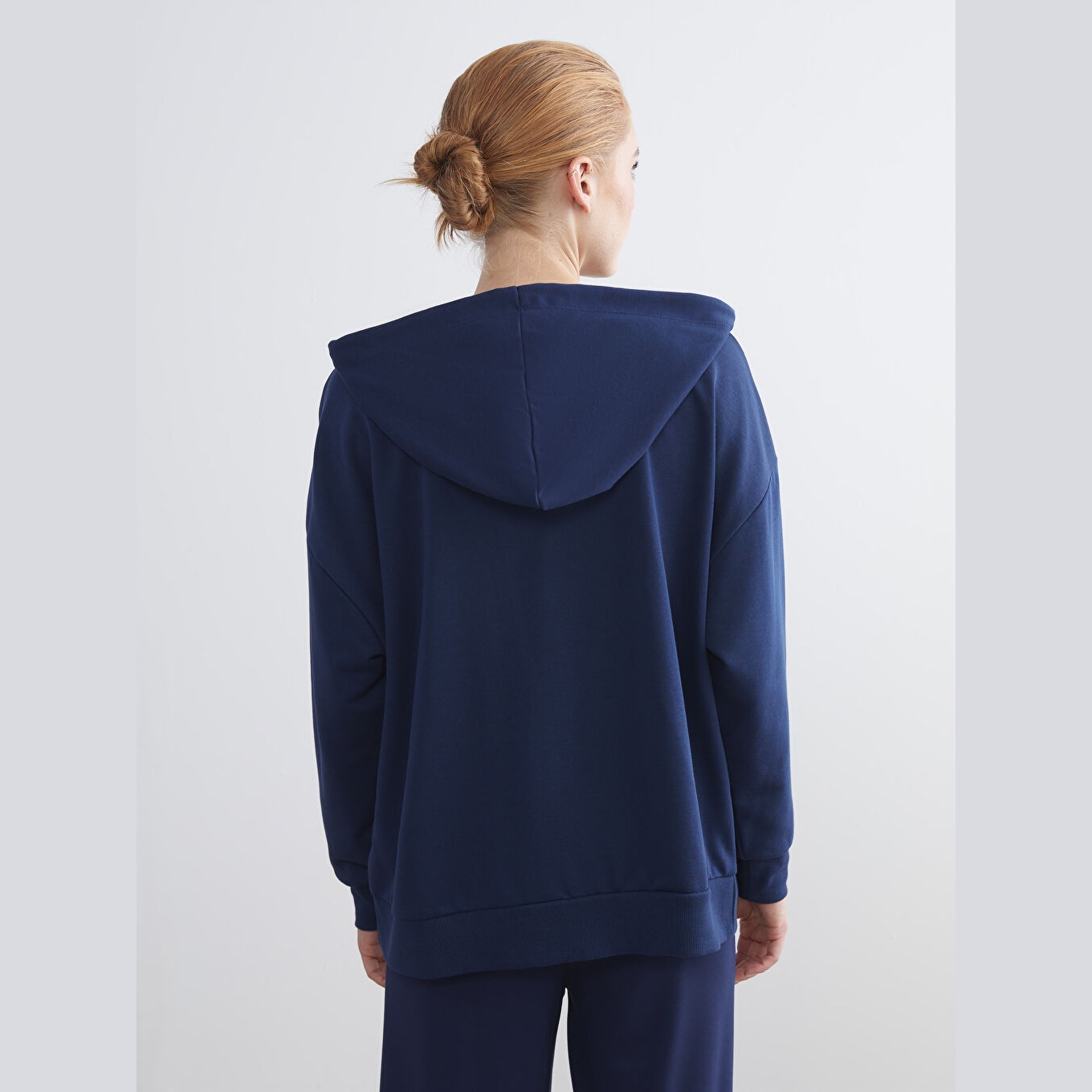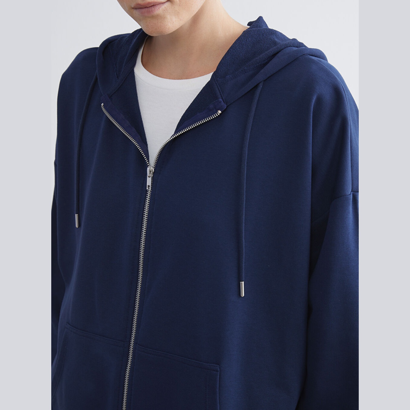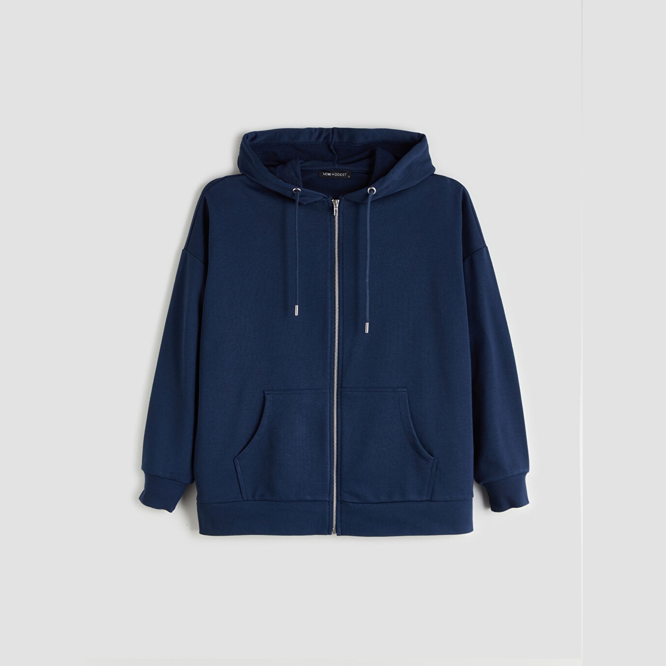 سويت شيرت نسائي بغطاء رأس وقصة واسعة من LCW Modest – كحلي (قصة Oversize، خامة متوسطة السماكة، تصميم سادة، فتحة سحاب أمامية، ضمن مجموعة العودة إلى الجامعة)