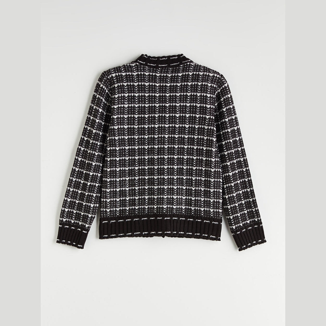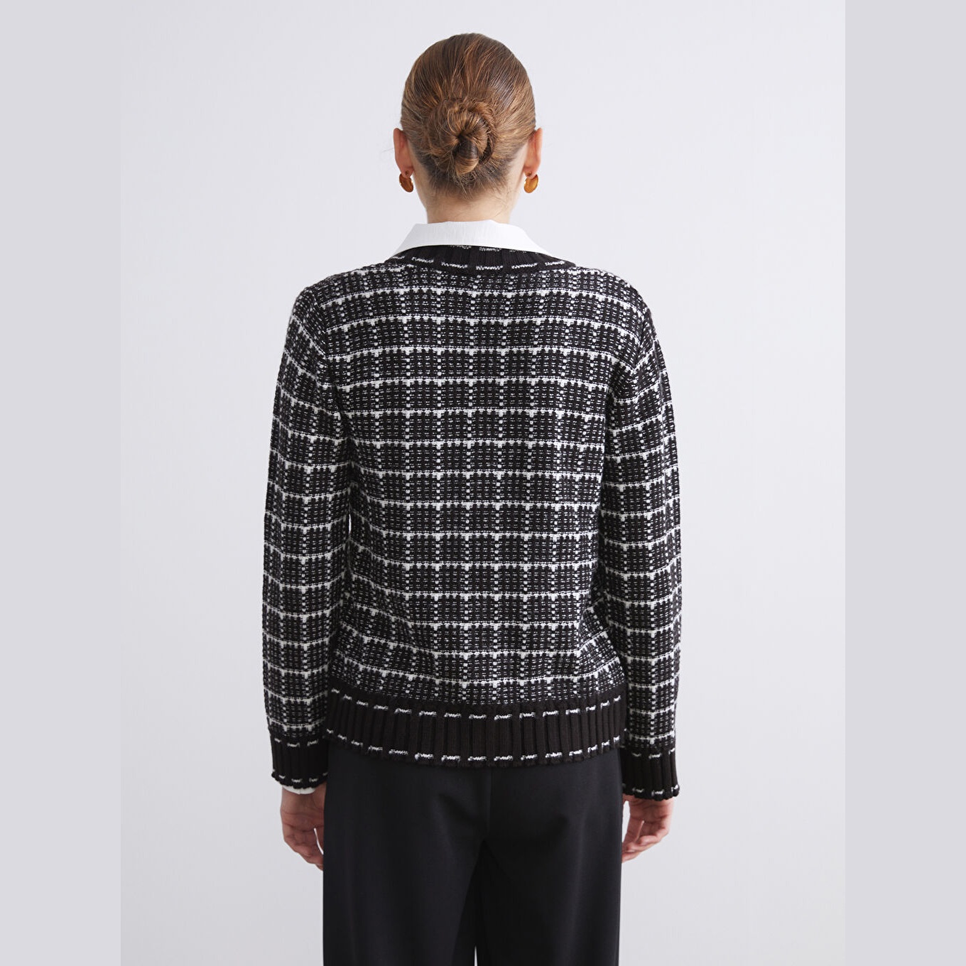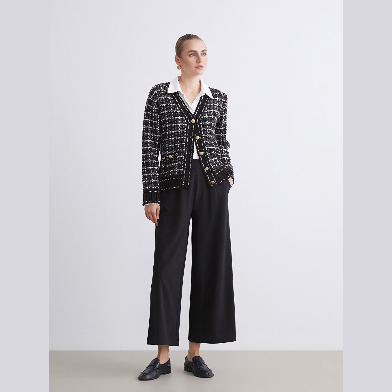 كارديغان نسائي بياقة V بنقشة مربعات من LCW Classic – أسود (قصة ضيقة، خامة تريكو متوسطة السماكة، تصميم إكّوسي، أزرار أمامية، ضمن مجموعة LCW Classic)