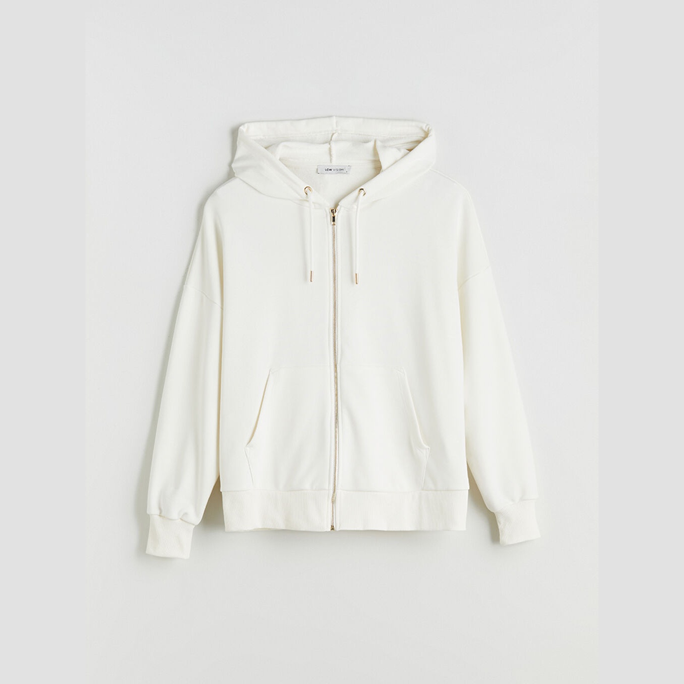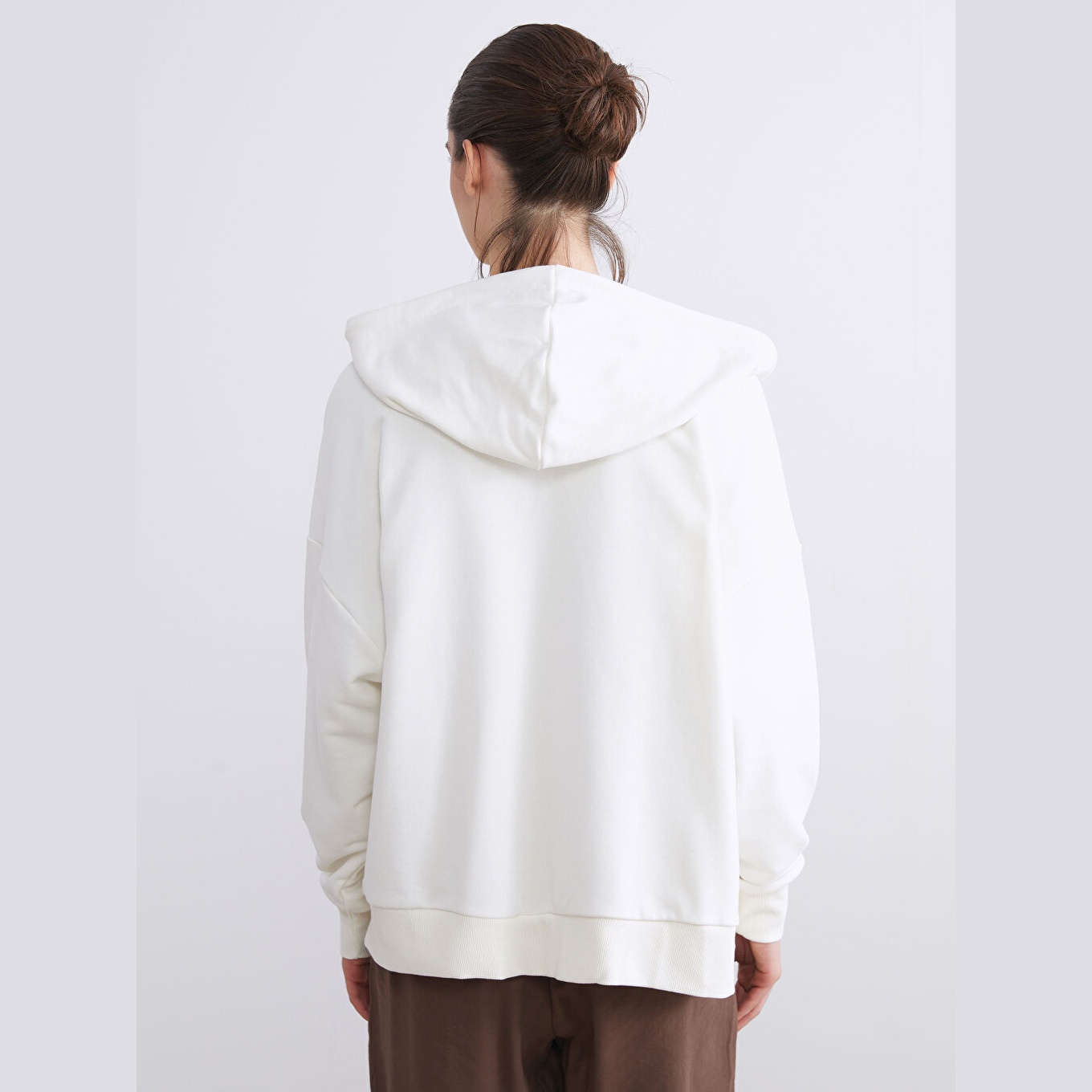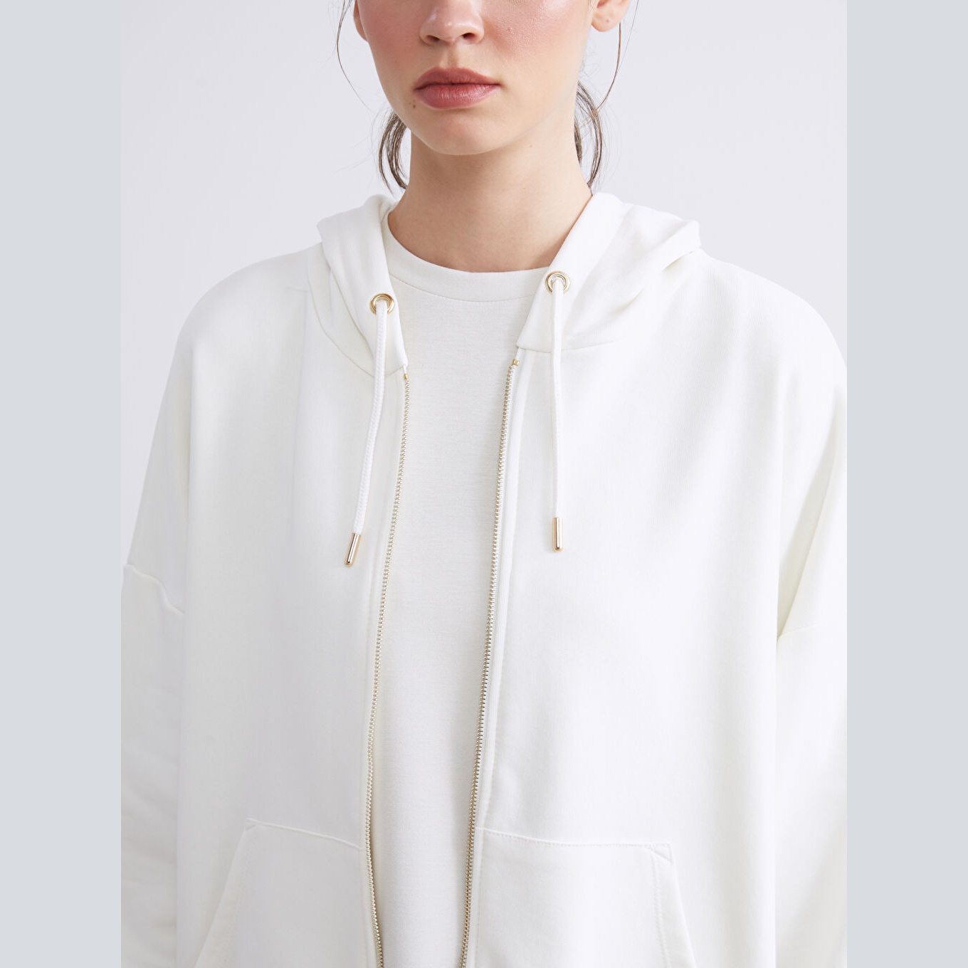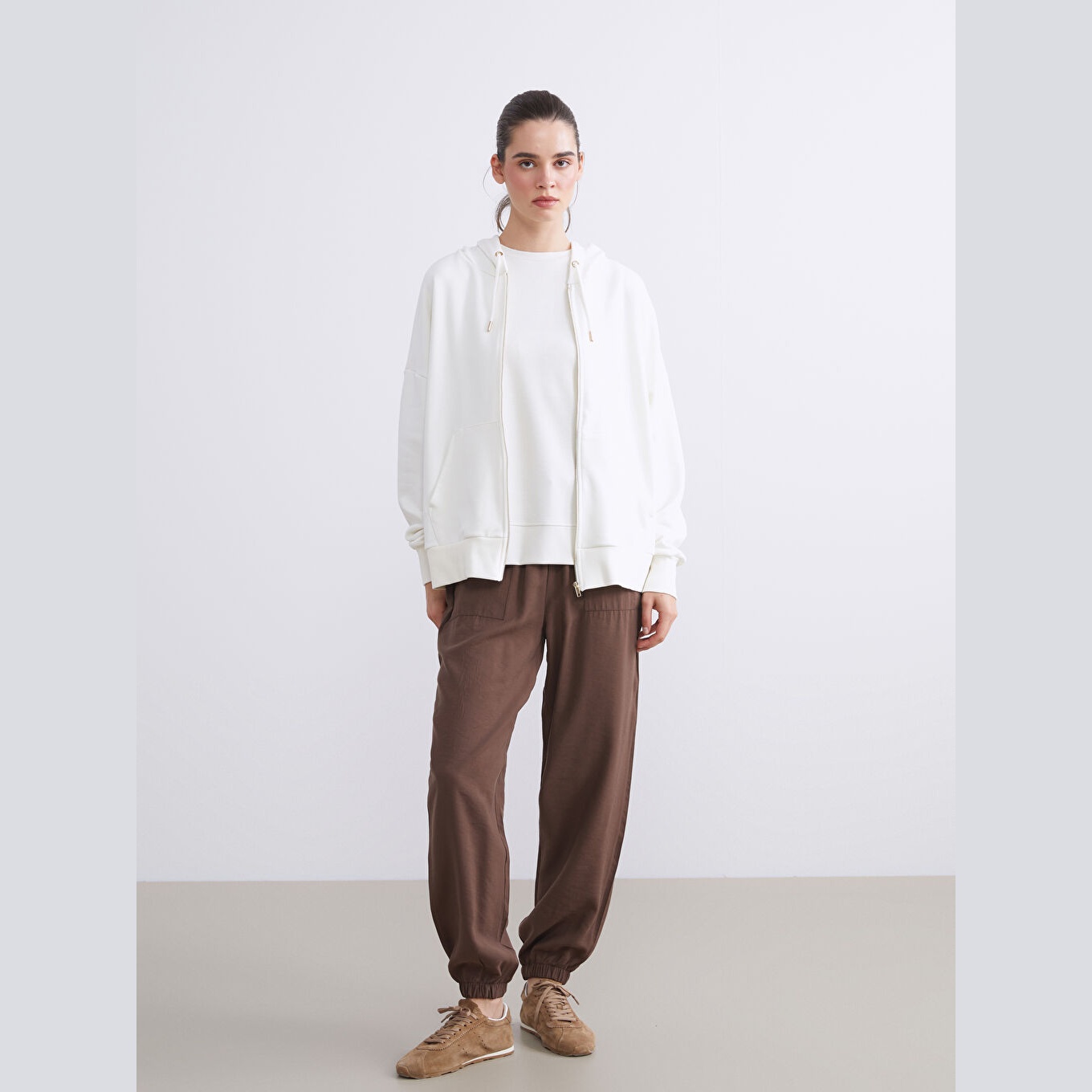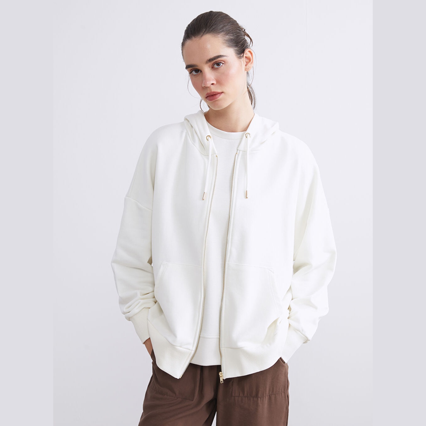 سويت شيرت نسائي بقبعة وسحاب أمامي من LCW Vision – إكرو (قصة Oversize، خامة 3 İplik متوسطة السماكة، تصميم سادة، ضمن مجموعة Kampüse Dönüş)