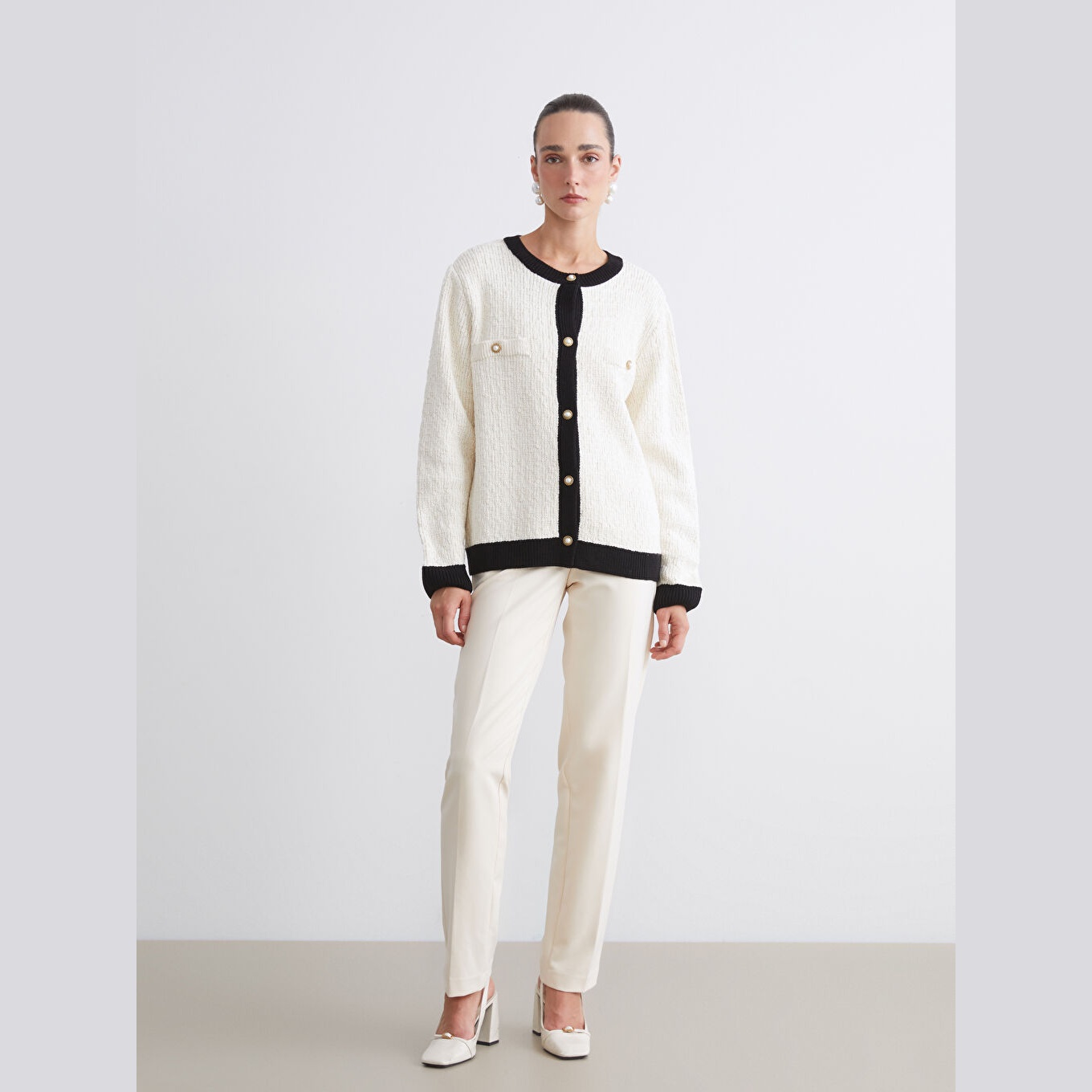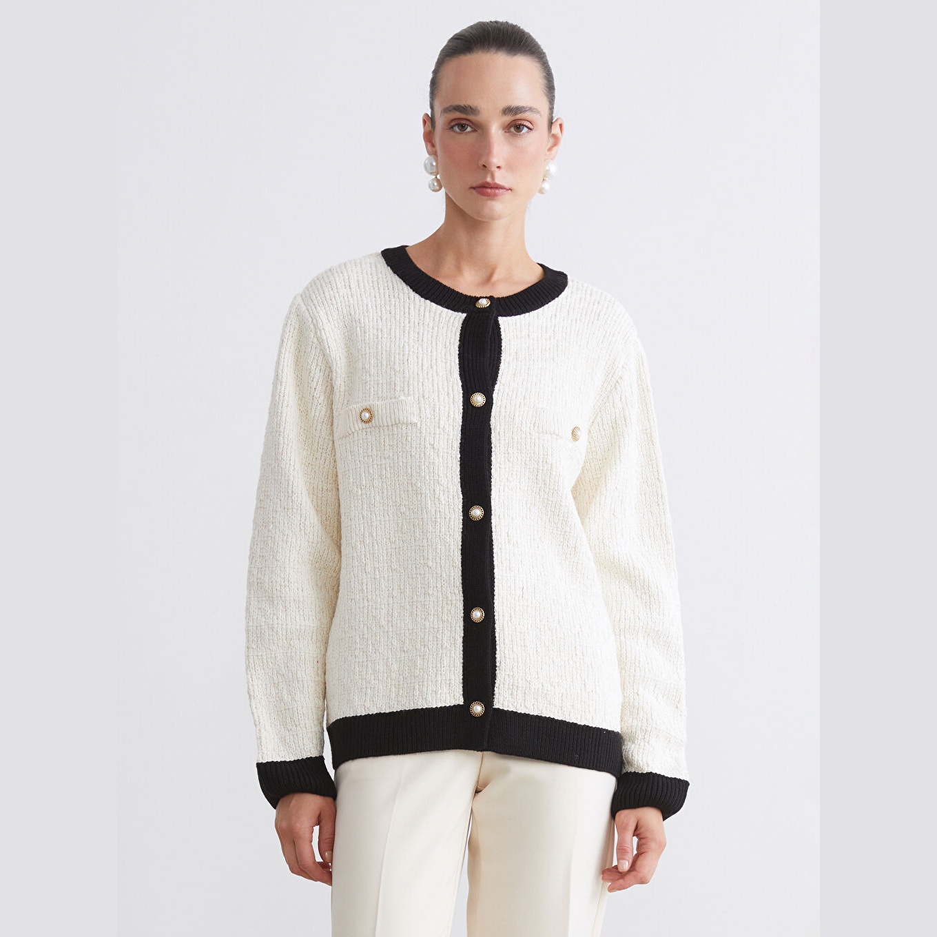 كارديغان نسائي بياقة دائرية من LCWAIKIKI Classic – إكرو (قصة Standart & Regular، خامة Triko سميكة، تصميم سادة، ضمن مجموعة Büyük Beden)
