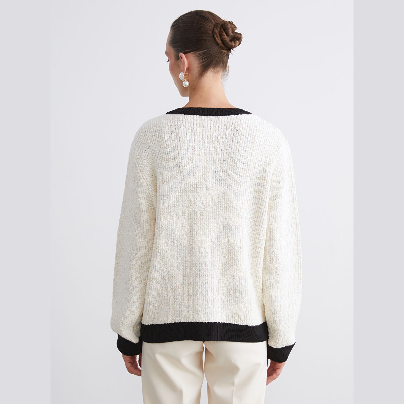 كارديغان شتوي أنيق من مجموعة LCWAIKIKI Classic بلون إكرو حيادي، مصمم بياقة دائرية (Bisiklet Yaka) كلاسيكية، أكمام طويلة، قصة Standart & Regular توفر مظهرًا متناسقًا ومريحًا، تصميم سادة بدون نقوش، خامة Triko سميكة بتركيبة متوازنة من %45 قطن، %45 أكريليك، %10 بوليستر تمنحك دفئًا ونعومة في آنٍ واحد، بطول يُقاس من الكتف، مثالي للتنسيق مع بناطيل قماش أو تنانير لإطلالة يومية أو مكتبية أنيقة، ويندرج ضمن مجموعة Büyük Beden للمقاسات الكبيرة.
