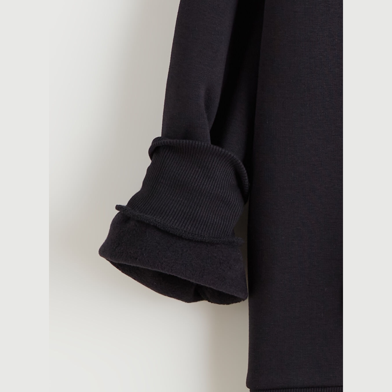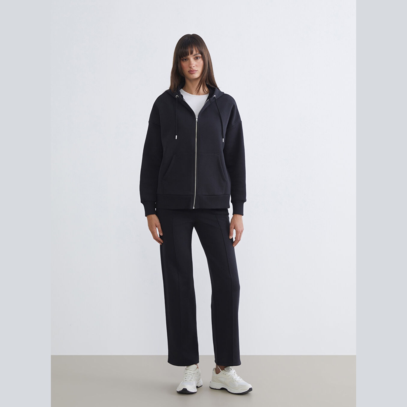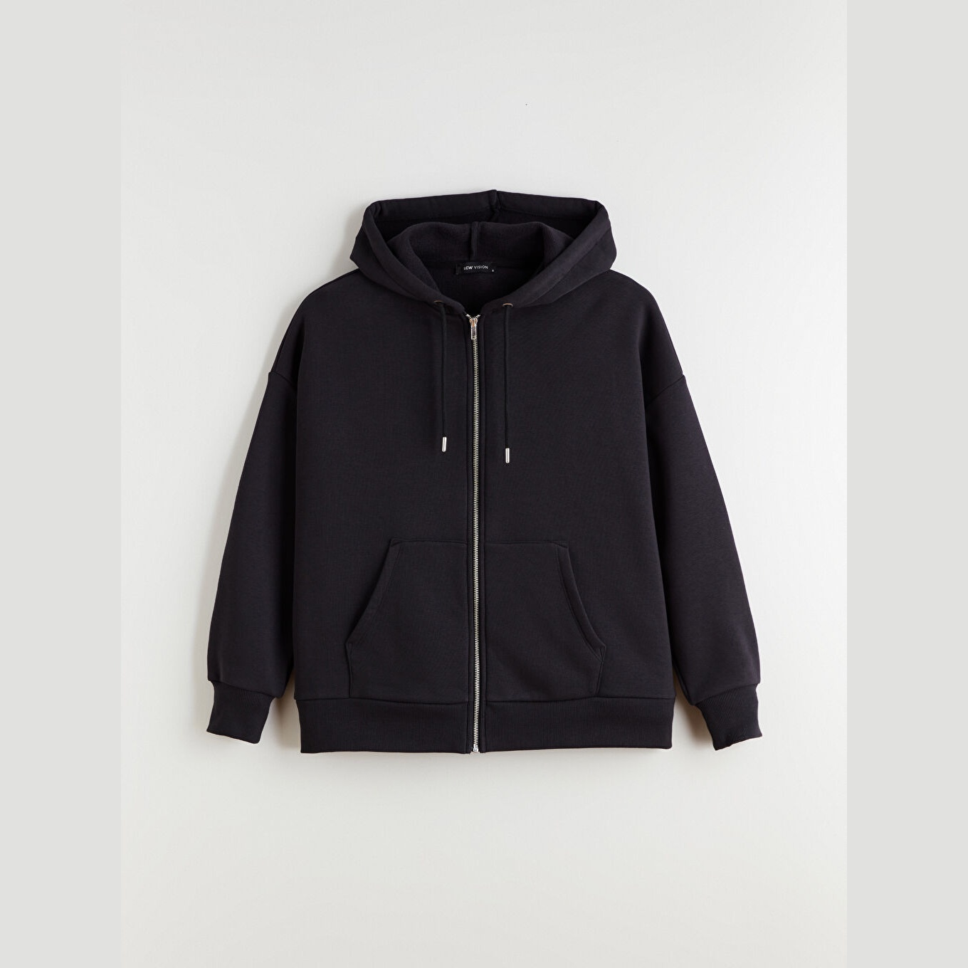 سويت شيرت نسائي بسحاب وياقة بقبعة من LCW Vision – أسود (قصة واسعة، خامة قطنية سميكة، تصميم سادة، ضمن مجموعة المقاسات الكبيرة)