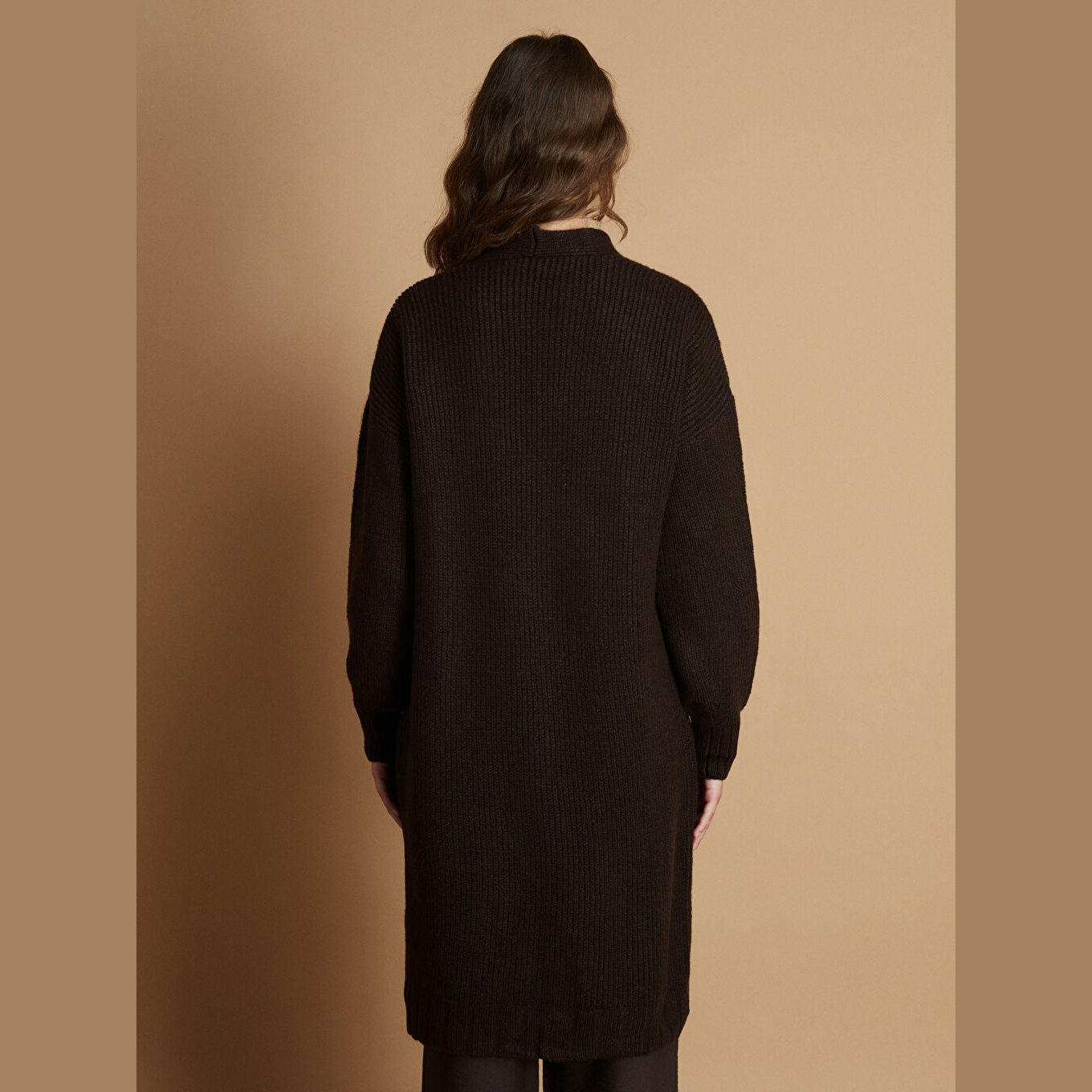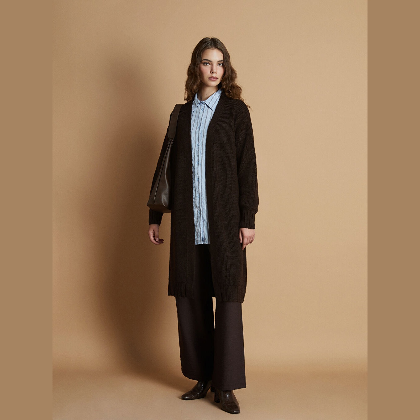 كارديغان نسائي بياقة شال من LCW Modest – بني (قصة واسعة، خامة تريكو متوسطة السماكة، تصميم سادة، طول متوسط، ضمن مجموعة المحتشمات)