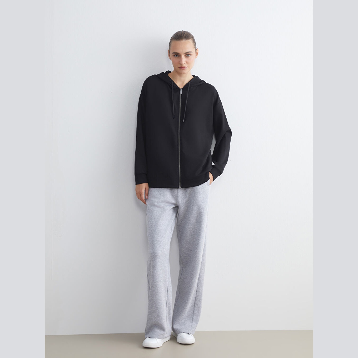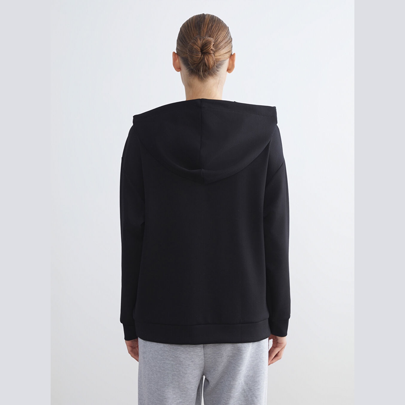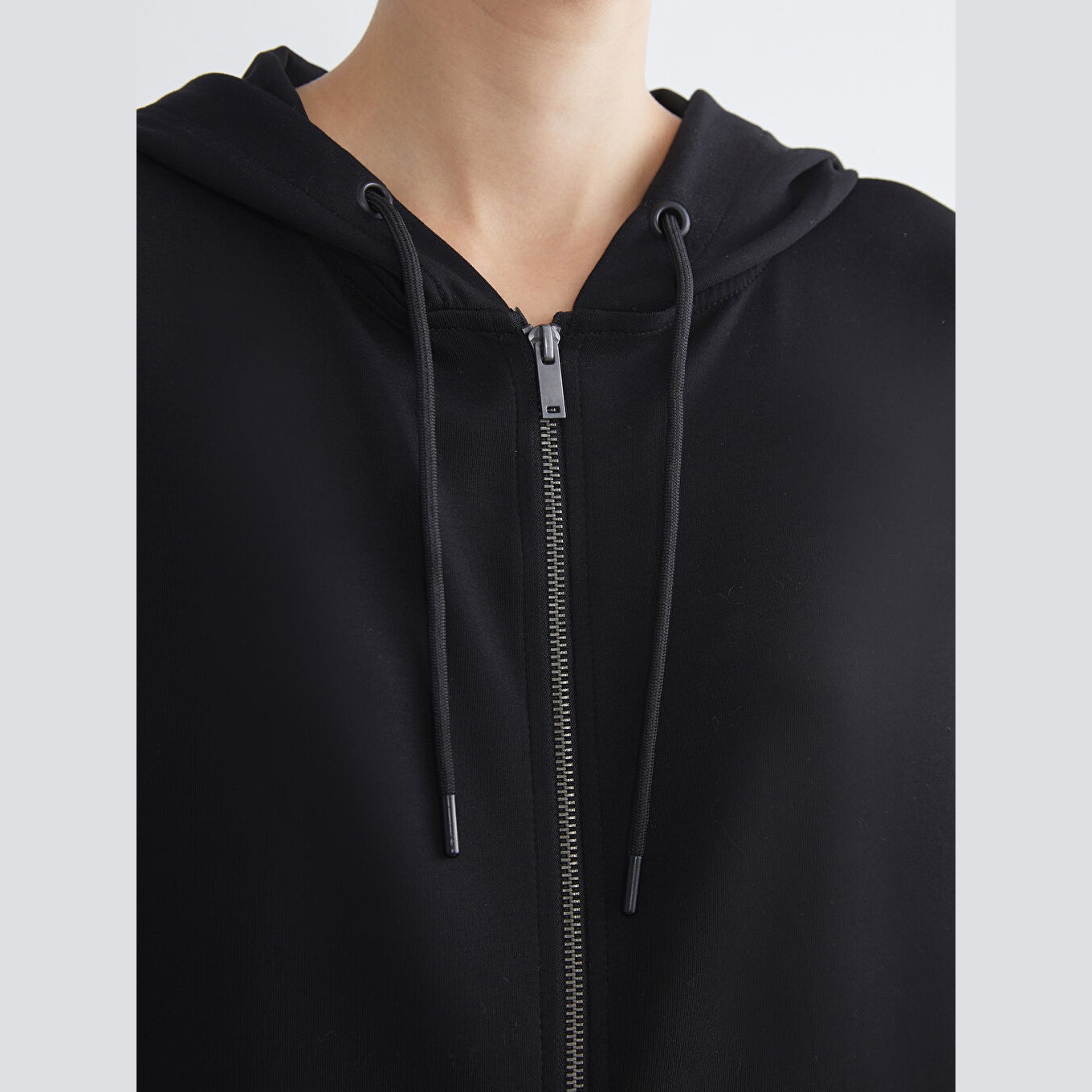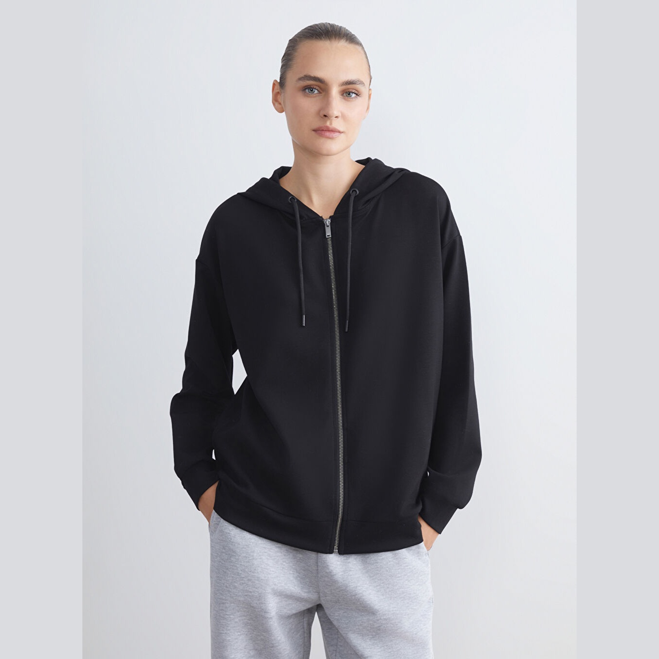 سويت شيرت نسائي بسحاب وياقة بقبعة من LCW Classic – أسود (قصة واسعة، خامة مرنة متوسطة السماكة، تصميم سادة، ضمن مجموعة المقاسات الكبيرة)