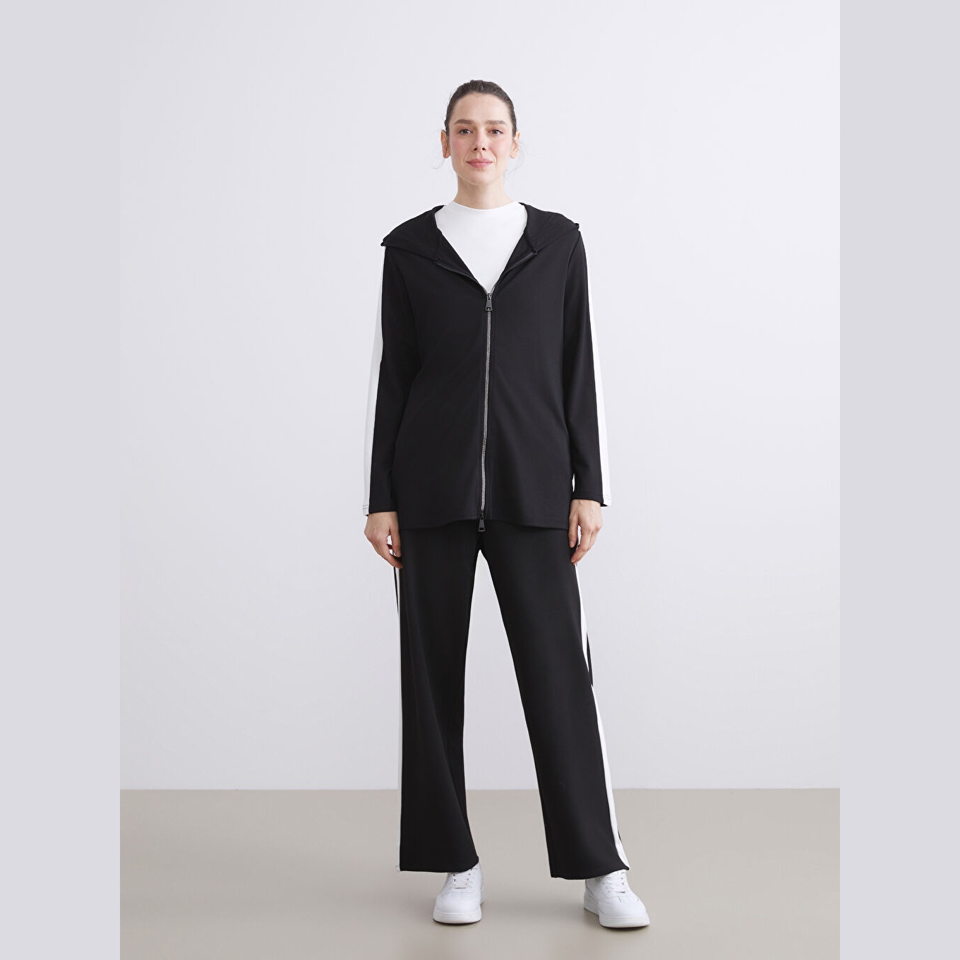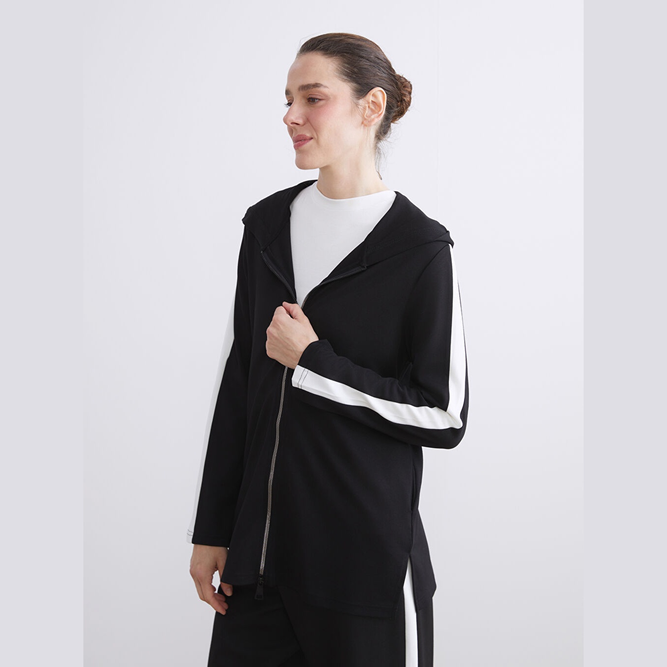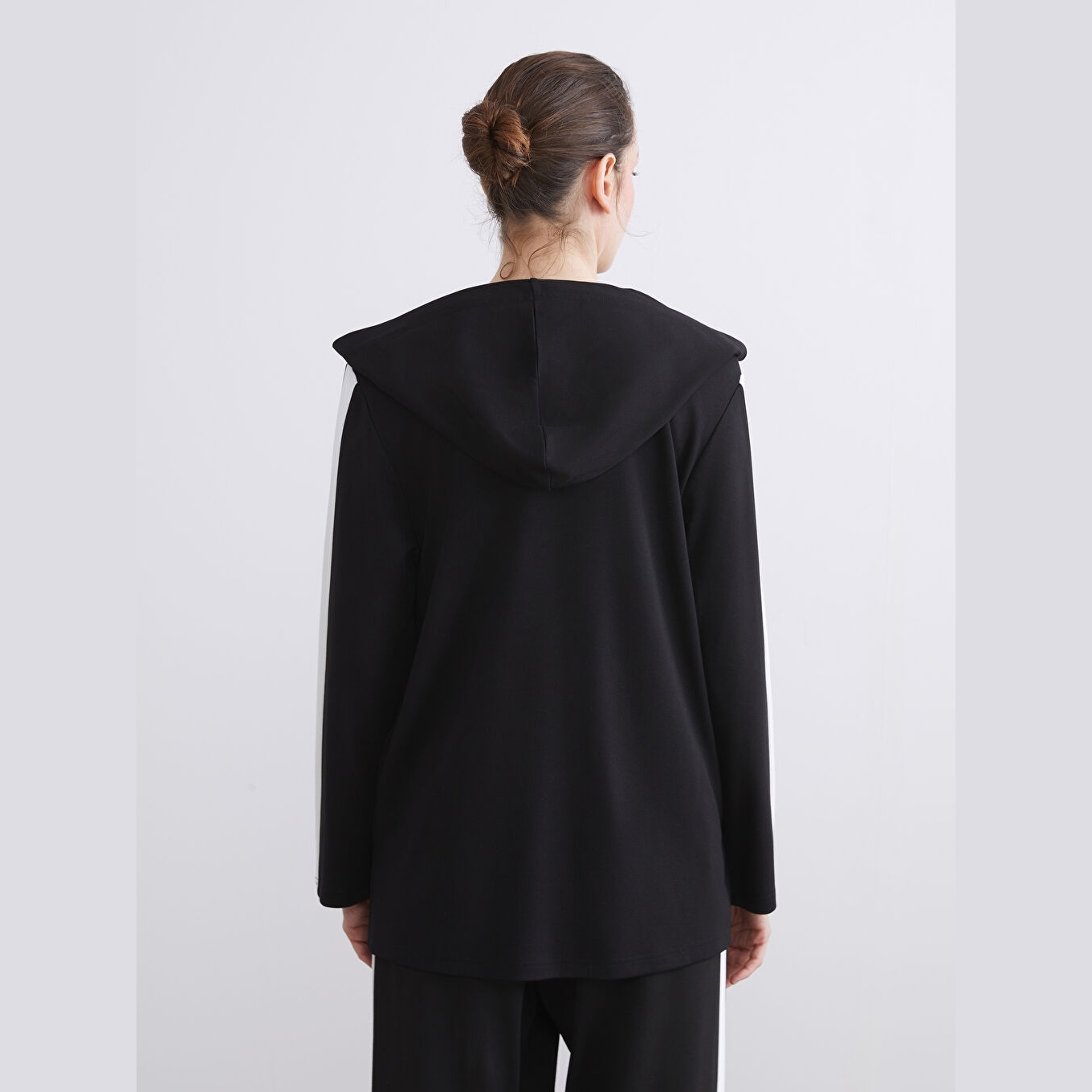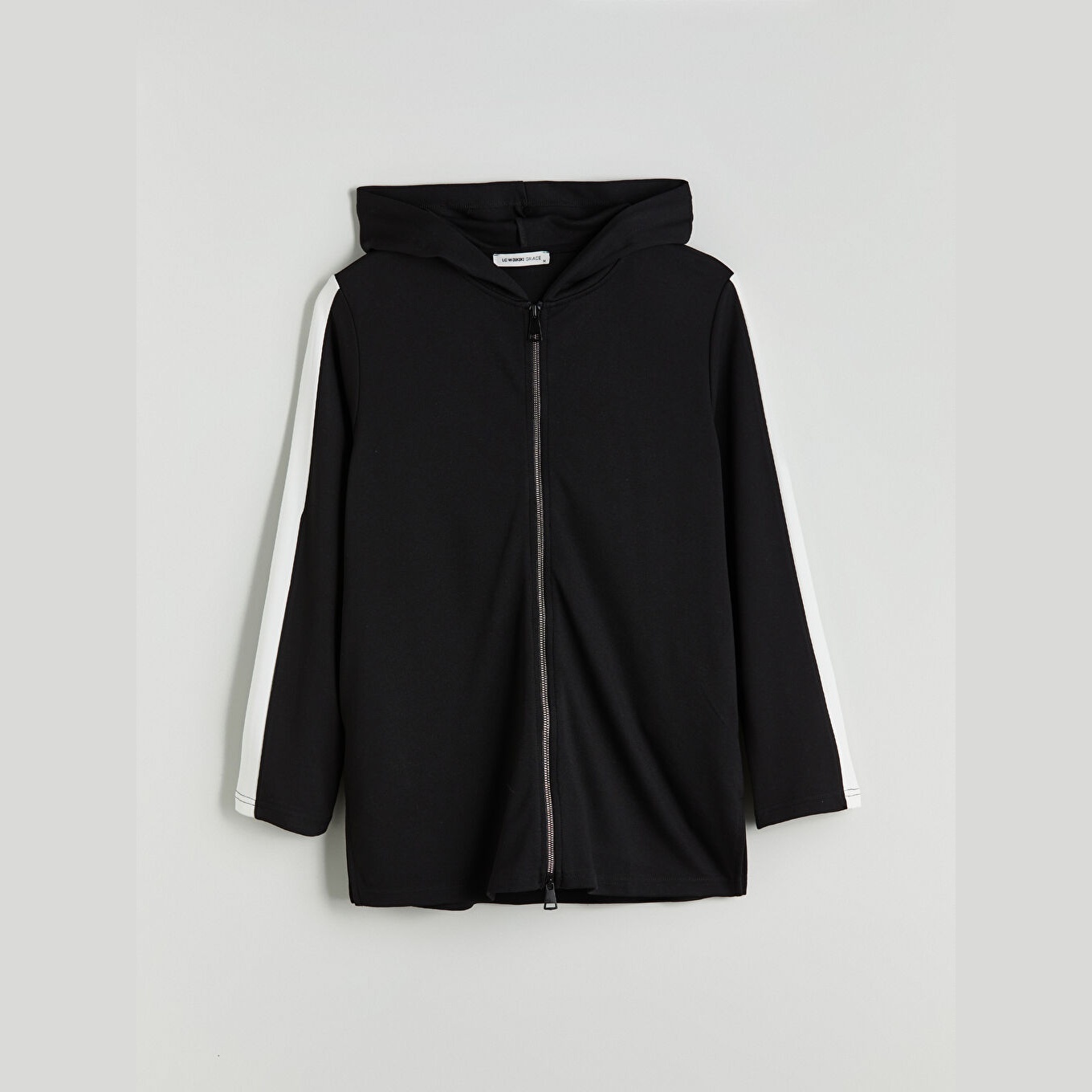 كارديغان نسائي بسحاب وياقة بقبعة من LCW Grace – أسود (قصة واسعة، خامة مرنة متوسطة السماكة، تصميم سادة، ضمن مجموعة المقاسات الكبيرة)