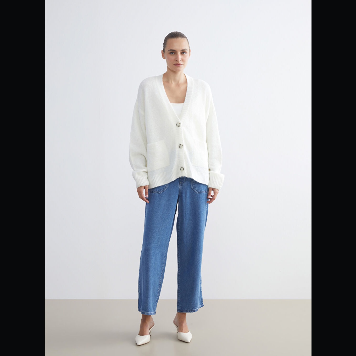 كارديغان أنيق من مجموعة LCW Classic بلون إكرو حيادي، مصمم بياقة V تضيف لمسة أنثوية وانسيابية، مزود بأزرار أمامية لإغلاق عملي وأنيق، قصة واسعة توفر راحة مثالية ومظهرًا محتشمًا، خامة تريكو دافئة بتركيبة فاخرة من %47 أكريليك، %42 بولياميد، %9 صوف، %2 إيلاستان، بطول يُقاس من الكتف، مثالي للإطلالات الخريفية والشتوية، ويندرج ضمن مجموعة المقاسات الكبيرة.
