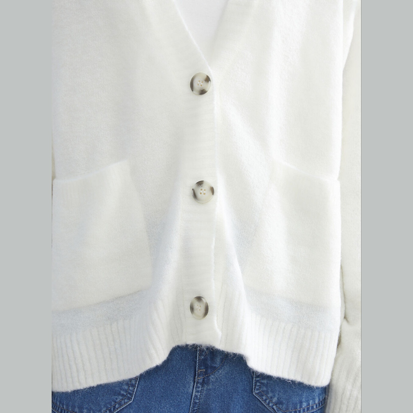 كارديغان نسائي بياقة V وأزرار أمامية من LCW Classic – إكرو (قصة واسعة، خامة تريكو دافئة، تصميم سادة، ضمن مجموعة المقاسات الكبيرة)