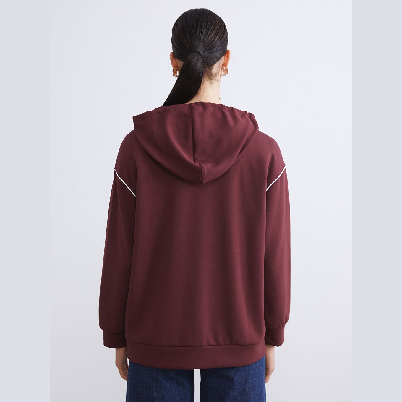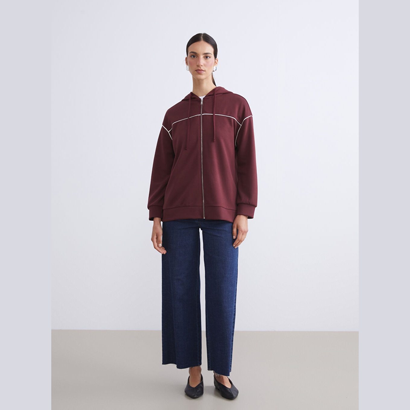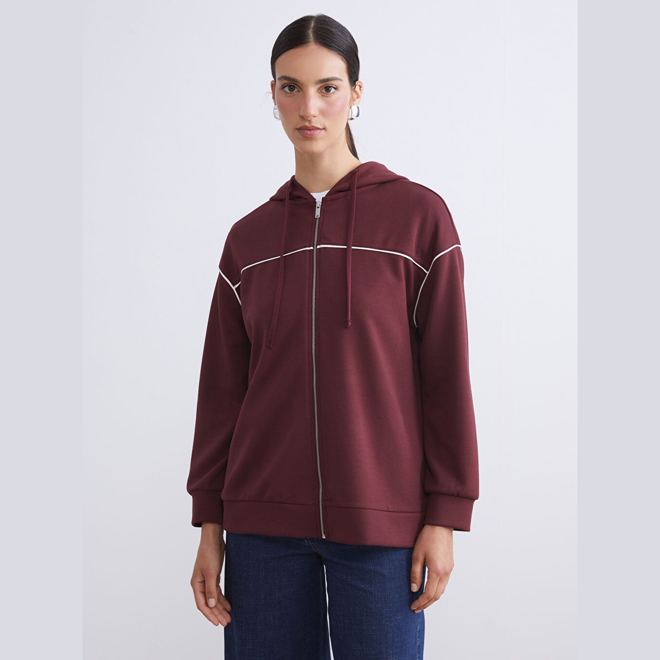 سويت شيرت نسائي بسحاب وياقة بقبعة من LCW Modest – بوردو (قصة واسعة، خامة إنترلوك خفيفة، تصميم سادة، ضمن مجموعة المحتشمات)