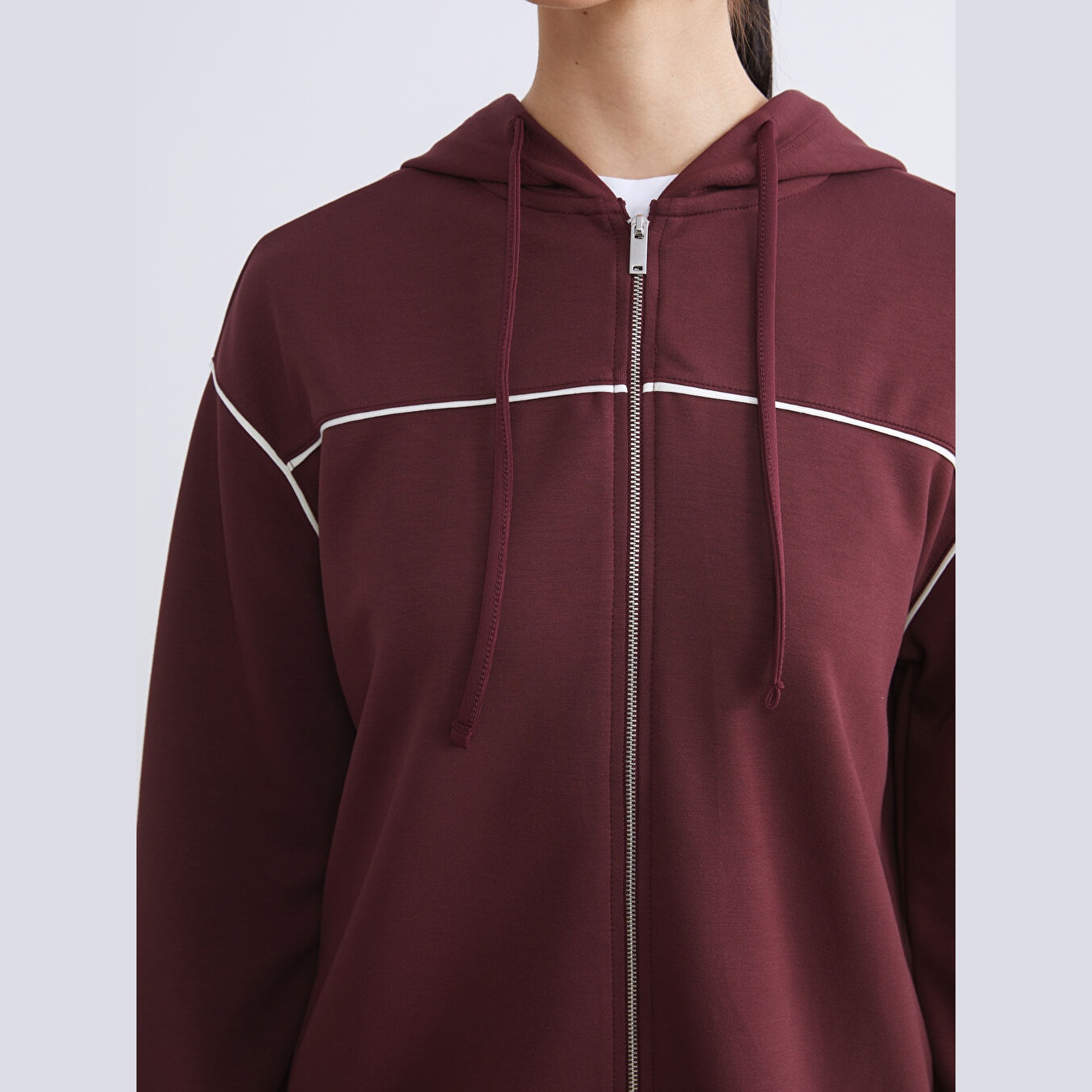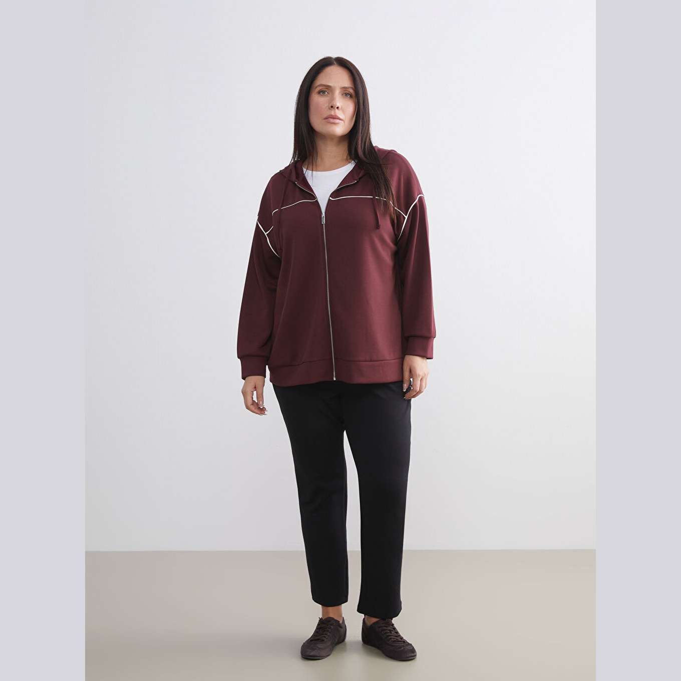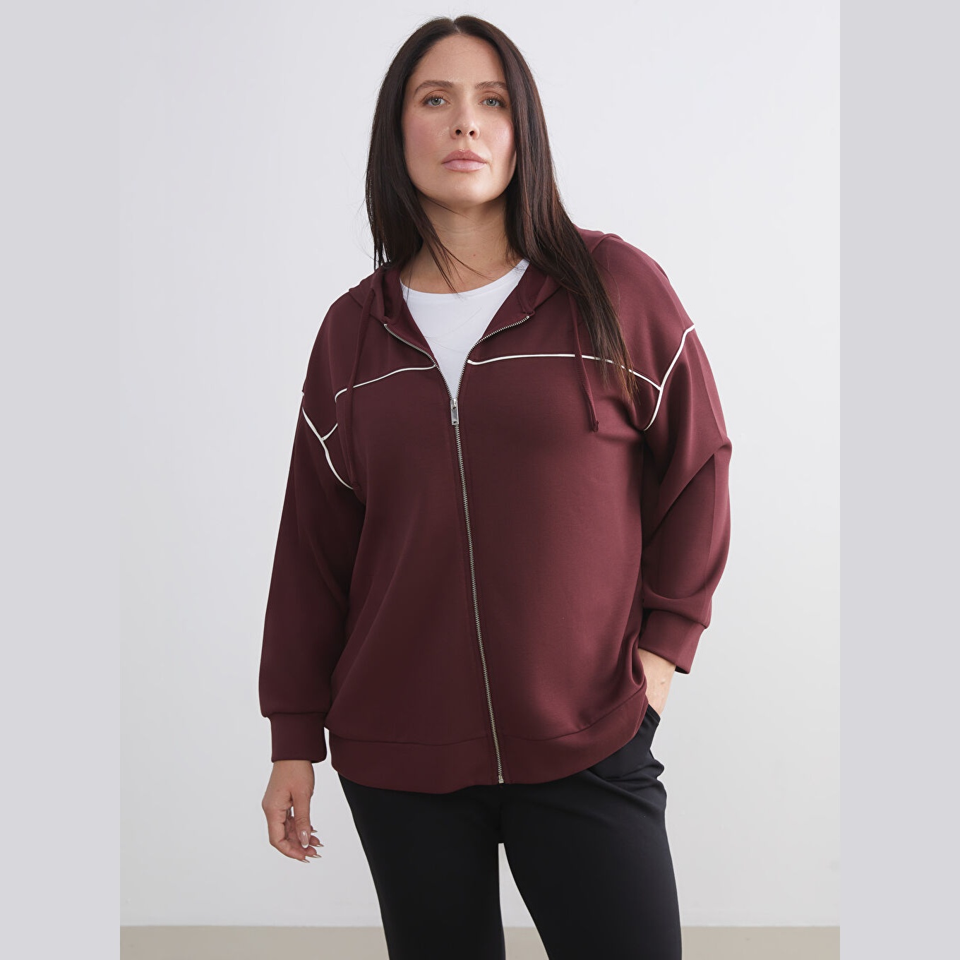 سويت شيرت نسائي بسحاب وياقة بقبعة من LCW Modest – بوردو (قصة واسعة، خامة إنترلوك خفيفة، تصميم سادة، ضمن مجموعة المحتشمات)