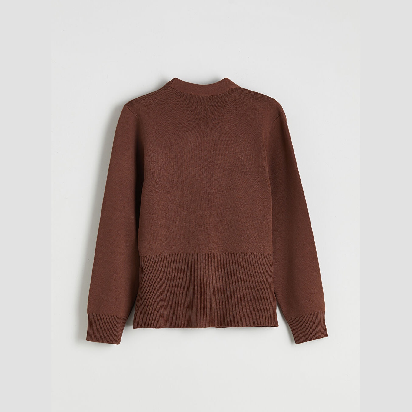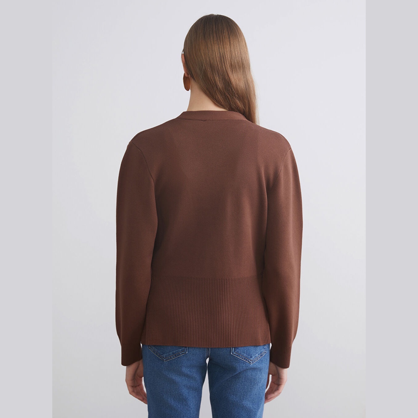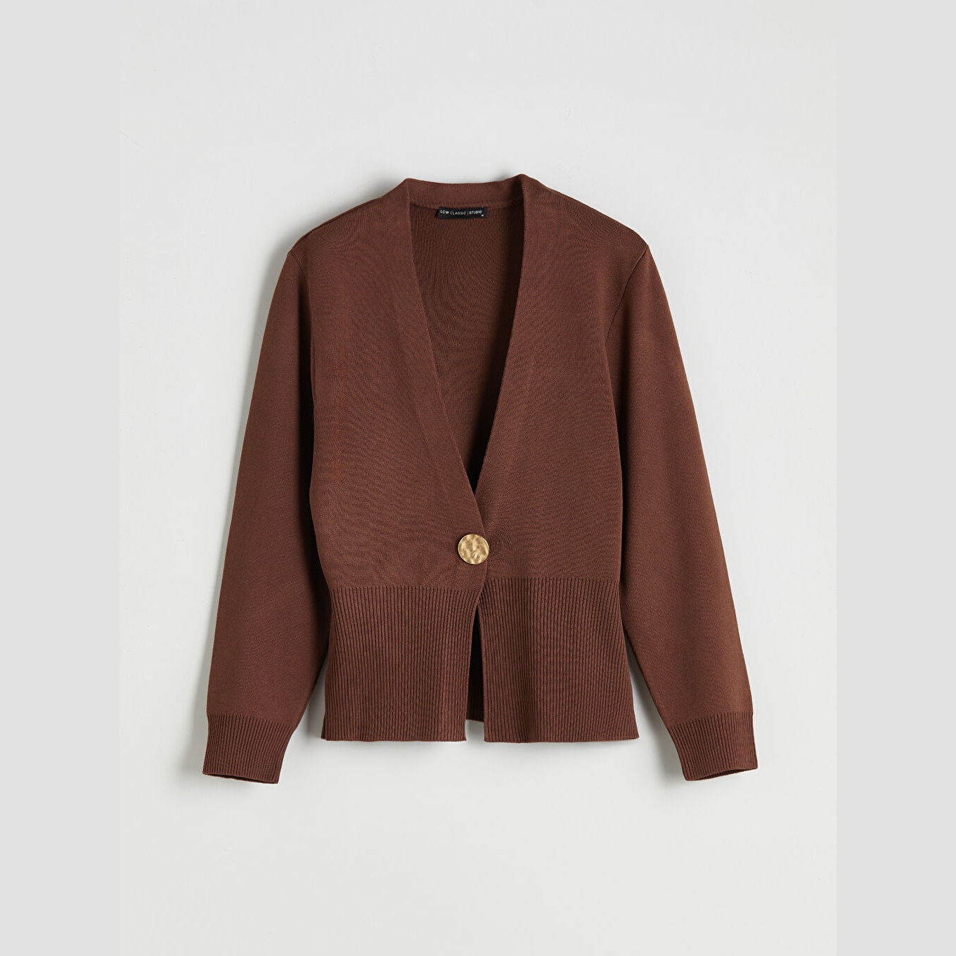 كارديغان نسائي بياقة V وأزرار أمامية من LCW Classic – بني (قصة ضيقة، خامة تريكو ناعمة، تصميم سادة أنيق)