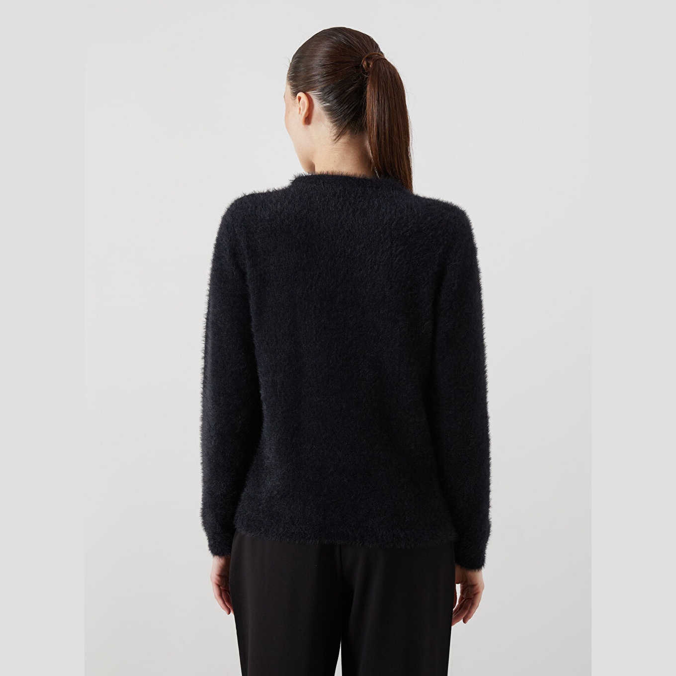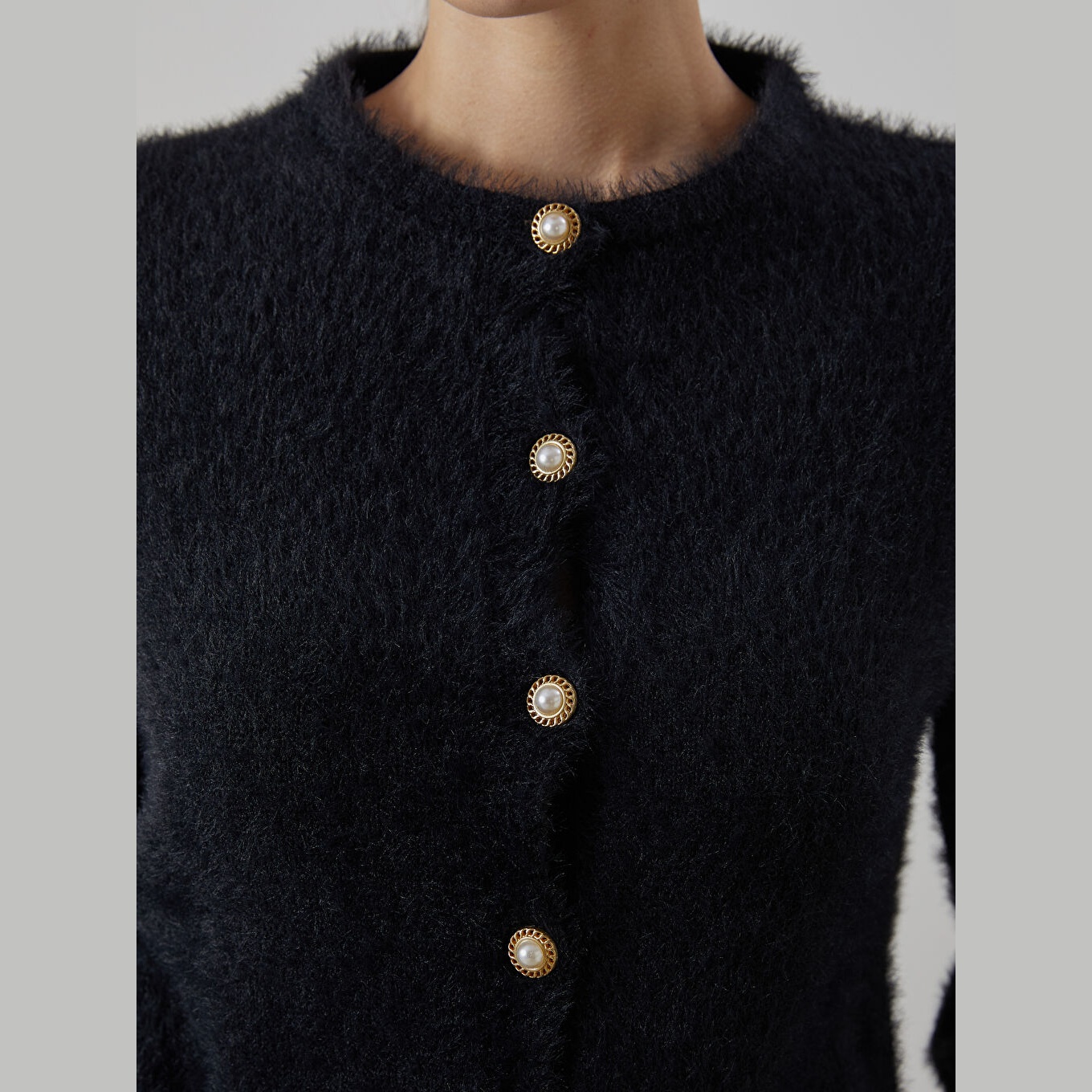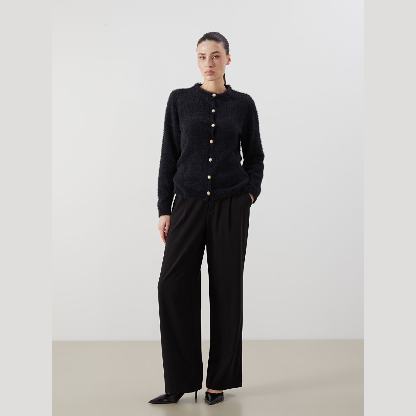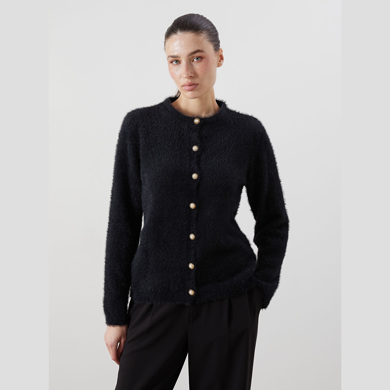 كارديغان نسائي بياقة دائرية من LCW Classic – أسود (قصة ضيقة، خامة تريكو سميكة، تصميم سادة بأزرار أمامية)