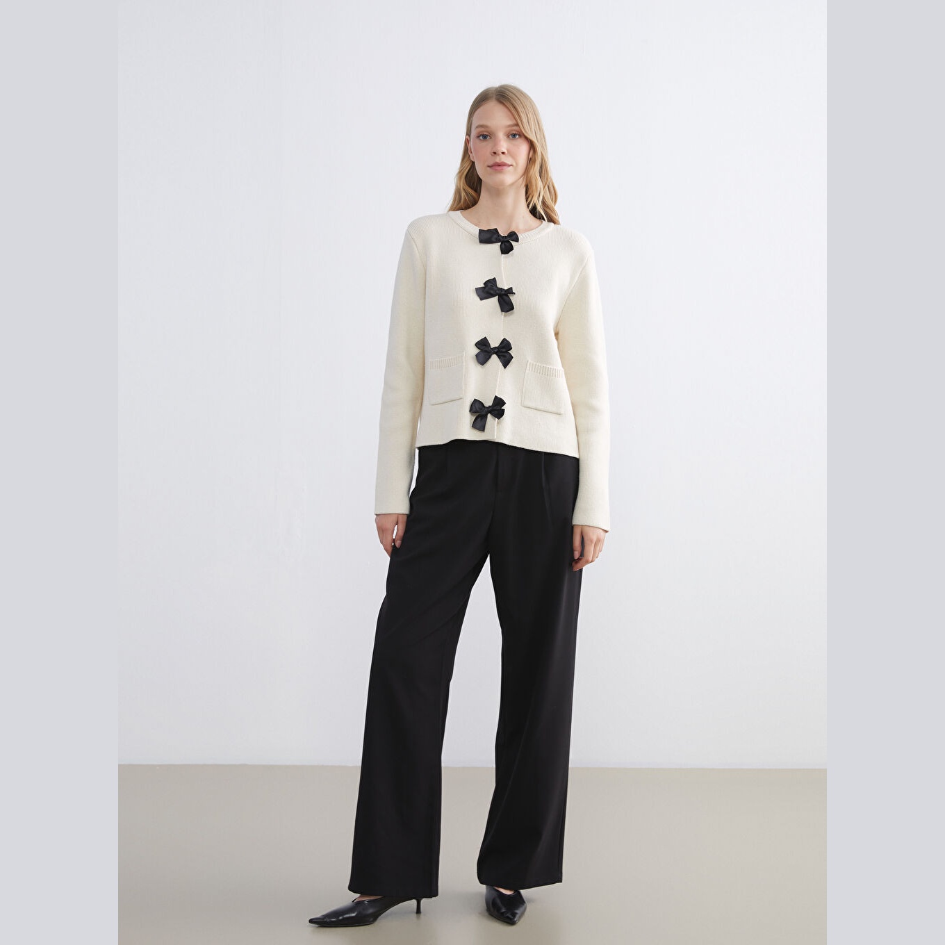 كارديغان نسائي بياقة دائرية مع ربطة أمامية من LCW Classic – إكرو (قصة ضيقة، خامة تريكو متوسطة السماكة، تصميم سادة أنثوي بلمسة قطنية)