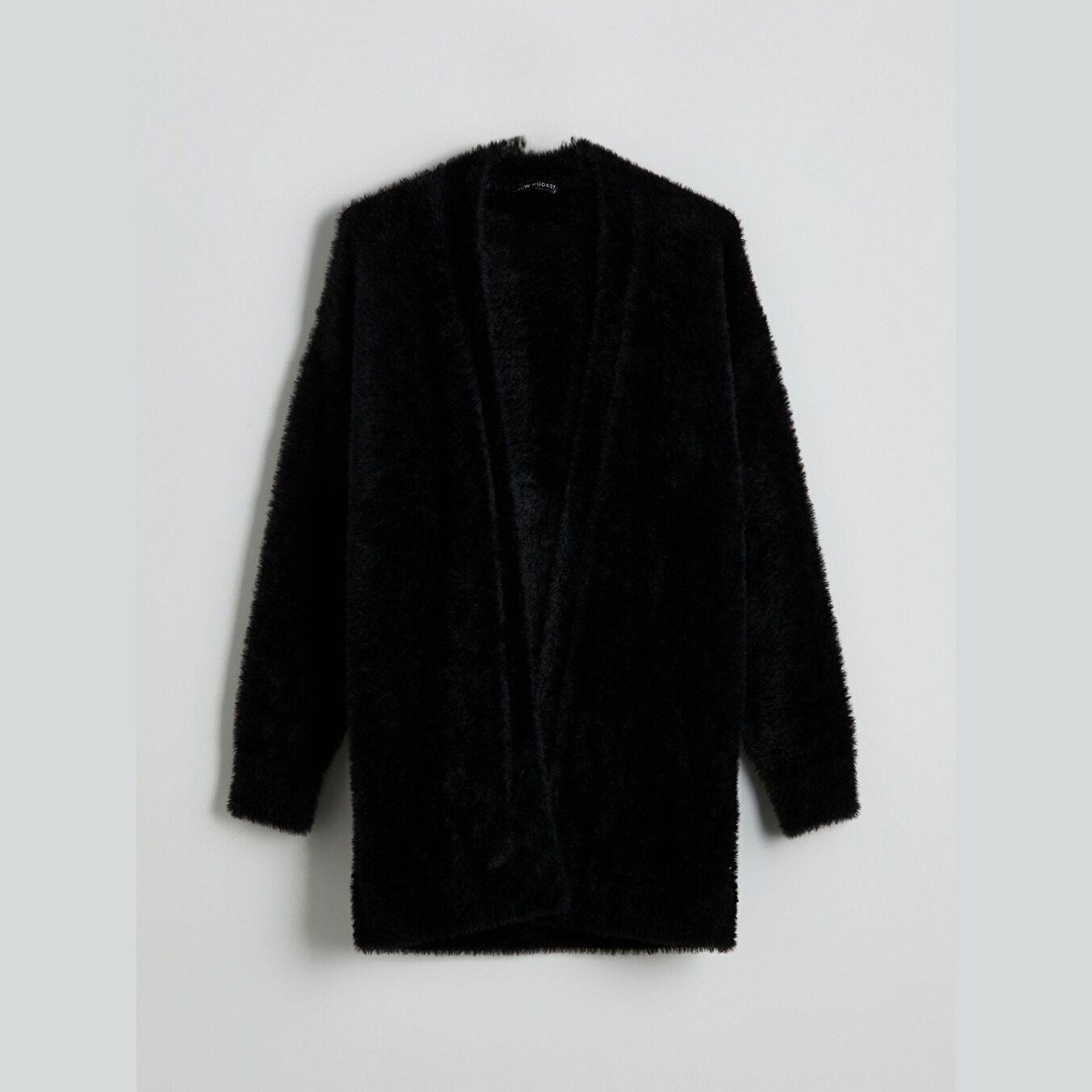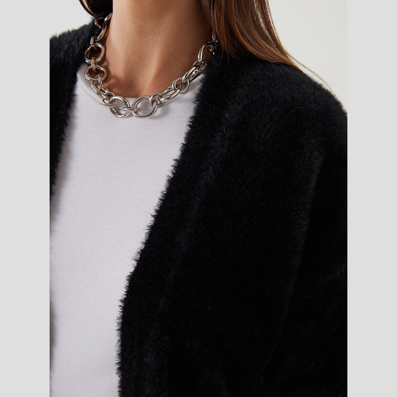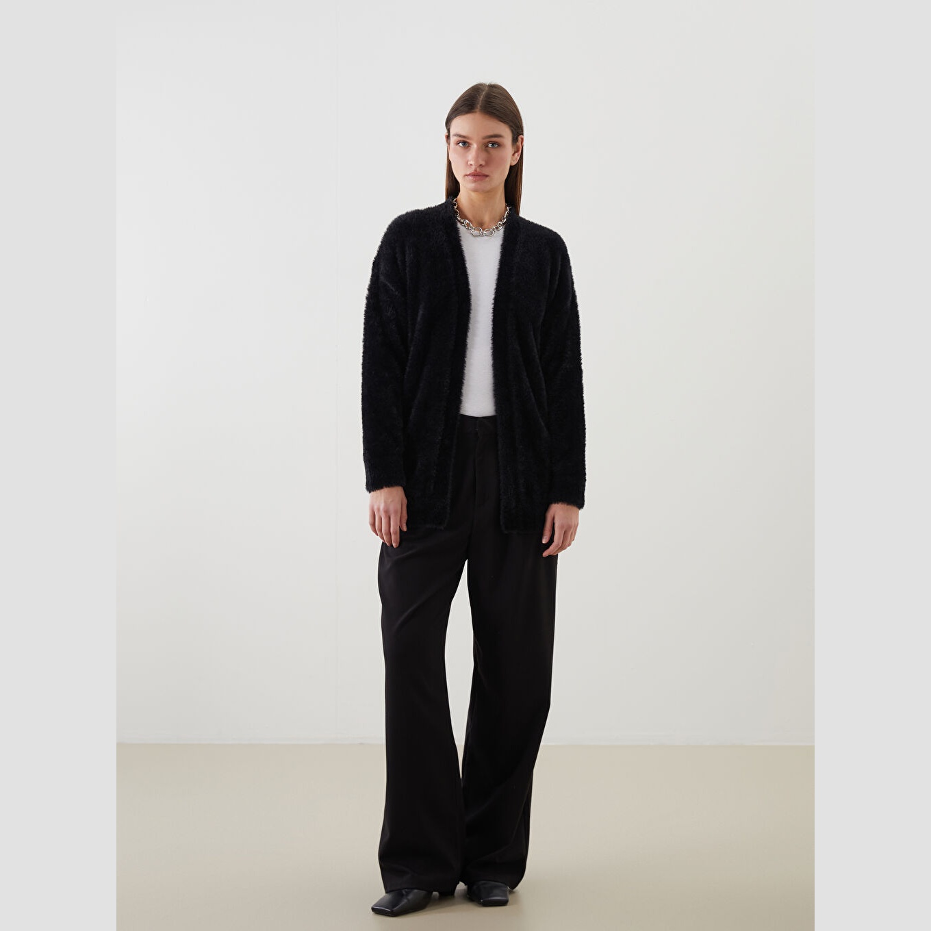 كارديغان نسائي بياقة شال من LCW Modest – أسود (قصة واسعة، خامة بيليوش سميكة، تصميم سادة طويل، ضمن مجموعة المحتشمات)