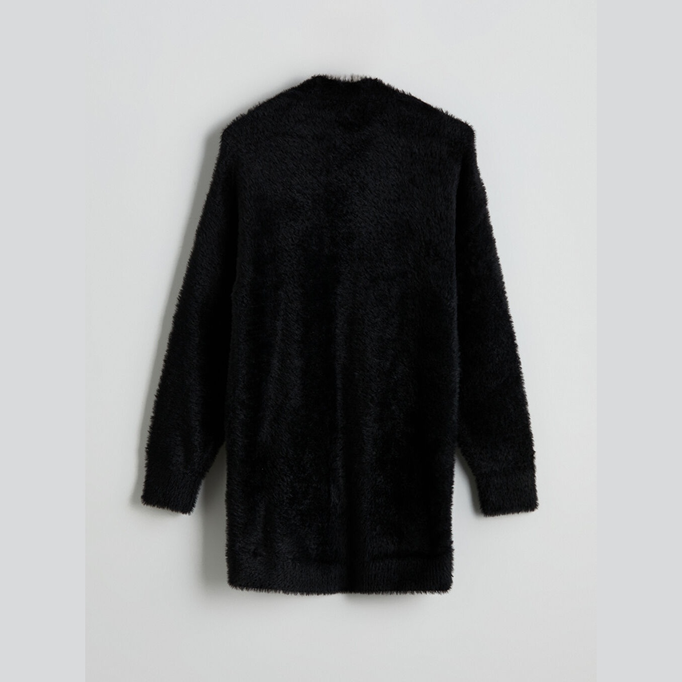 كارديغان شتوي فاخر من مجموعة LCW Modest بلون أسود أنيق، مصمم بياقة شال تضيف لمسة راقية وانسيابية، قصة واسعة (Loose Fit) توفر راحة مثالية ومظهرًا محتشمًا، خامة بيليوش سميكة مصنوعة من %100 بوليستر تمنحك دفئًا ونعومة فائقة، تصميم سادة بدون نقوش، بطول يُقاس من الكتف، مثالي للإطلالات اليومية أو المنزلية أو المكتبية، متوفر بمقاسات من XS حتى 2XL، ويندرج ضمن مجموعة Tesettür Giyim التي توازن بين العملية والرقي.
