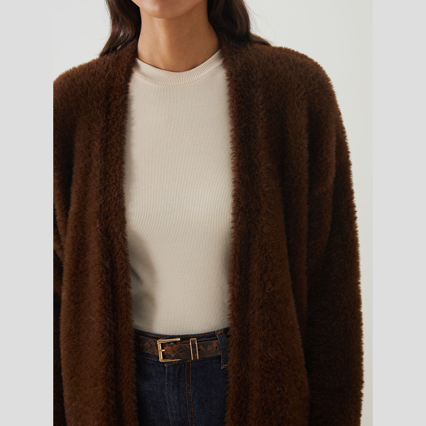 كارديغان شتوي فاخر من مجموعة LCW Modest بلون بيج حيادي، مصمم بياقة شال تضيف لمسة راقية وانسيابية، قصة واسعة (Loose Fit) تمنحك راحة مثالية ومظهرًا محتشمًا، خامة بيليوش سميكة مصنوعة من %100 بوليستر توفر دفئًا ونعومة فائقة، تصميم سادة بدون نقوش، بطول الورك (Omuz hizasından ölçülür)، مثالي للإطلالات اليومية أو المنزلية أو المكتبية، متوفر بمقاسات من XS حتى 2XL، ويندرج ضمن مجموعة Tesettür Giyim التي توازن بين العملية والرقي.