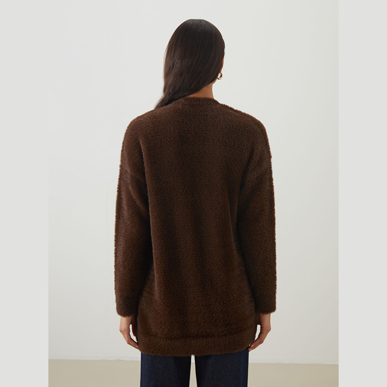 كارديغان نسائي بياقة شال من LCW Modest – بيج (قصة واسعة، خامة بيليوش سميكة، تصميم سادة بطول الورك، ضمن مجموعة المحتشمات)