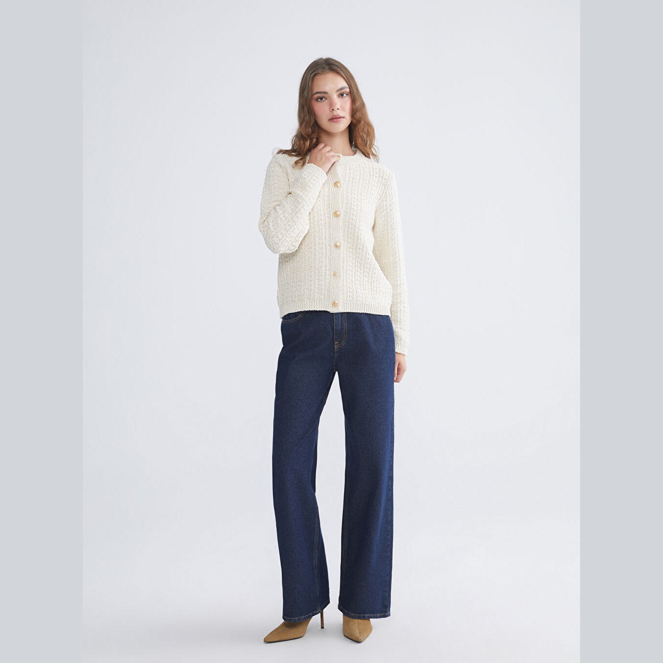 كارديغان شتوي أنيق من مجموعة LCW Modest بلون إكرو حيادي، مصمم بياقة دائرية تمنحك مظهرًا بسيطًا ومرتبًا، قصة قياسية (Regular Fit) توفر راحة مثالية، خامة تريكو متوسطة السماكة بنقشة بارزة من نفس القماش تضيف لمسة فنية ناعمة، مكونة من %59 بوليستر، %40 قطن، %1 خيط معدني، تصميم قصير يُقاس من الكتف، مزود بأزرار أمامية عملية، مثالي للإطلالات اليومية أو المكتبية أو المنزلية، متوفر بمقاسات من XS حتى XL، ويندرج ضمن مجموعة Tesettür Giyim التي توازن بين العملية والرقي.