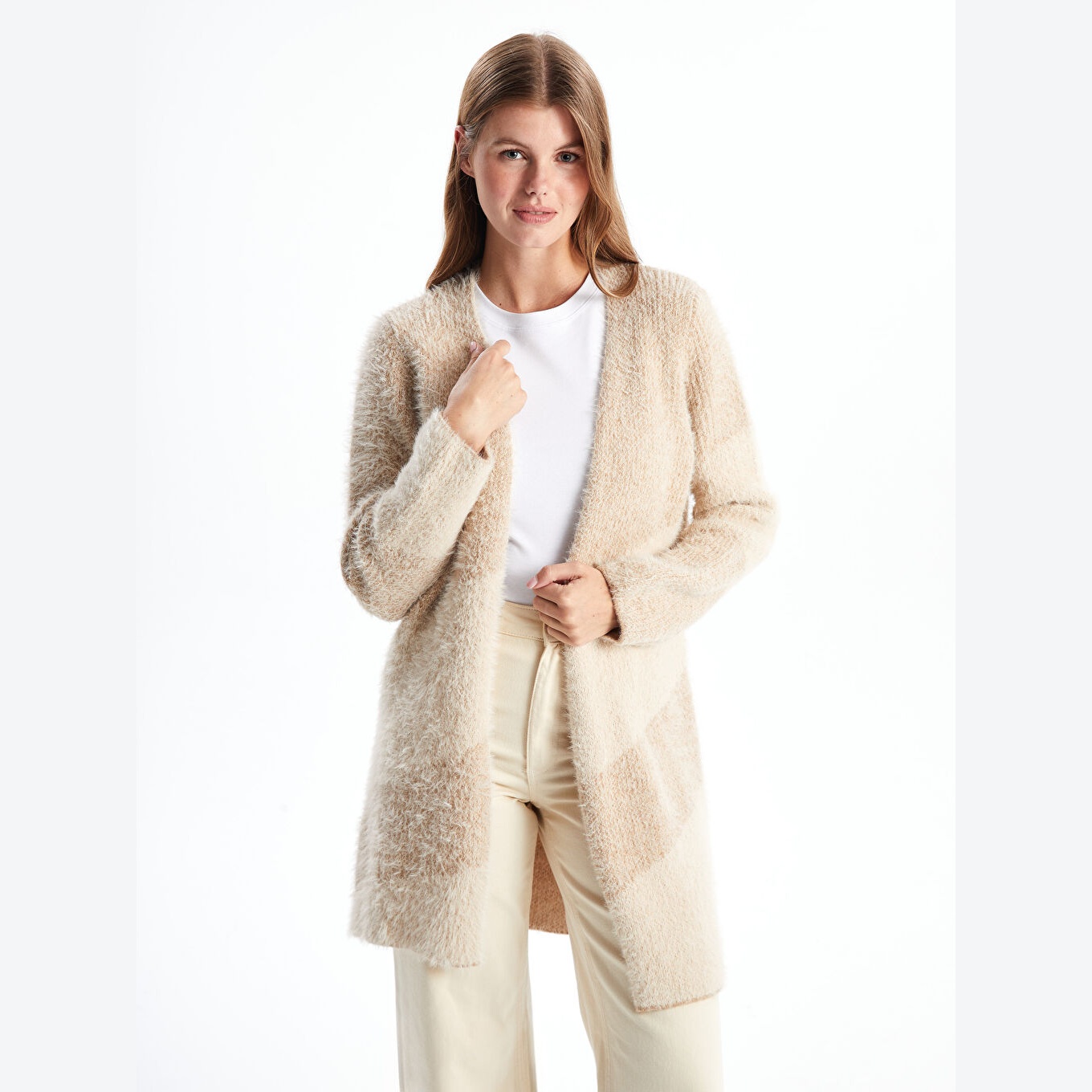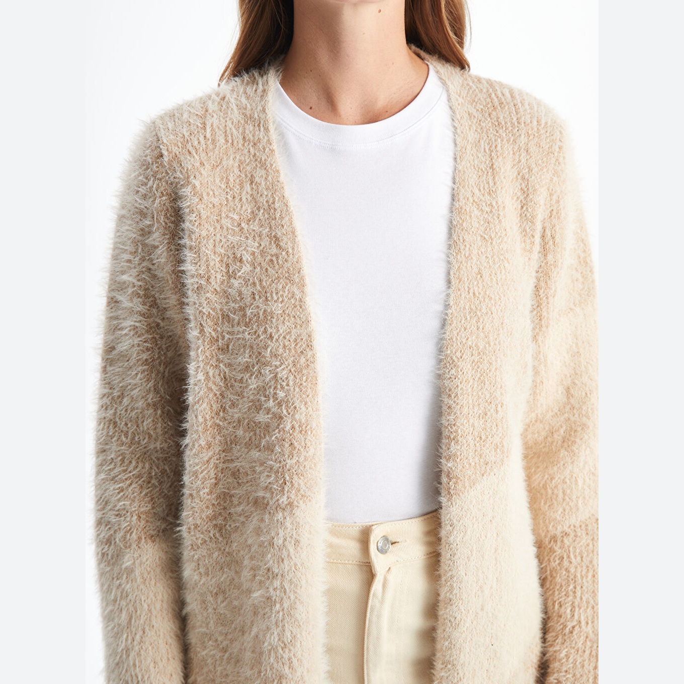 كارديغان شتوي أنيق من مجموعة LCW Classic بلون بني مع تفاصيل بلوك لوني متداخل تضيف لمسة عصرية، مصمم بياقة شال تمنحك مظهرًا راقيًا وانسيابيًا، قصة قياسية (Regular Fit) توفر راحة مثالية، خامة تريكو سميكة بتركيبة ناعمة من %66 بوليستر و%34 أكريليك، مزود بتفاصيل ريبانا عند الأكمام والحافة السفلية، بطول يُقاس من الكتف، مثالي للإطلالات اليومية أو المكتبية أو المنزلية، متوفر بمقاسات من S حتى 3XL، ويندرج ضمن مجموعة Büyük Beden التي توازن بين العملية والراحة.