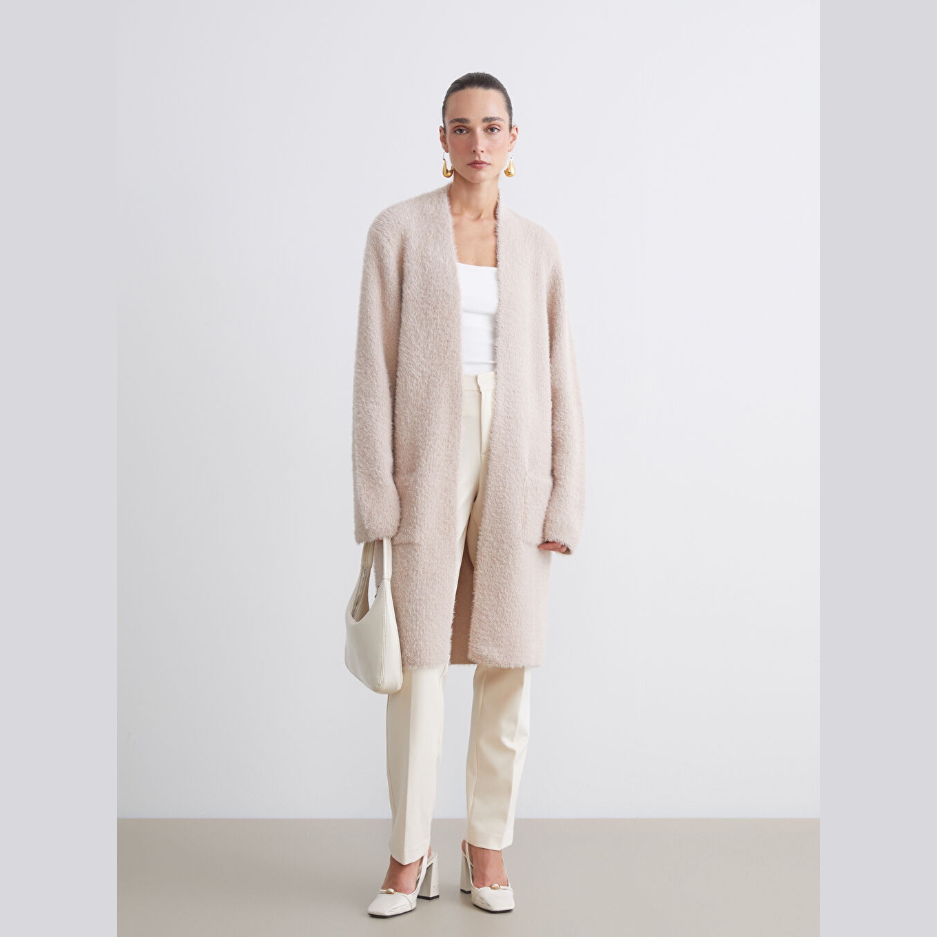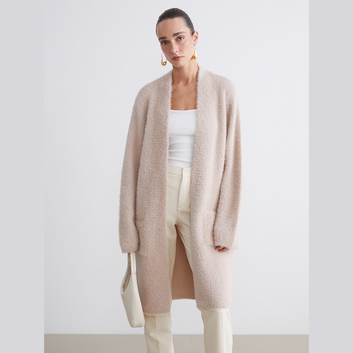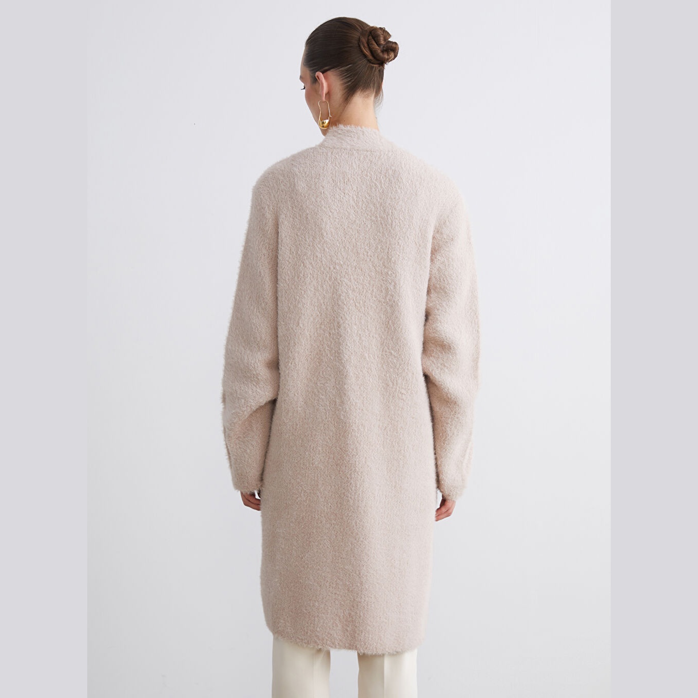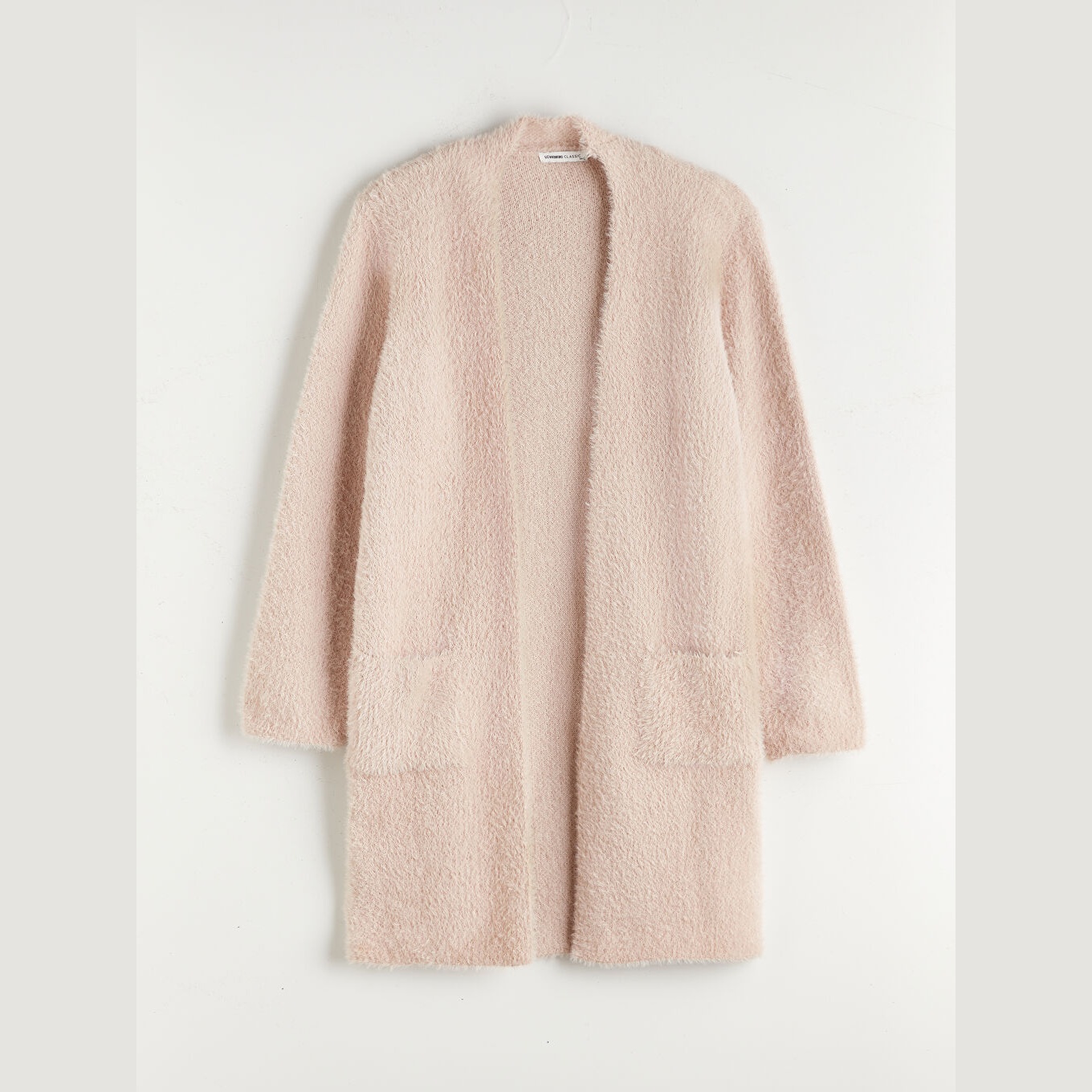 كارديغان نسائي بياقة شال من LCW Classic – وردي (قصة واسعة، خامة تريكو سميكة، تصميم سادة بطول ميدي، ضمن مجموعة LCW Classic)