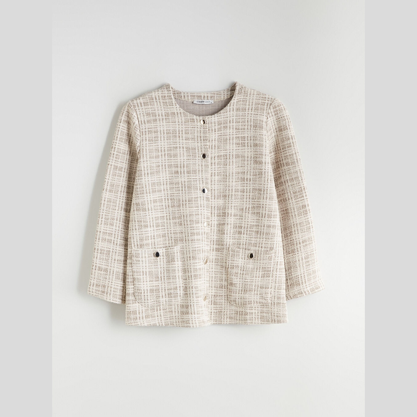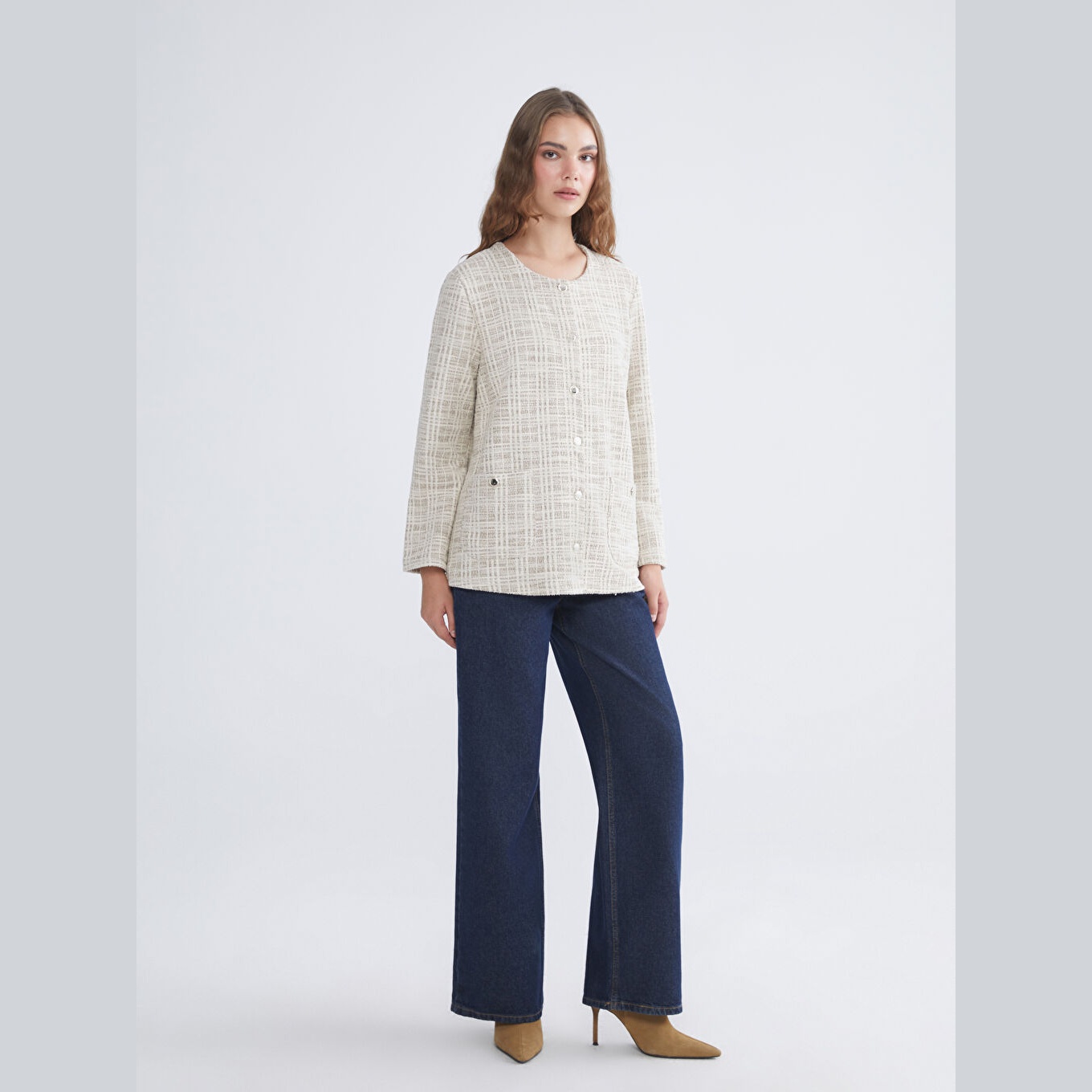 كارديغان أنيق بلون أبيض (Beyaz) من مجموعة LCW Grace، مزخرف بنقشة مربعات (Ekose) كلاسيكية تضيف لمسة عصرية، مصمم بياقة دائرية تمنحك مظهرًا بسيطًا ومرتبًا، قصة واسعة (Loose Fit) توفر راحة مثالية، خامة إنترلوك ناعمة بتركيبة متوازنة من %48 قطن، %43 بوليستر، %8 فيسكوز، %1 إيلاستان تمنحك مرونة ودفئًا، تصميم مريح بطول يُقاس من الكتف، ويندرج ضمن مجموعة Büyük Beden التي توازن بين العملية والراحة.