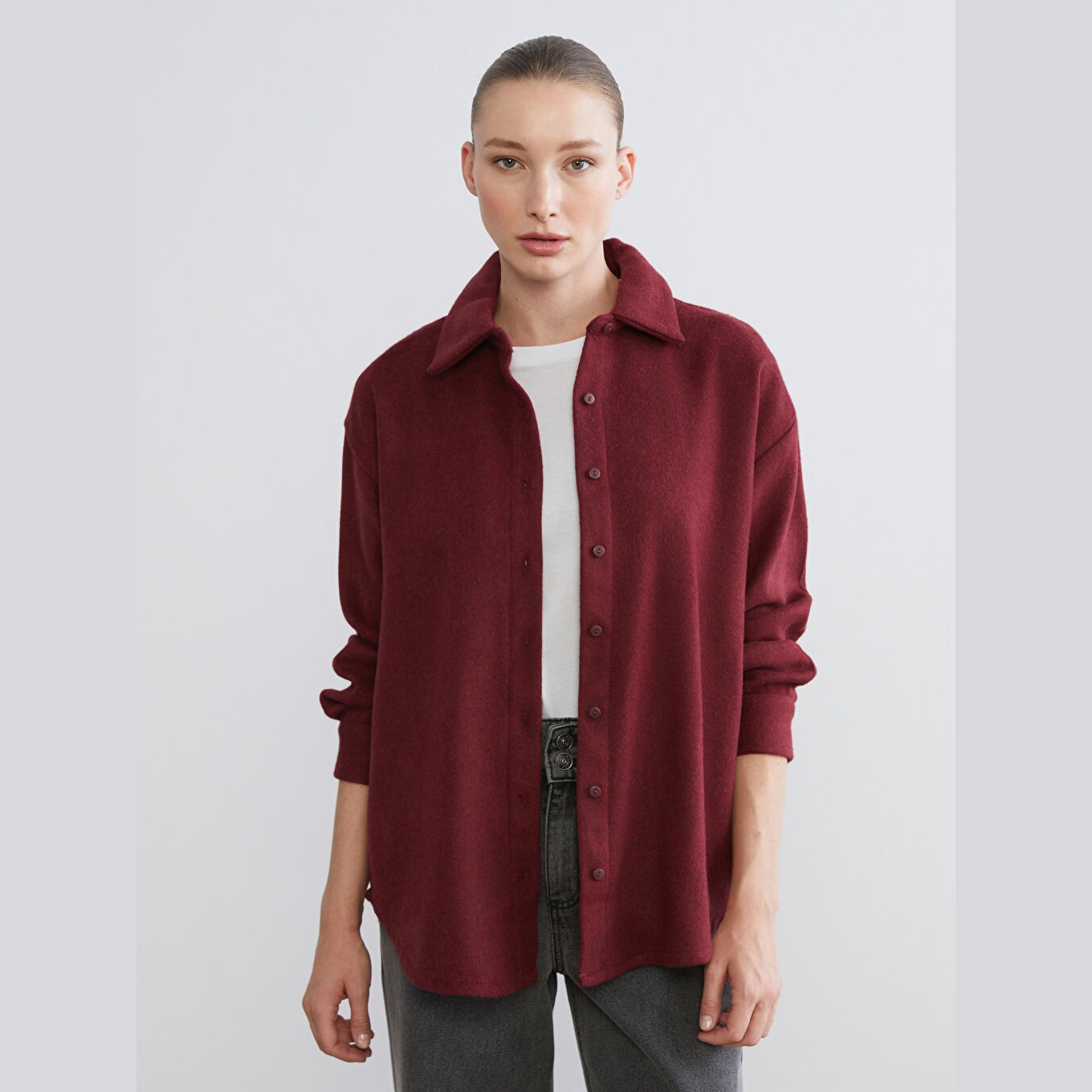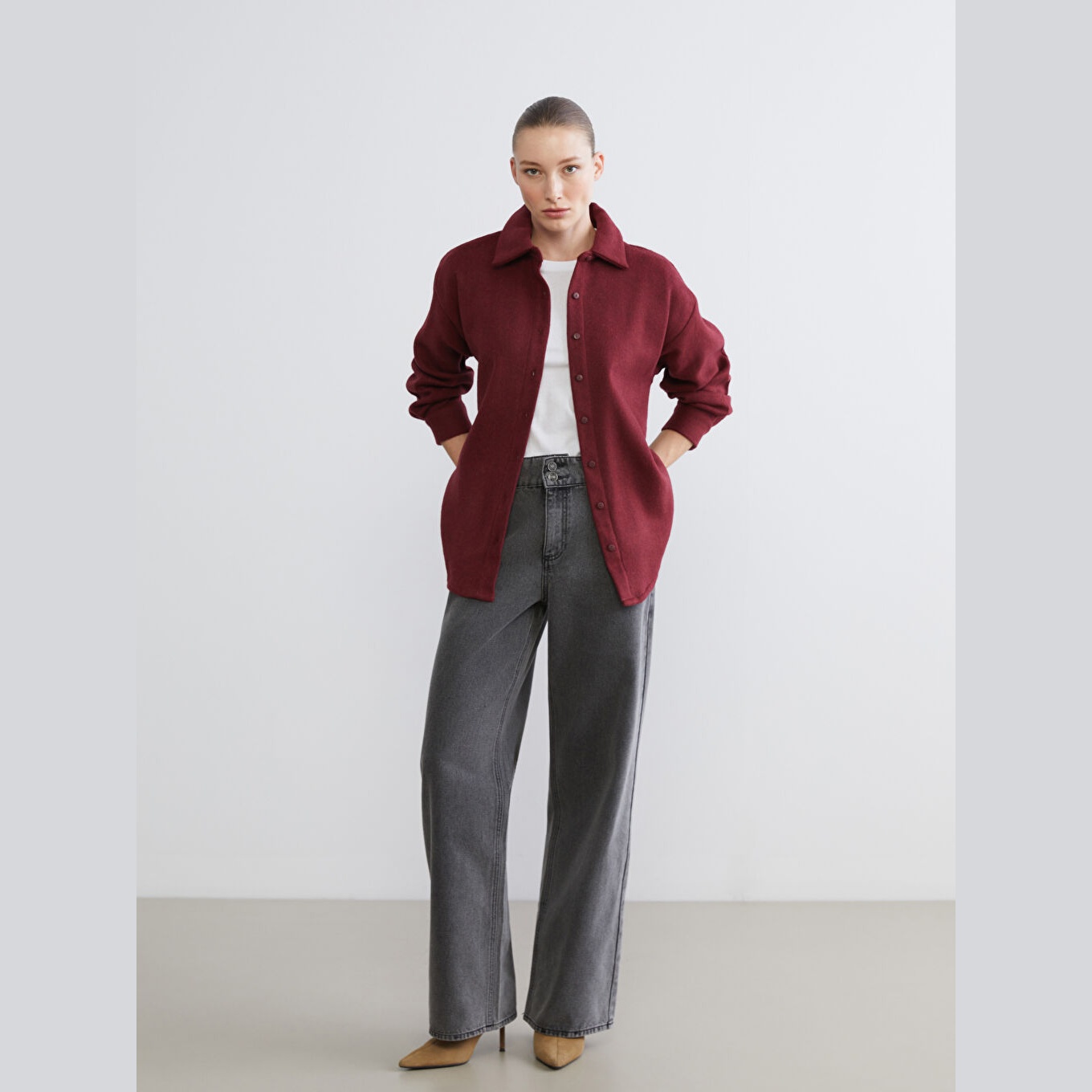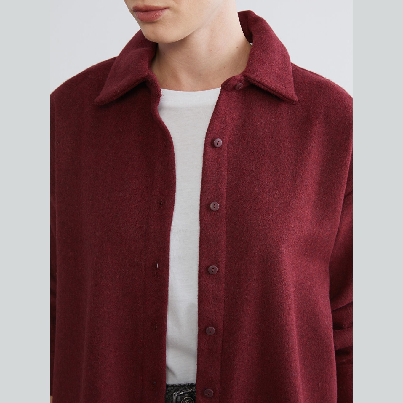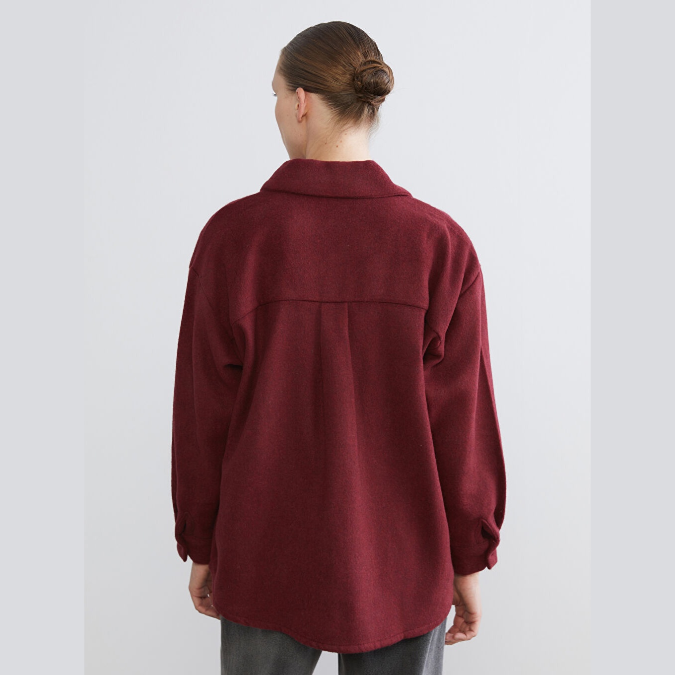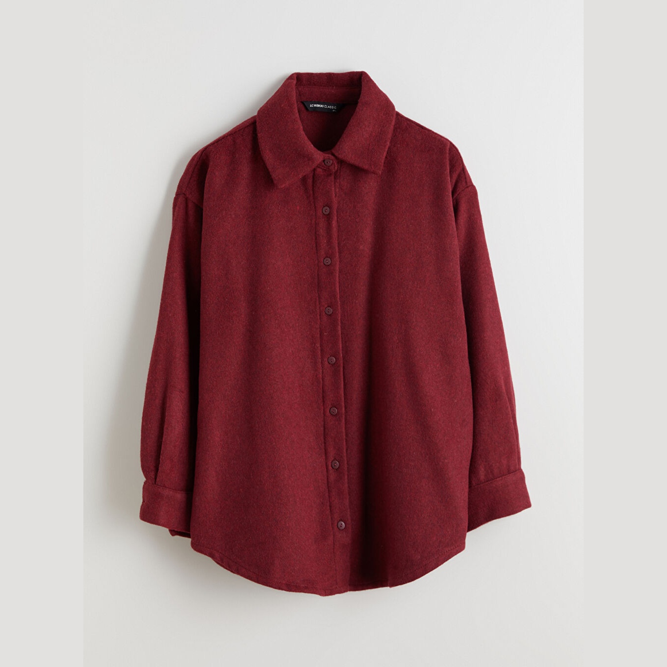 قميص جاكيت نسائي بقصة واسعة من LCW Classic – بوردو (قصة أوفرسايز، خامة فلانيل دافئة، تصميم سادة بأزرار وجيوب، ضمن مجموعة LCW Classic)