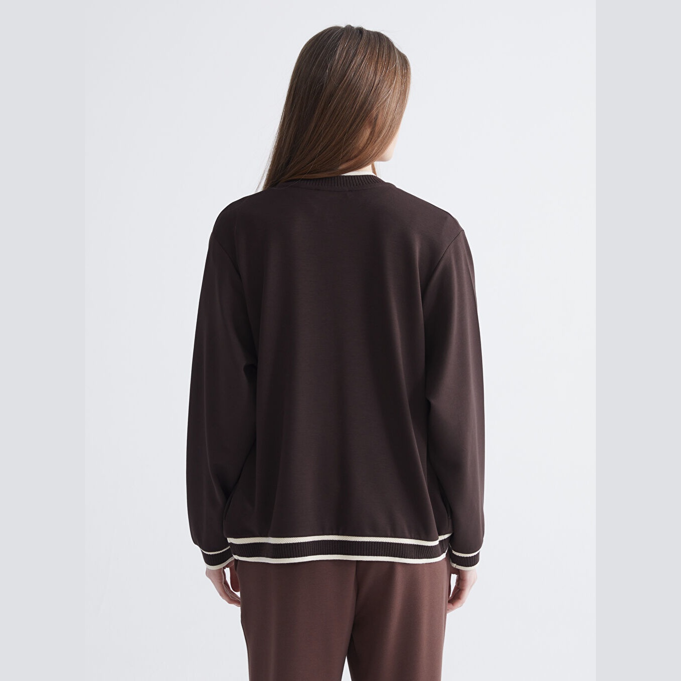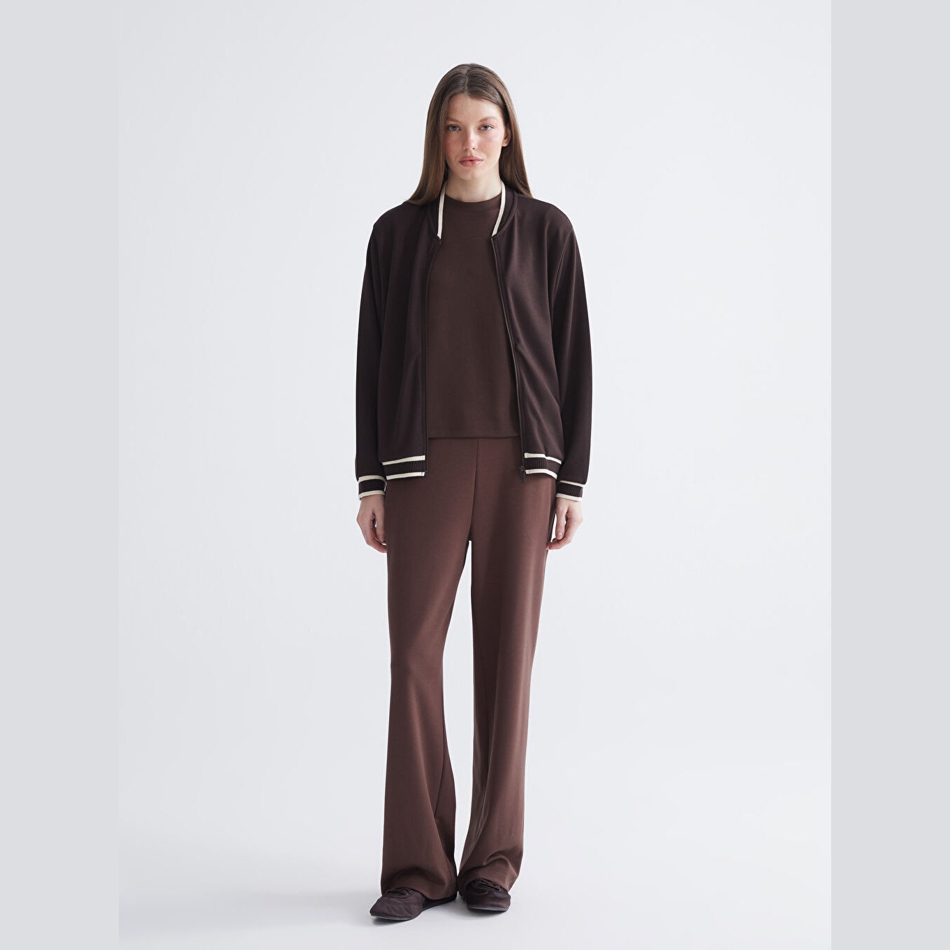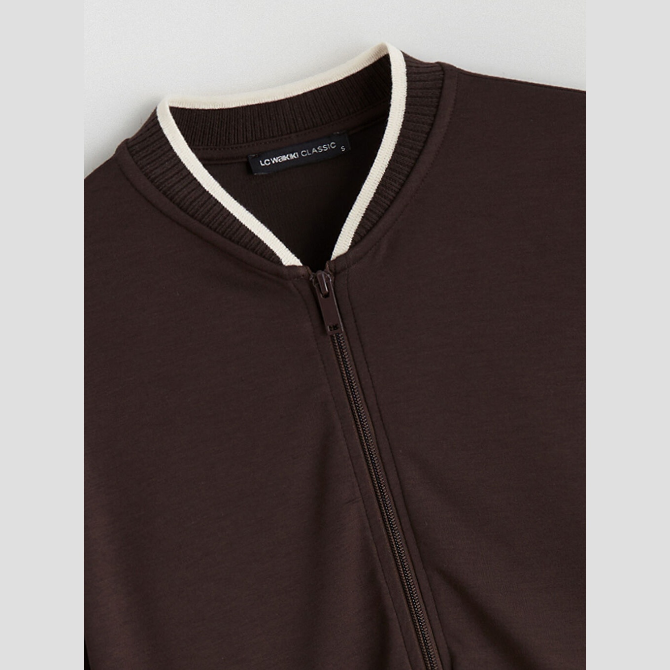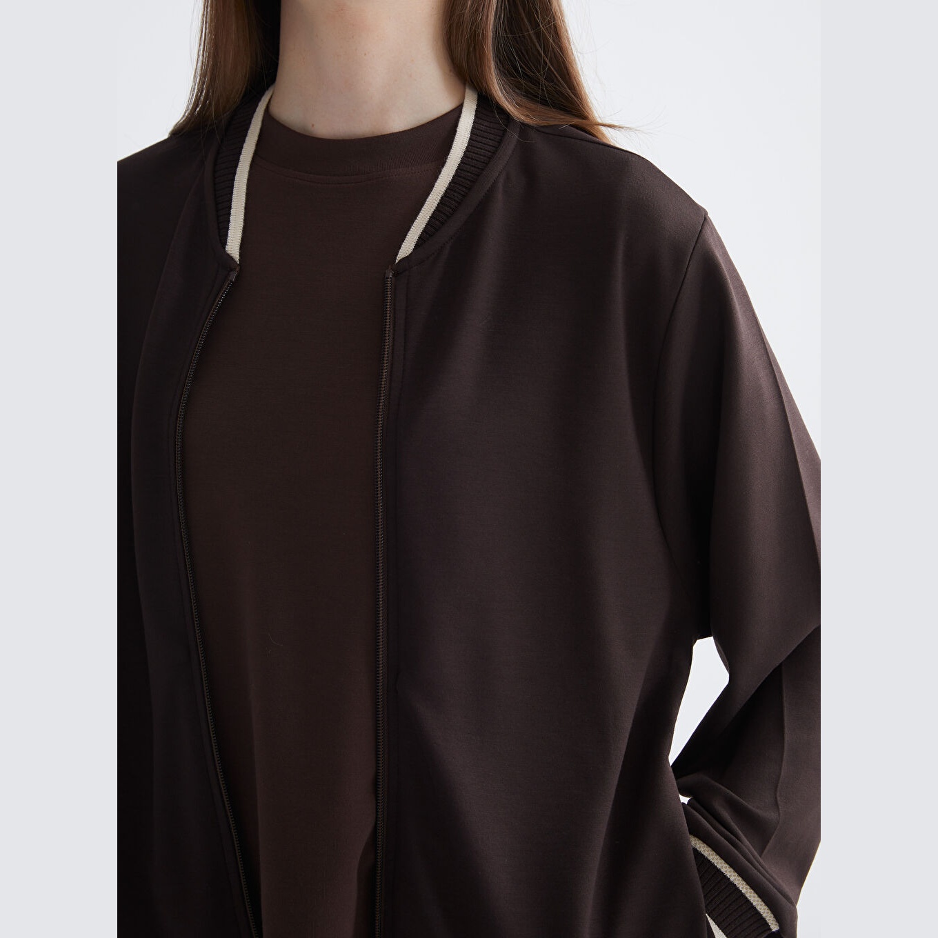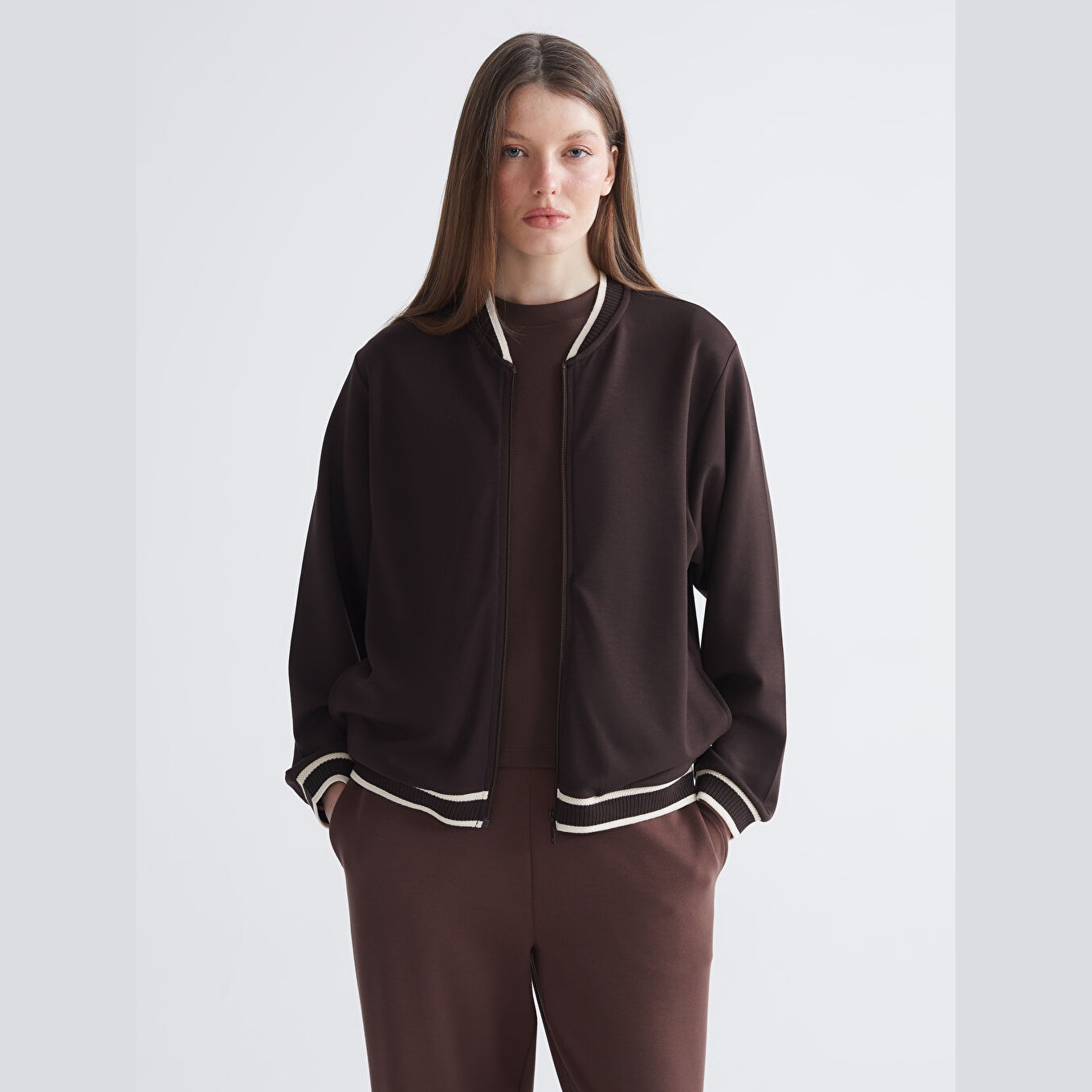 جاكيت نسائي بتصميم كوليج من LCWAIKIKI Basic – بني (قصة واسعة، خامة إنترلوك خفيفة، تصميم شبابي بسحاب أمامي، ضمن مجموعة LCW Basic)