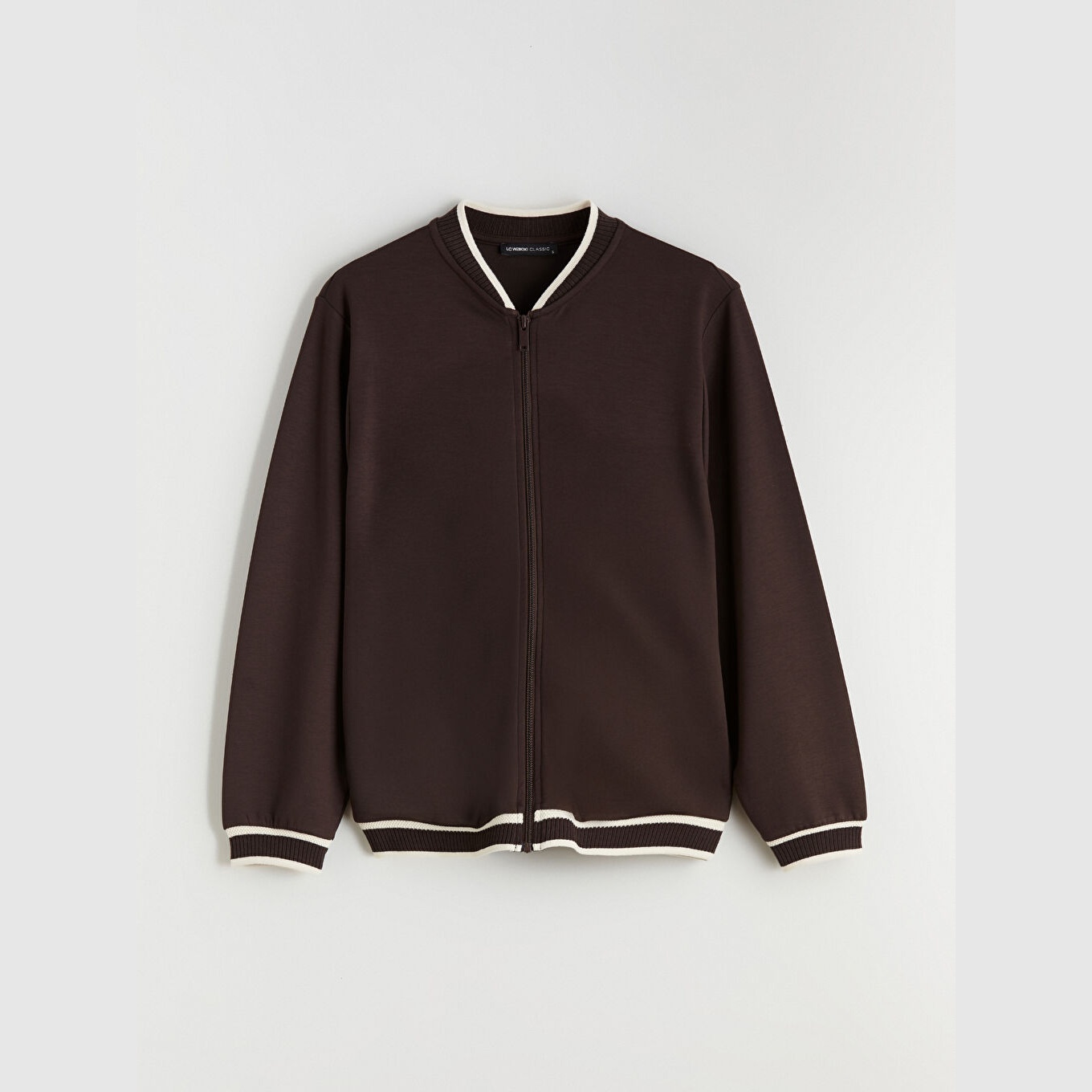 جاكيت عملي بلون بني (Kahverengi) من مجموعة LCWAIKIKI Basic، مستوحى من تصميم الجاكيتات الجامعية (College Jacket)، يتميز بياقة كوليج كلاسيكية، قصة واسعة (Loose Fit) تمنحك حرية حركة وأناقة كاجوال، خامة إنترلوك خفيفة بتركيبة مريحة من %50 فيسكوز، %47 بوليستر، %3 إيلاستان، تصميم سادة بدون نقوش، مزود بسحاب أمامي (Fermuarlı) للإغلاق، مثالي للإطلالات اليومية أو الرياضية، متوفر بمقاسات من S حتى 5XL.