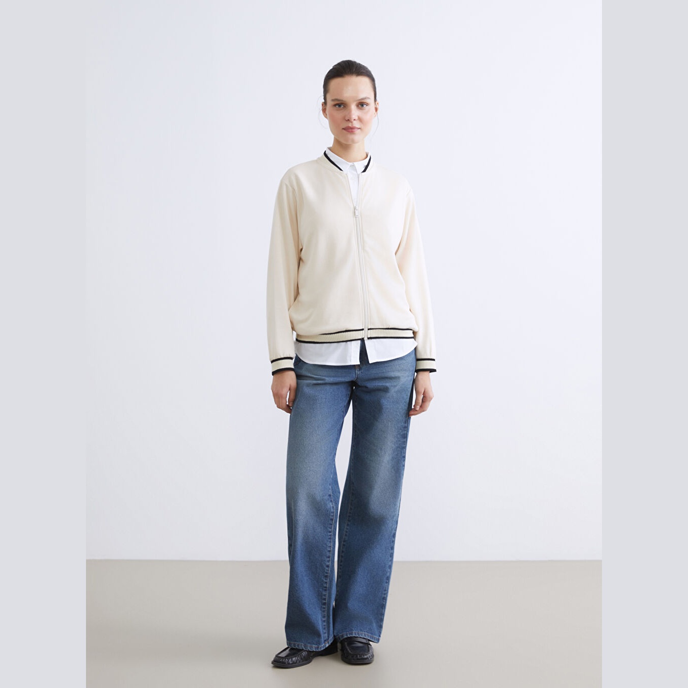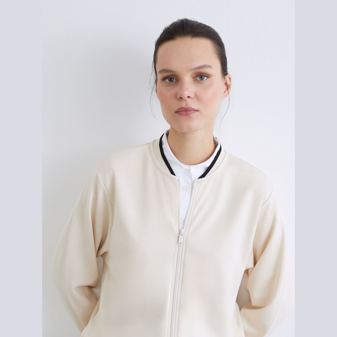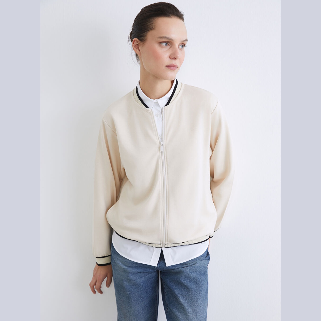 جاكيت نسائي بتصميم كوليج من LCWAIKIKI Basic – اكرو(قصة واسعة، خامة إنترلوك خفيفة، تصميم شبابي بسحاب أمامي، ضمن مجموعة LCW Basic)