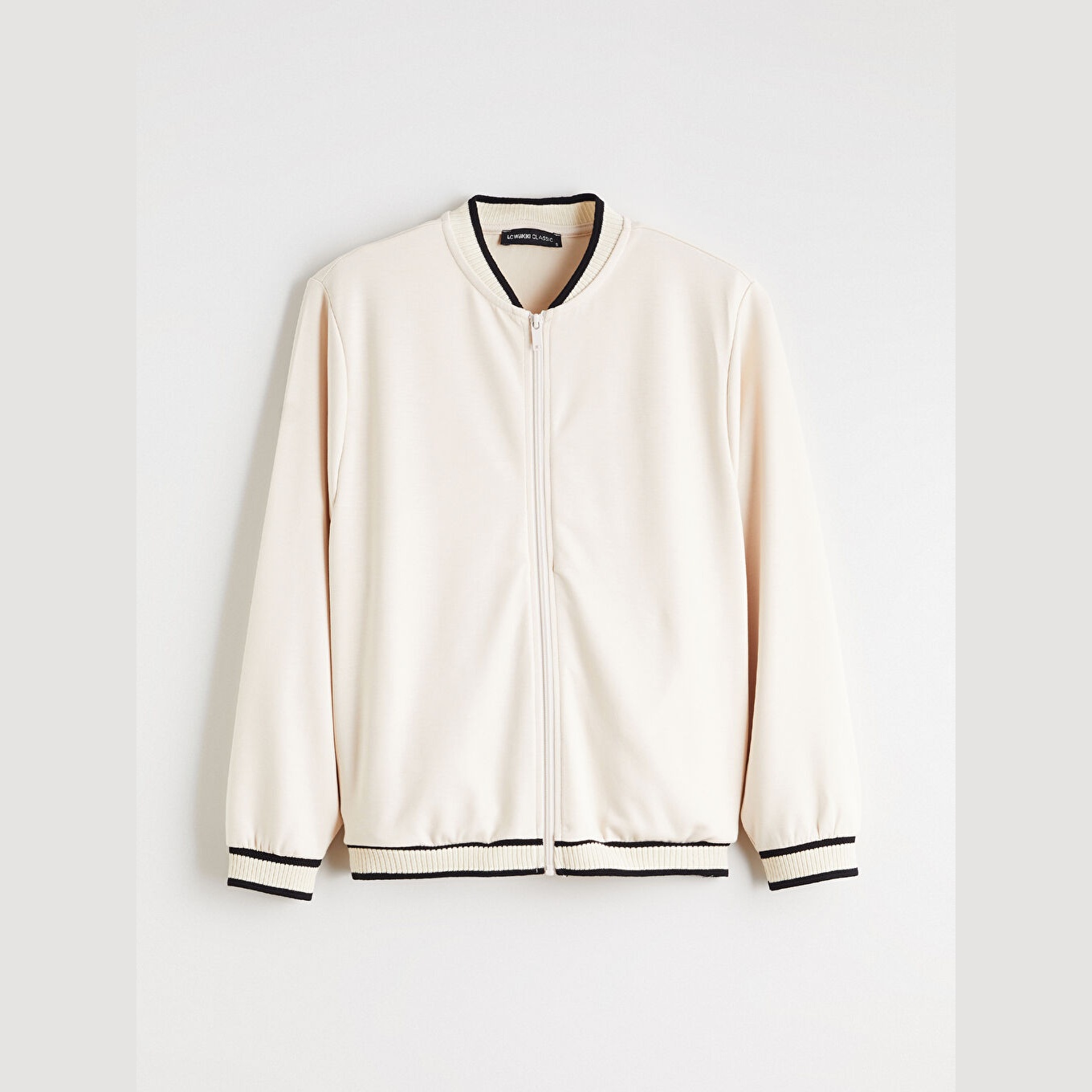 جاكيت عملي بلون اكرو من مجموعة LCWAIKIKI Basic، مستوحى من تصميم الجاكيتات الجامعية (College Jacket)، يتميز بياقة كوليج كلاسيكية، قصة واسعة (Loose Fit) تمنحك حرية حركة وأناقة كاجوال، خامة إنترلوك خفيفة بتركيبة مريحة من %50 فيسكوز، %47 بوليستر، %3 إيلاستان، تصميم سادة بدون نقوش، مزود بسحاب أمامي (Fermuarlı) للإغلاق، مثالي للإطلالات اليومية أو الرياضية،