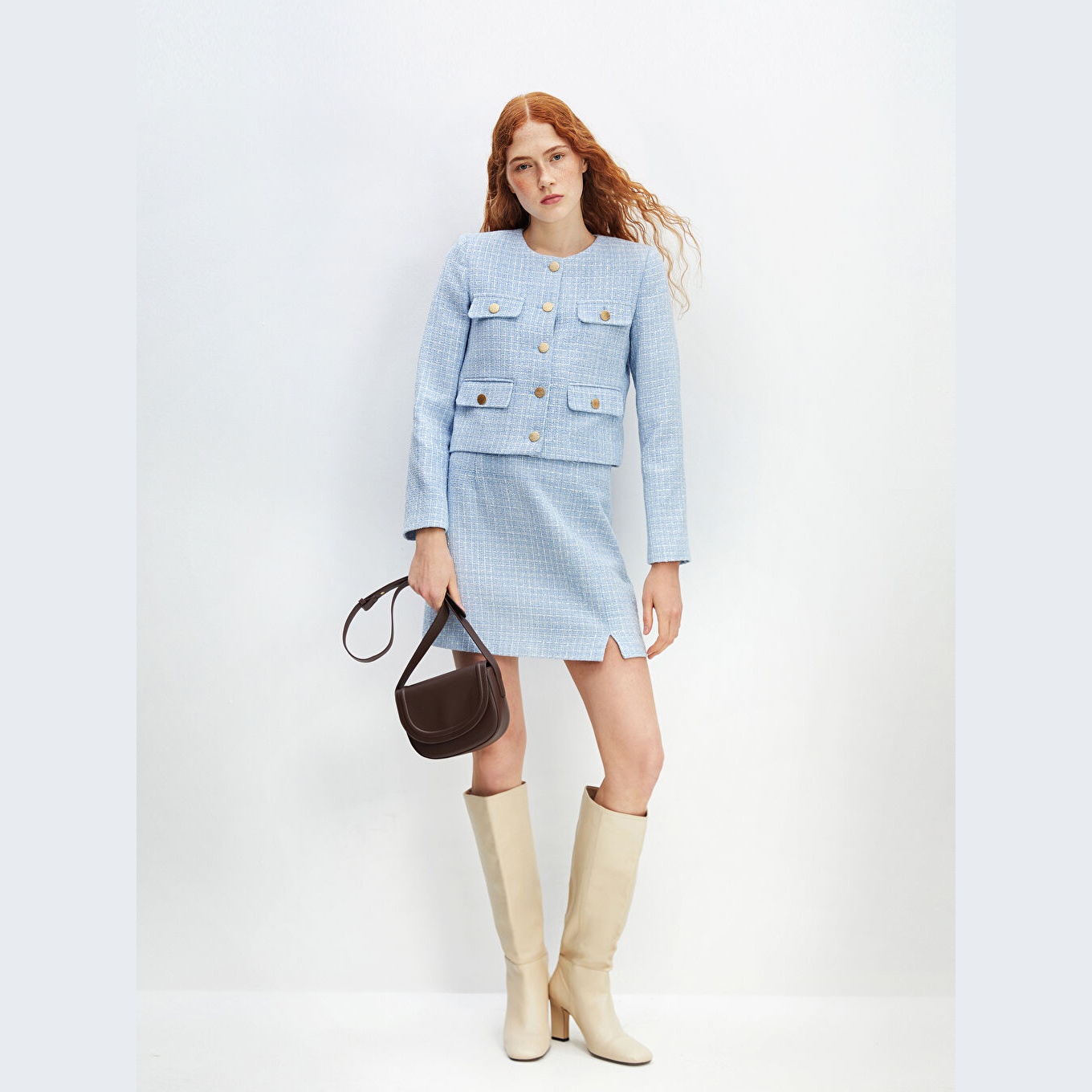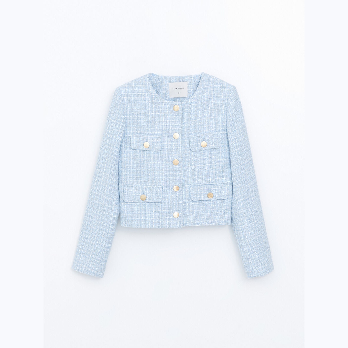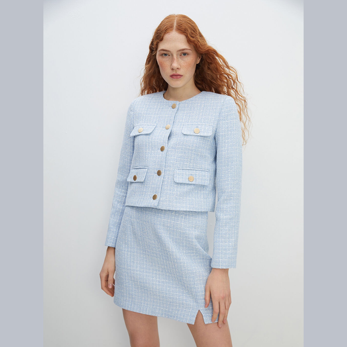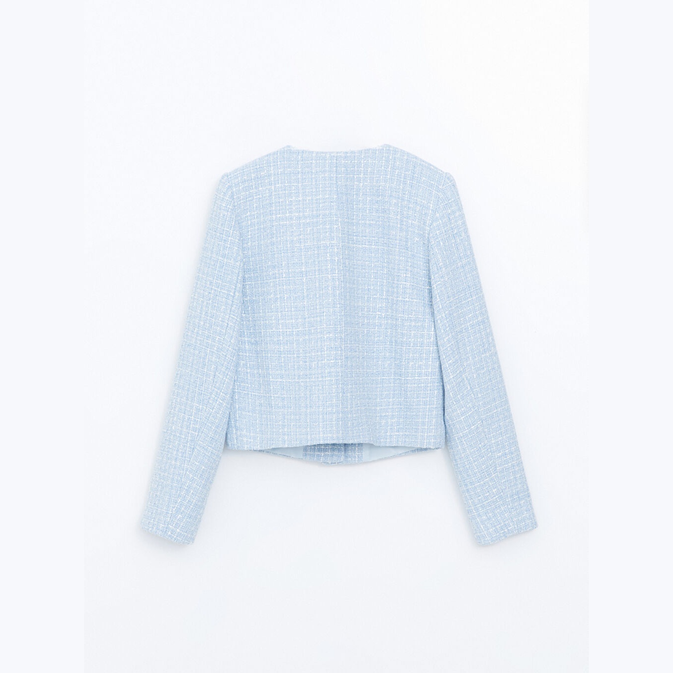 جاكيت نسائي تِوِيت بياقة مستديرة من LCW Vision – أزرق (قصة قياسية، خامة تِوِيت سميكة بنقشة مربعات، مبطّن بالكامل، تصميم أنيق لشتاء محتشم، ضمن مجموعة LCW Vision)
