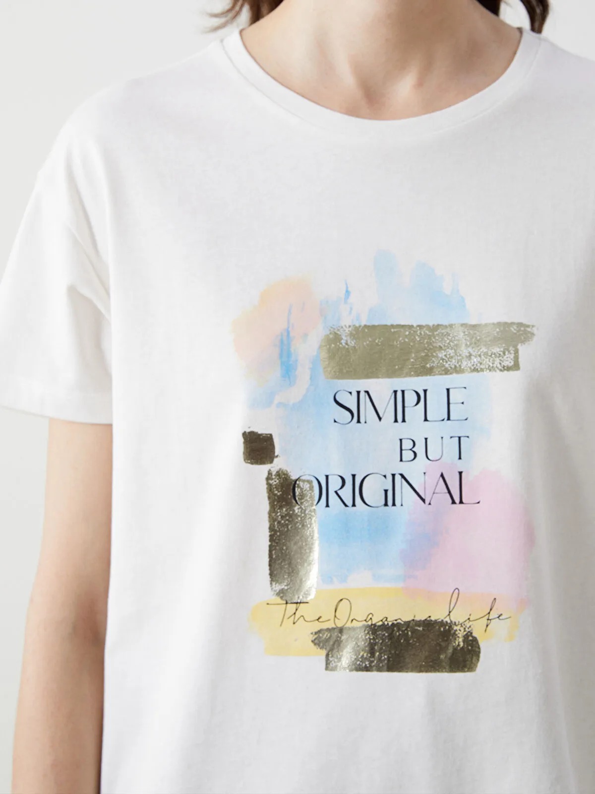 القصة: Loose Fit — قصة واسعة وفضفاضة مع ياقة دائرية وأكمام قصيرة تمنح مظهرًا أنيقًا دون تضييق أو ثقل.