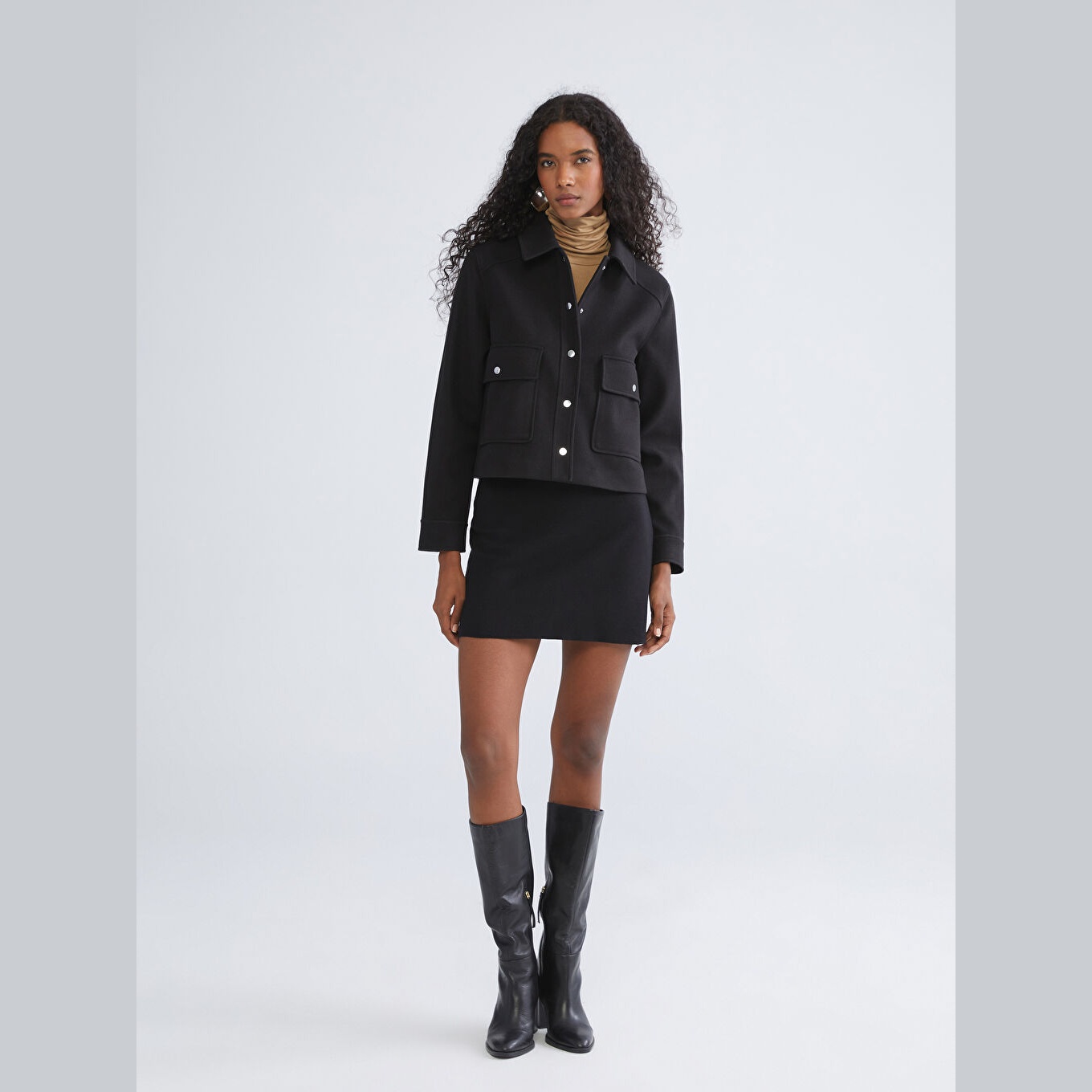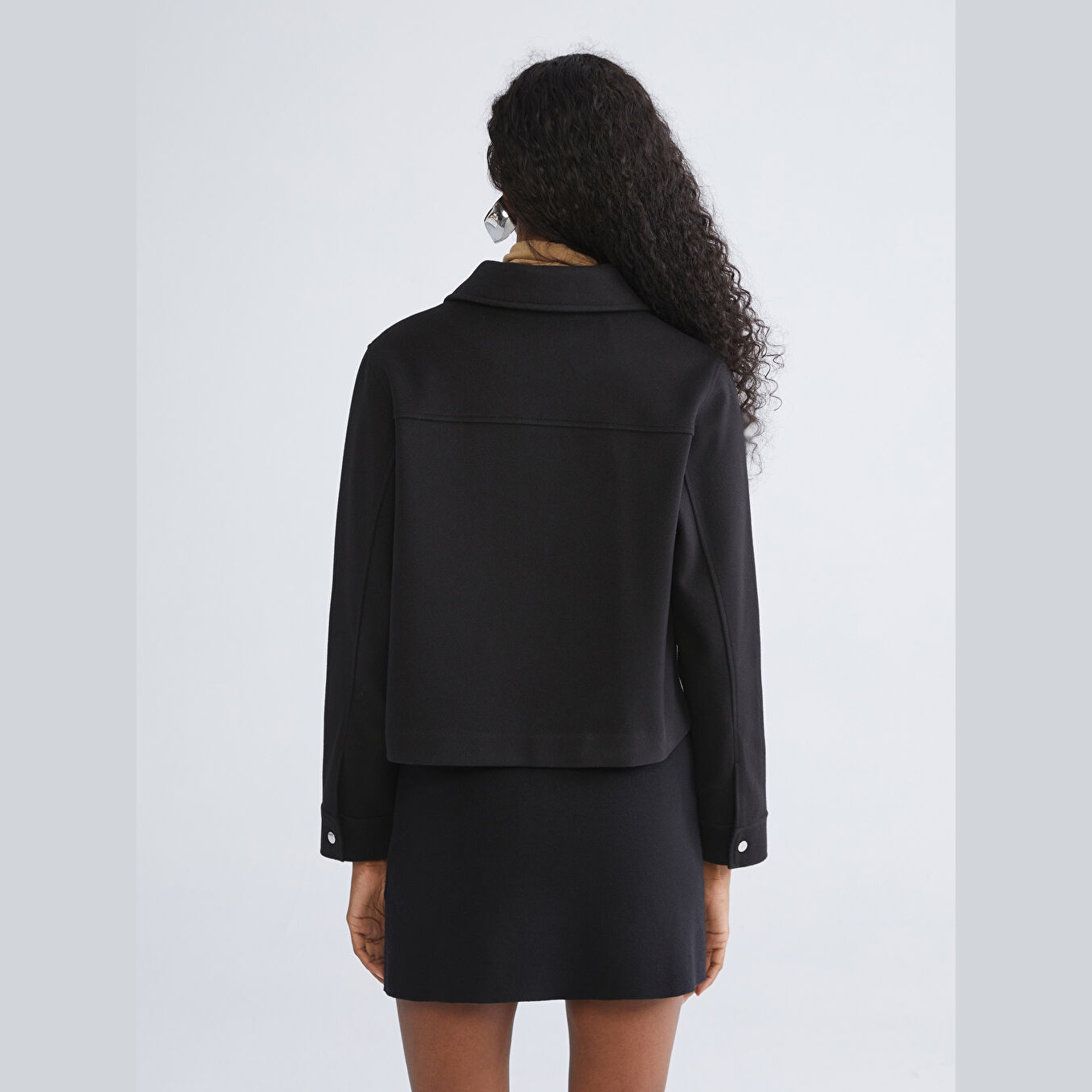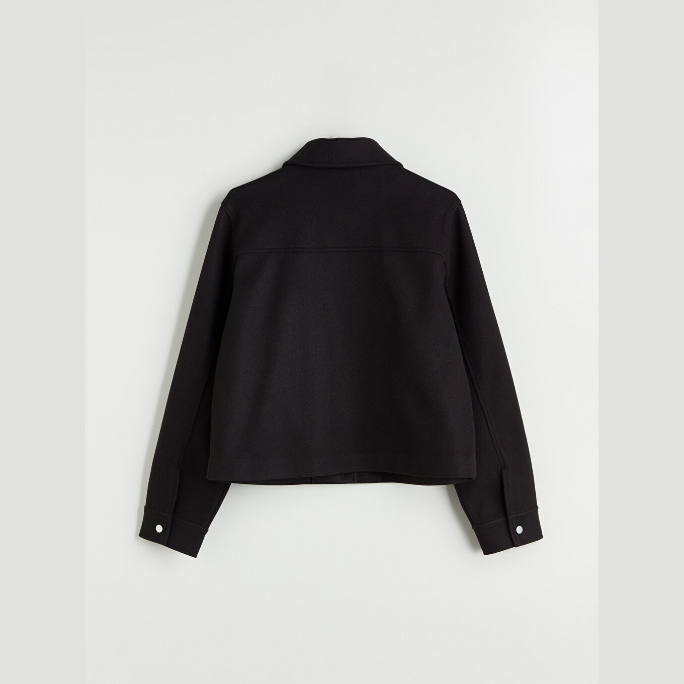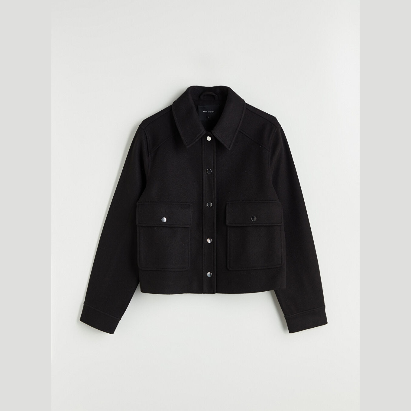جاكيت عملي بلون أسود (Siyah) من مجموعة LCW Vision، يجمع بين شكل القميص ودفء الجاكيت، مصمم بياقة قميص كلاسيكية (Gömlek Yaka)، قصة واسعة (Loose Fit) تمنحك مظهرًا عصريًا وراحة مثالية، خامة كاشيه شتوية سميكة مصنوعة من %100 بوليستر، تصميم سادة بدون نقوش، بدون بطانة (Astarsız) لوزن أخف، مزود بأزرار أمامية (Düğmeli) للإغلاق، بطول قصير يُقاس من الكتف، مثالي للإطلالات اليومية أو الكاجوال في الأجواء الباردة.