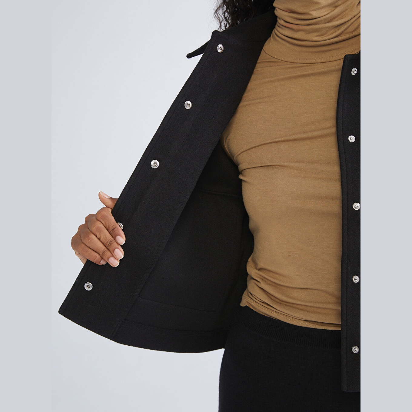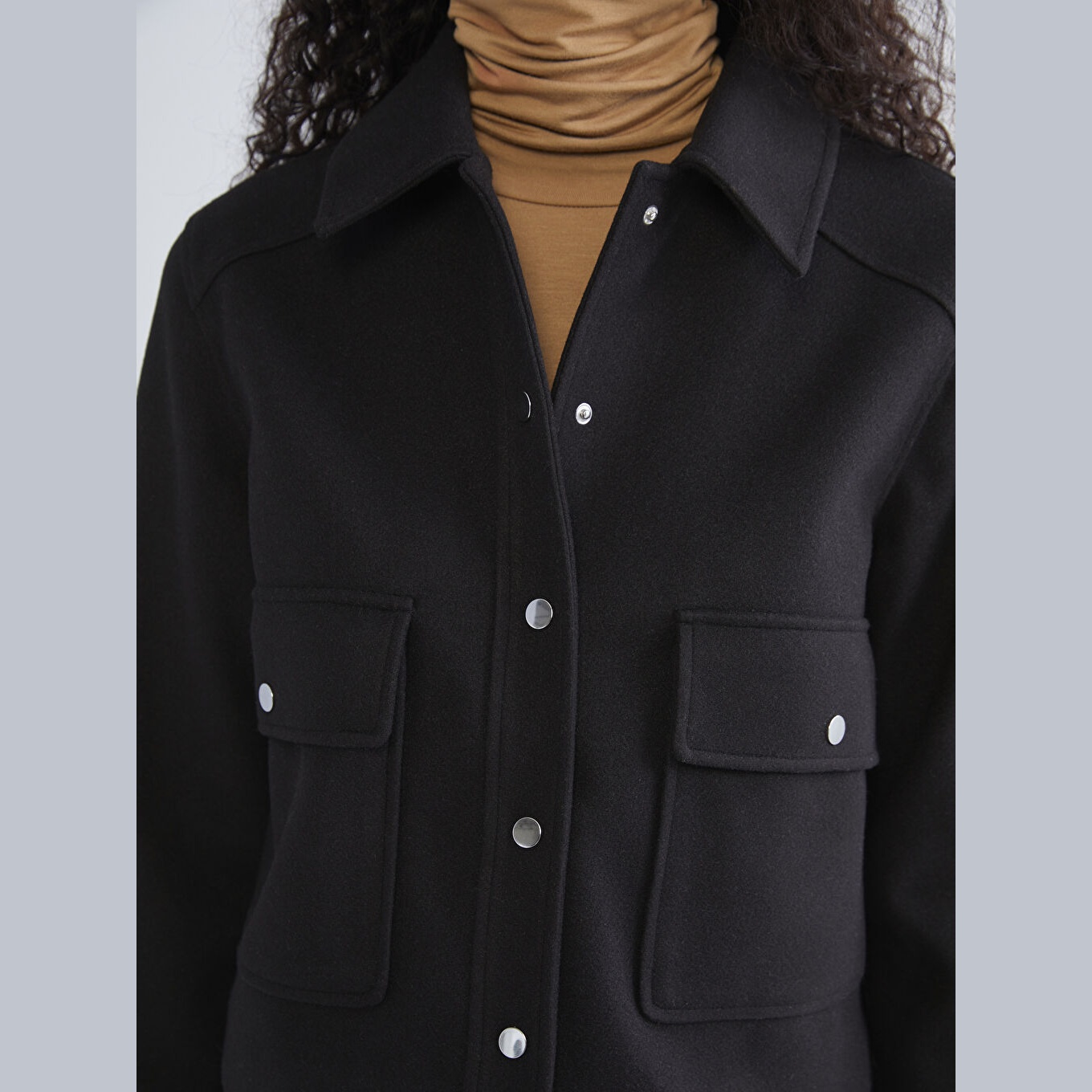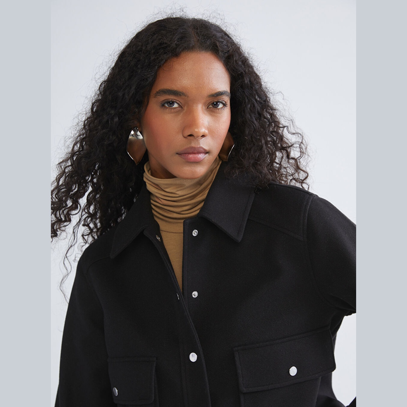 قميص جاكيت نسائي كاشيه من LCW Vision – أسود (قصة واسعة، خامة كاشيه شتوية بدون بطانة، تصميم سادة بأزرار، ضمن مجموعة LCW Vision)