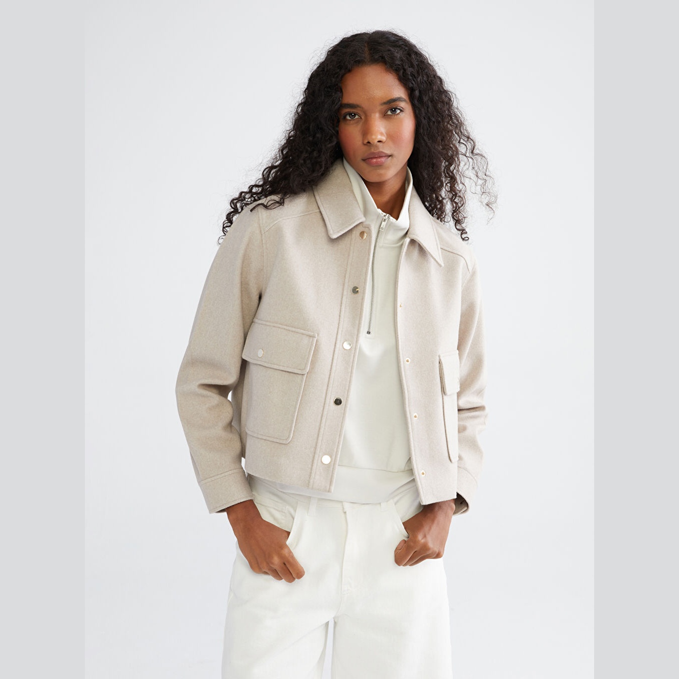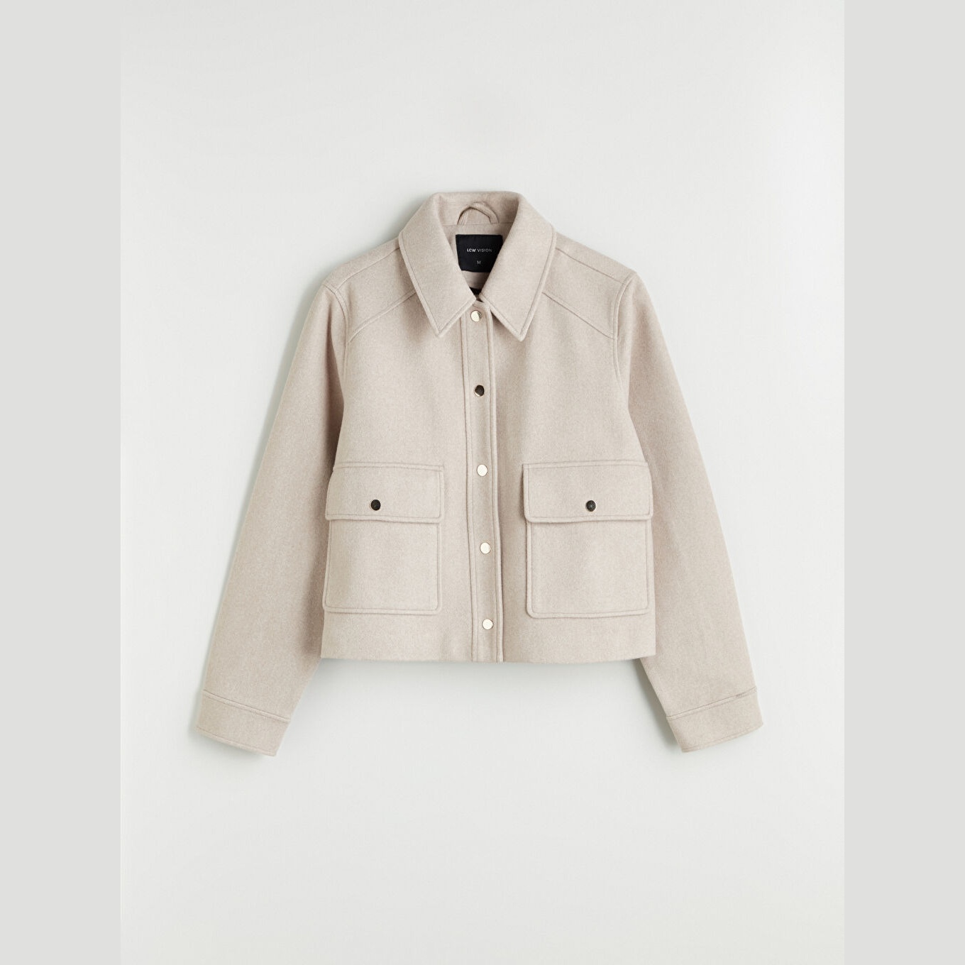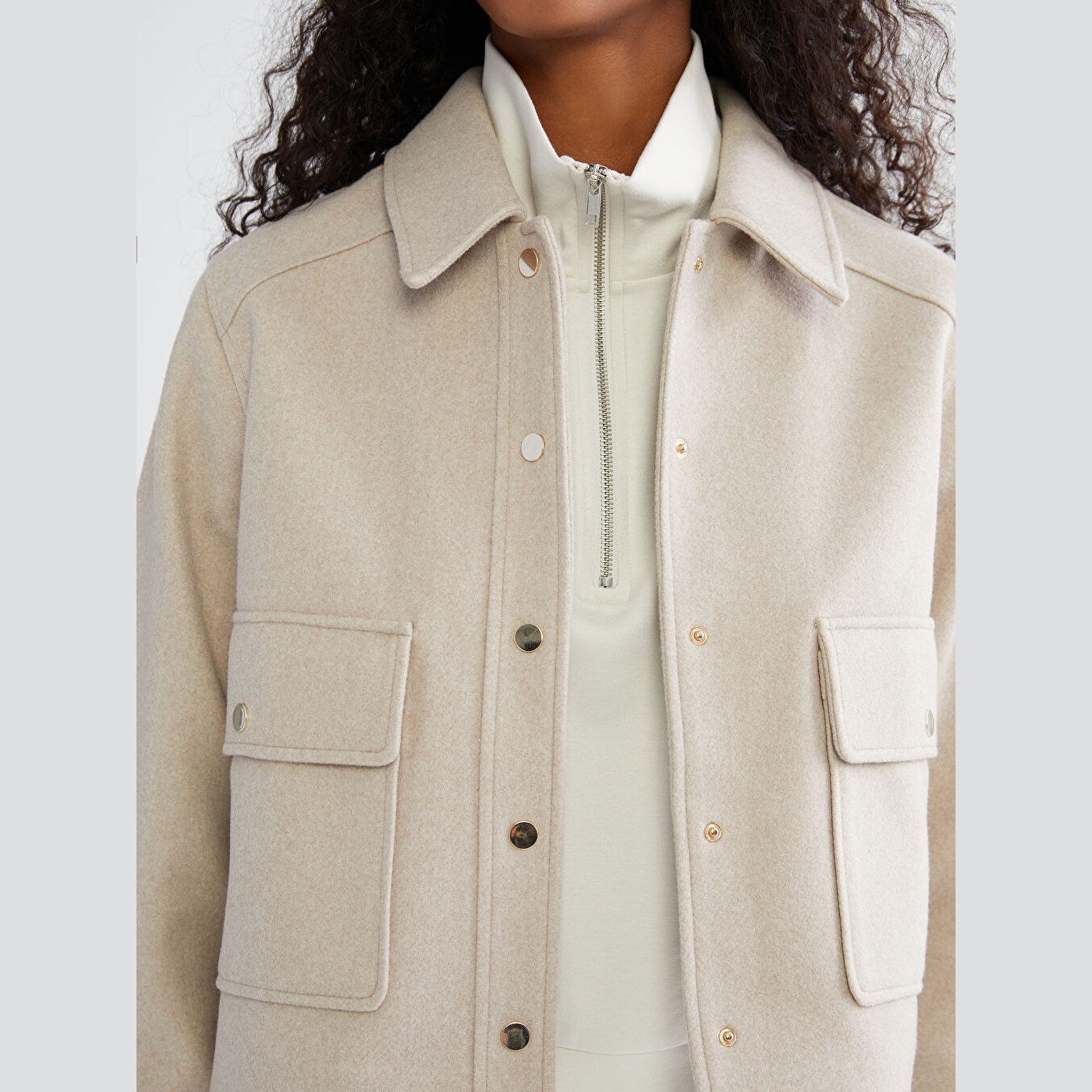 قميص جاكيت نسائي كاشيه من LCW Vision – بيج (قصة واسعة، خامة كاشيه شتوية بدون بطانة، تصميم سادة بأزرار، ضمن مجموعة LCW Vision)