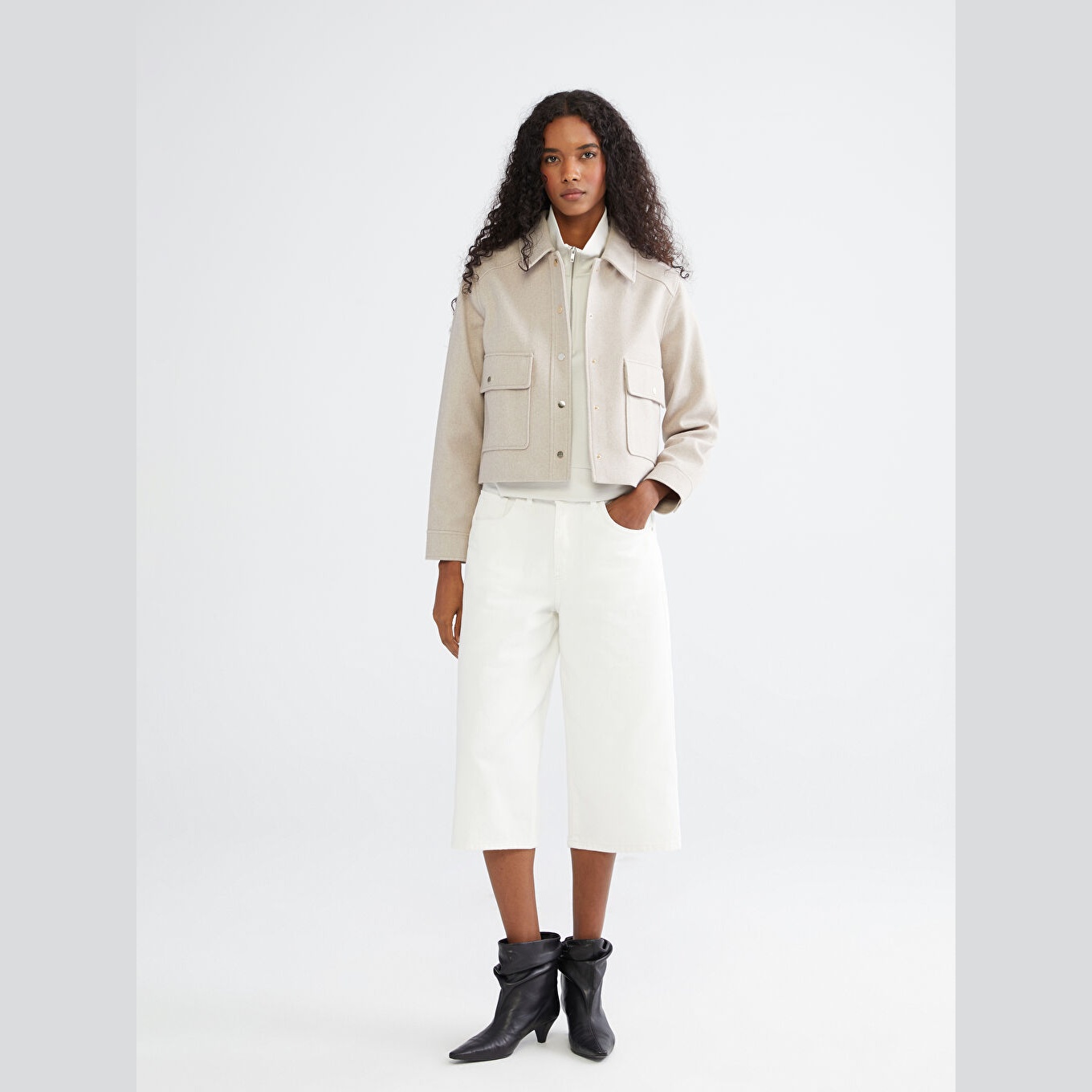 جاكيت عملي بلون بيج (Bej) من مجموعة LCW Vision، يجمع بين شكل القميص ودفء الجاكيت، مصمم بياقة قميص كلاسيكية (Gömlek Yaka)، قصة واسعة (Loose Fit) تمنحك مظهرًا عصريًا وراحة مثالية، خامة كاشيه شتوية سميكة مصنوعة من %100 بوليستر، تصميم سادة بدون نقوش، بدون بطانة (Astarsız) لوزن أخف، مزود بأزرار أمامية (Düğmeli) للإغلاق، بطول قصير يُقاس من الكتف، مثالي للإطلالات اليومية أو الكاجوال في الأجواء الباردة.