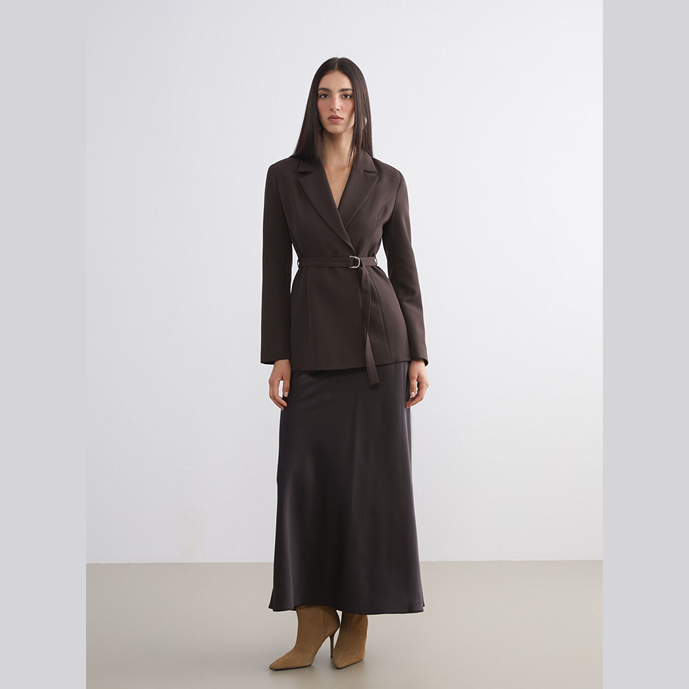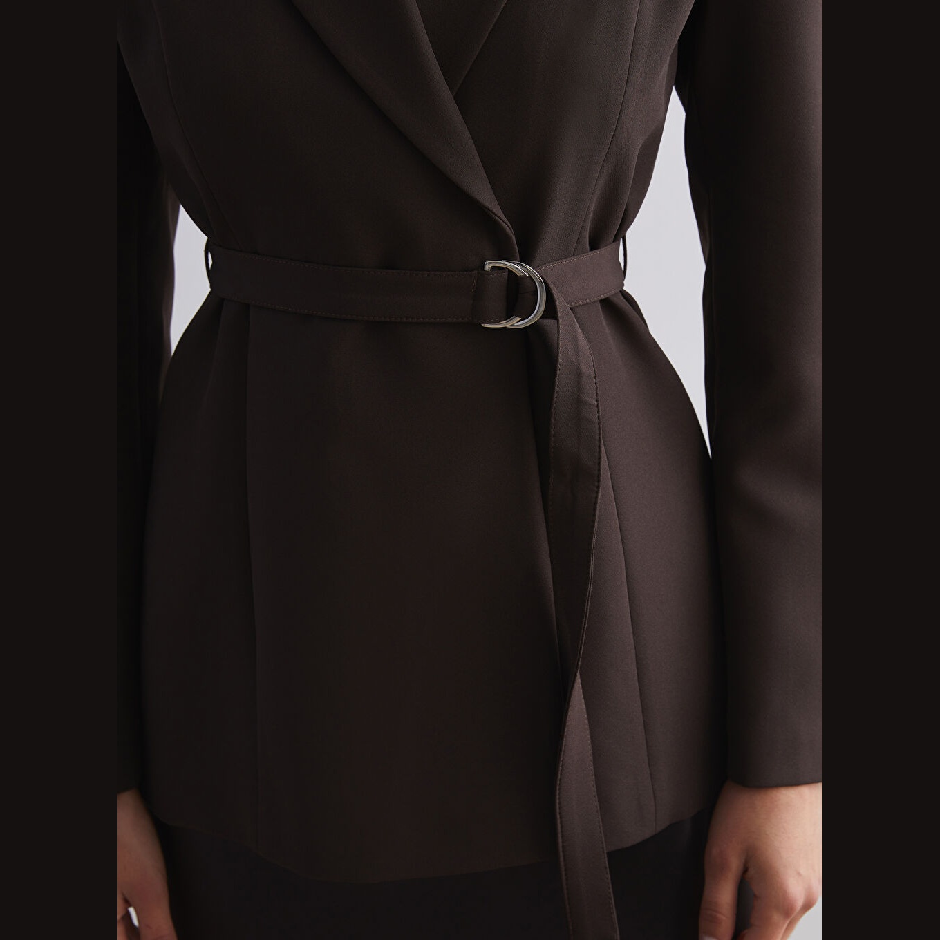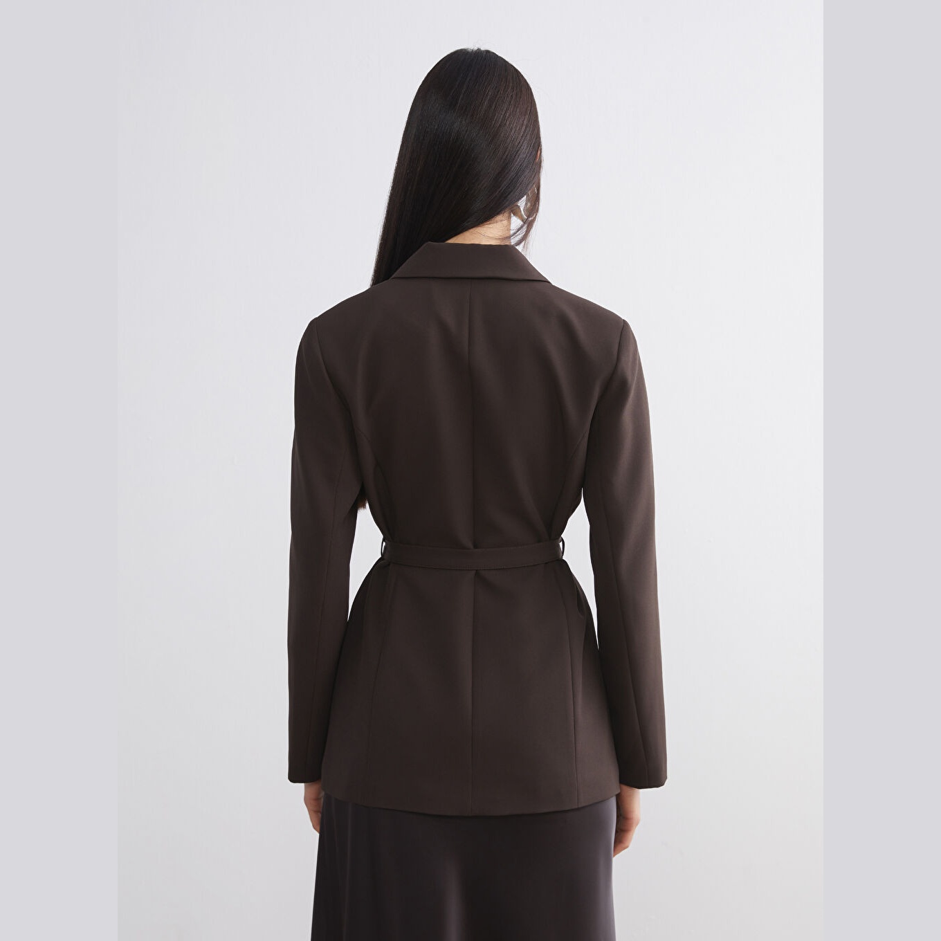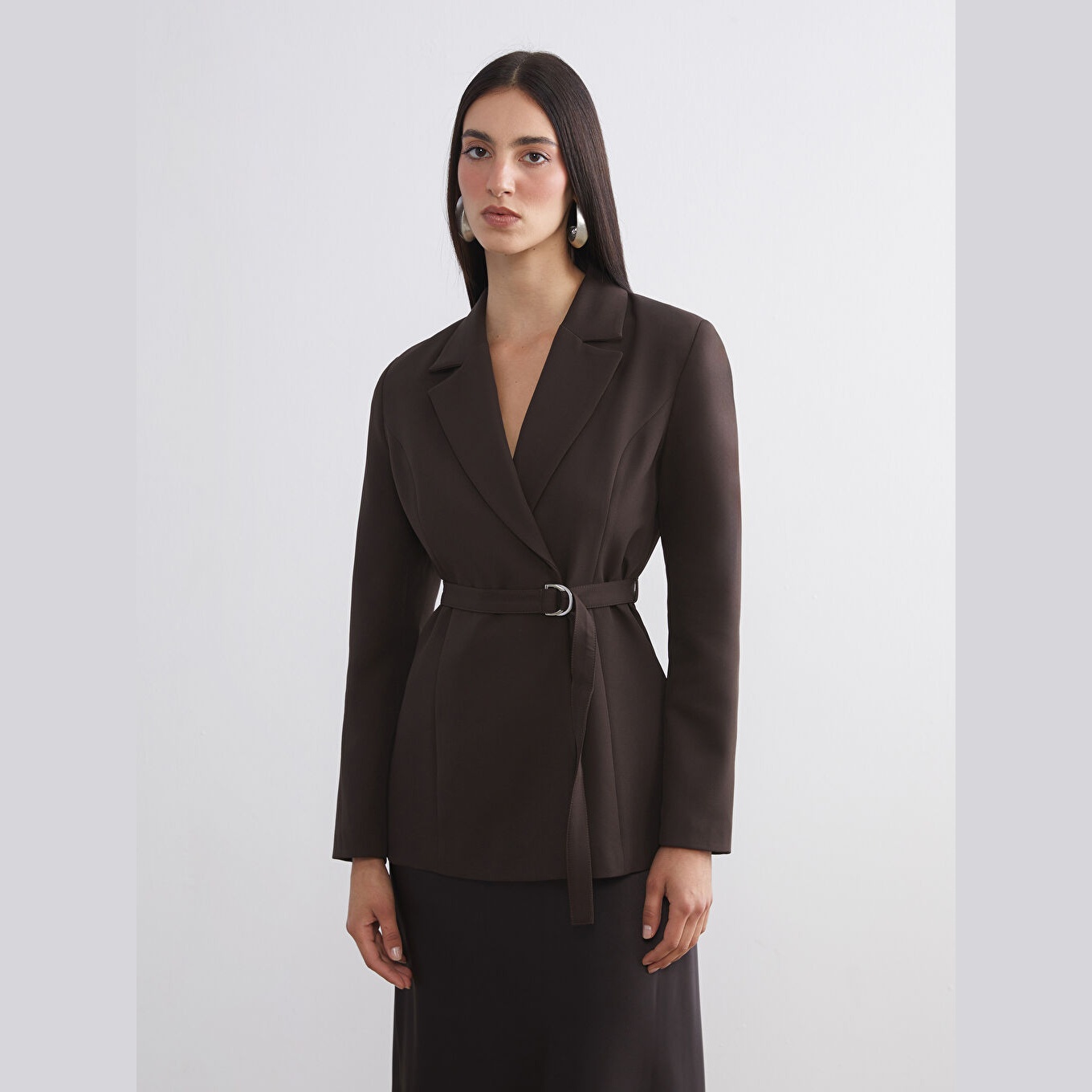 بليزر نسائي برباط خصر من LCW Vision – بني (قصة قياسية، خامة كريب مرنة، تصميم رسمي أنيق، مبطّن بالكامل، مثالي للعمل والمناسبات)