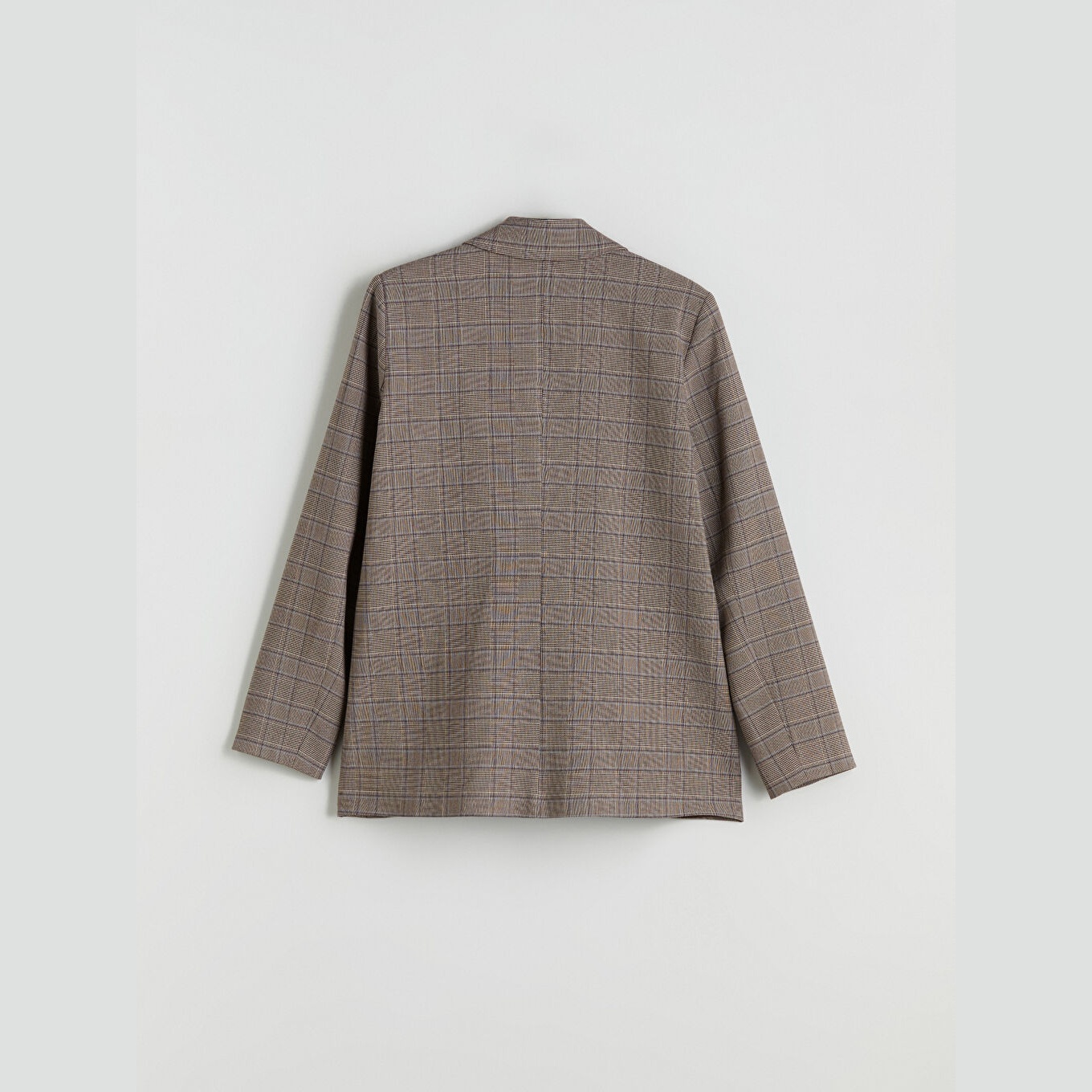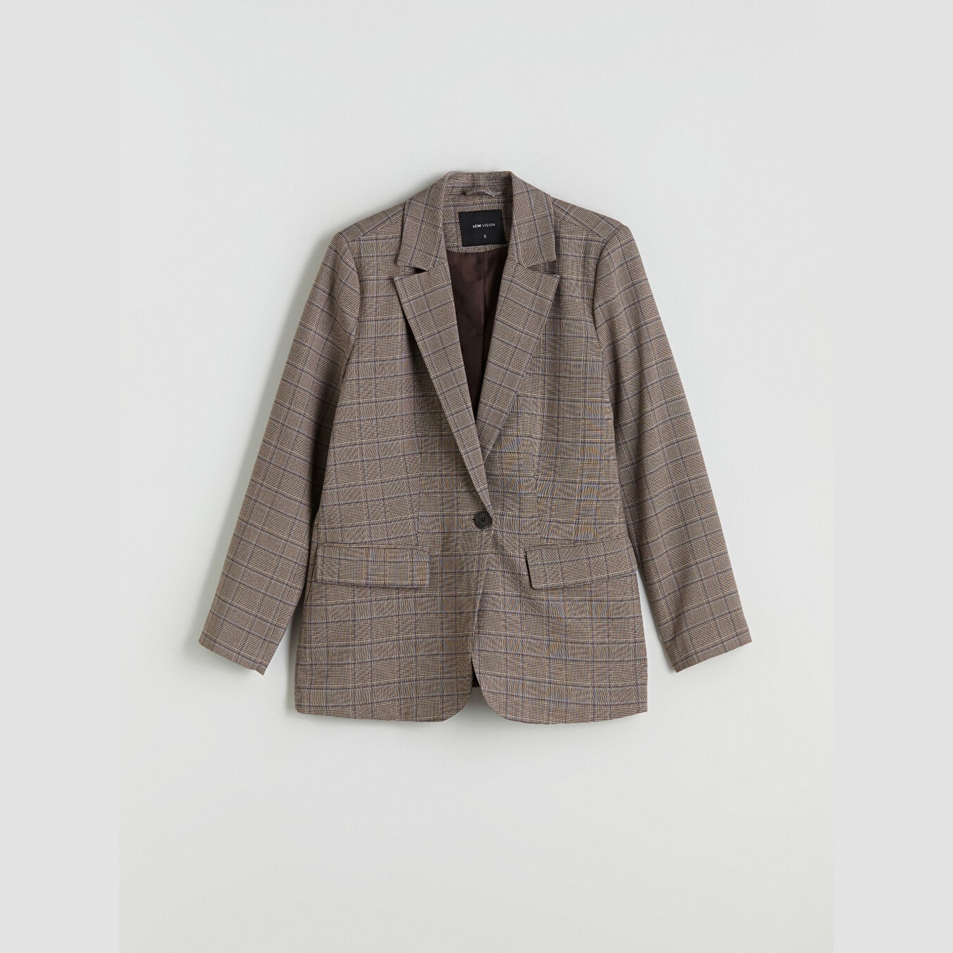 جاكيت بليزر بلون بيج (Bej) من مجموعة LCW Vision، مصمم بياقة جاكيت كلاسيكية (Ceket Yaka)، قصة واسعة (Loose Fit) تمنحك مظهرًا مريحًا وانسيابيًا، تصميم بنقشة مربعات (Ekose) يضفي طابعًا كلاسيكيًا أنيقًا، خامة متوسطة السماكة مكونة من %65 بوليستر، %31 فيسكوز، %4 إيلاستان، مبطّن بالكامل بـ%100 بوليستر، بطول قصير يُقاس من الكتف، مثالي للإطلالات الرسمية أو العملية.
