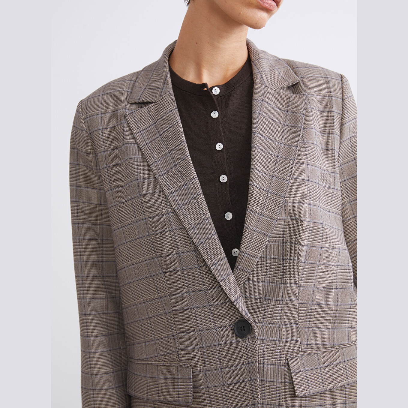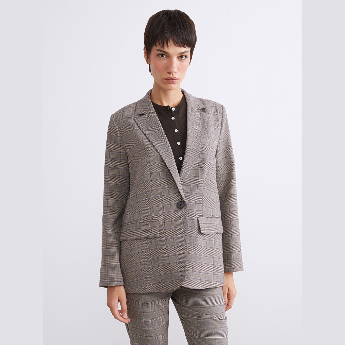 بليزر نسائي بنقشة مربعات من LCW Vision – بيج (قصة واسعة، تصميم كلاسيكي بنقشة إكّوسيه، خامة مرنة ومبطّنة بالكامل، مثالي للعمل والمناسبات)
